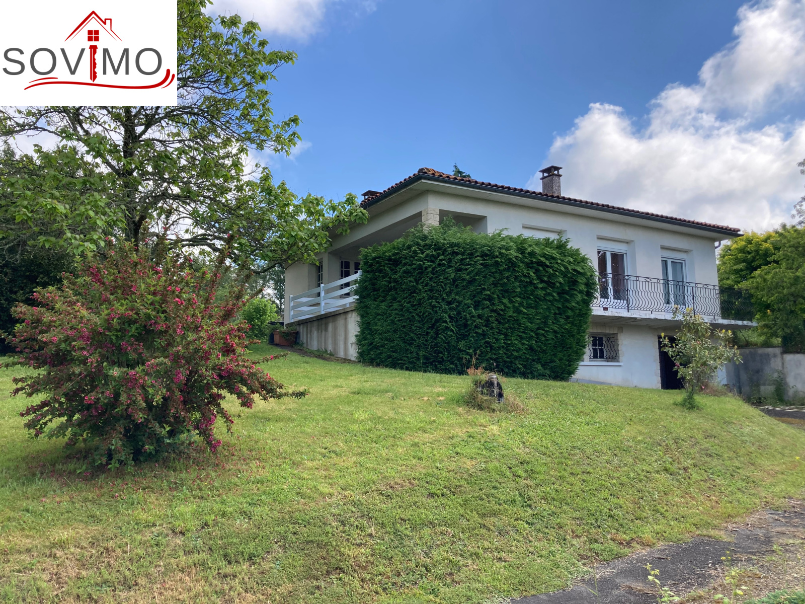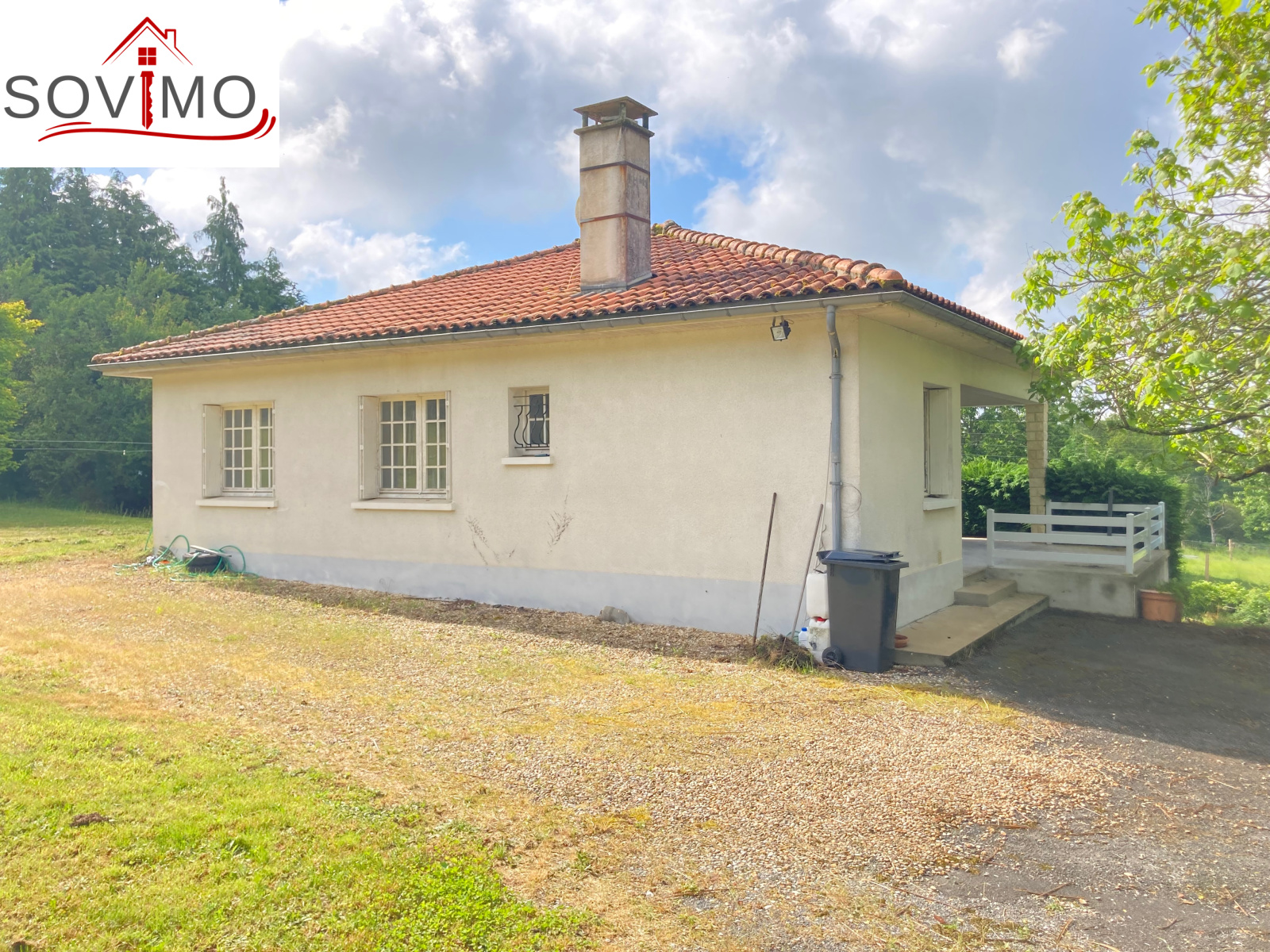 REF. 34259 : 129 600 euros H.A.I, Ecuras (16), en campagne, pavillon indépendant sur sous sol semi enterré de 1975, à usage d'habitation, 79 m2 env. utilisables : entrée, cuisine aménagée, salon/séjour (cheminée), couloir, 3 chambres, salle de bain, wc, chauf. fuel, sous sol : garage/buanderie et cave de 85 m2, tout à l'égout, terrasse et balcon, bâtiment indépendant de 46 m2 à usage de débarras, terrain attenant en partie boisé, le tout sur 6880 m2.