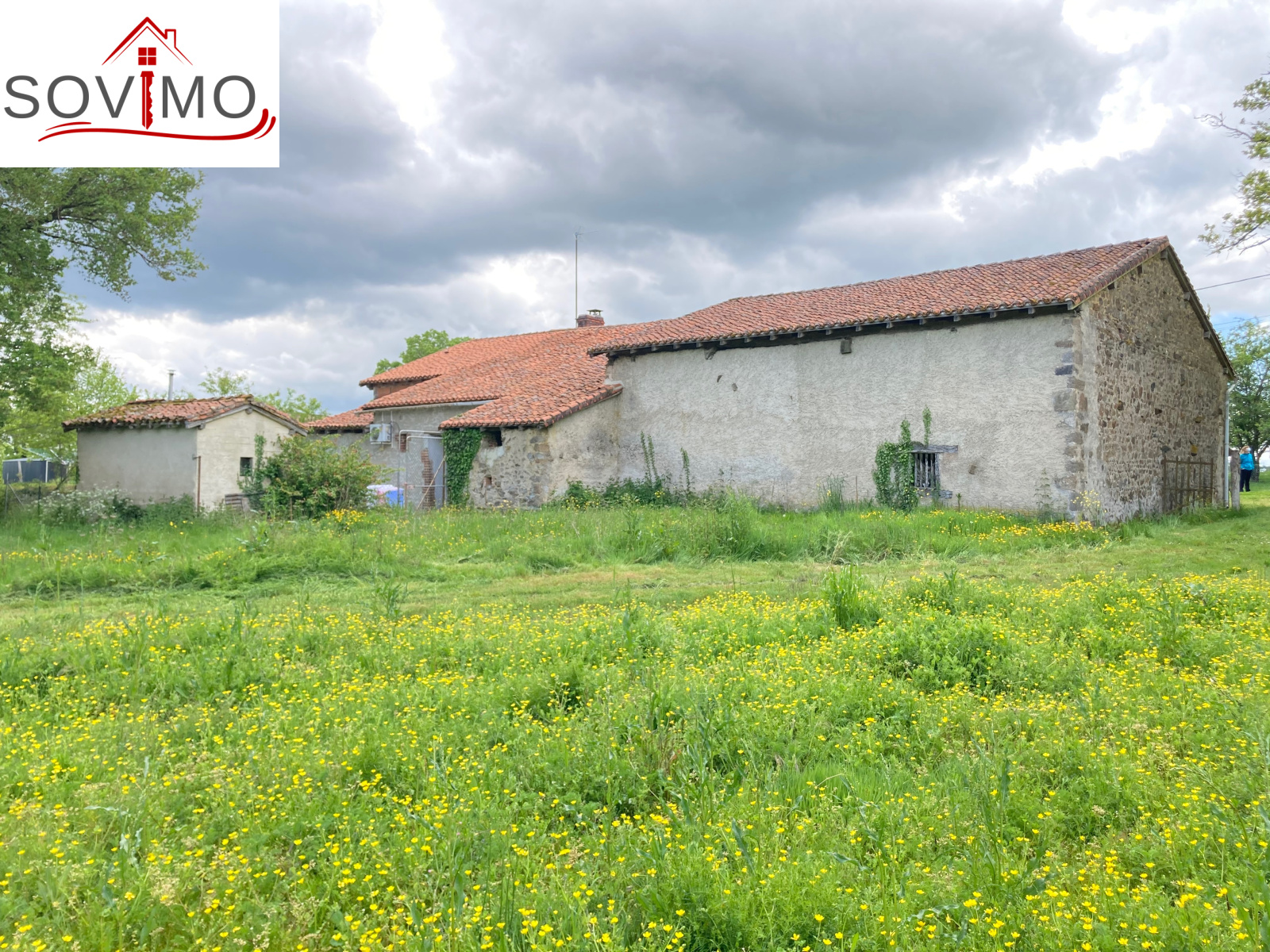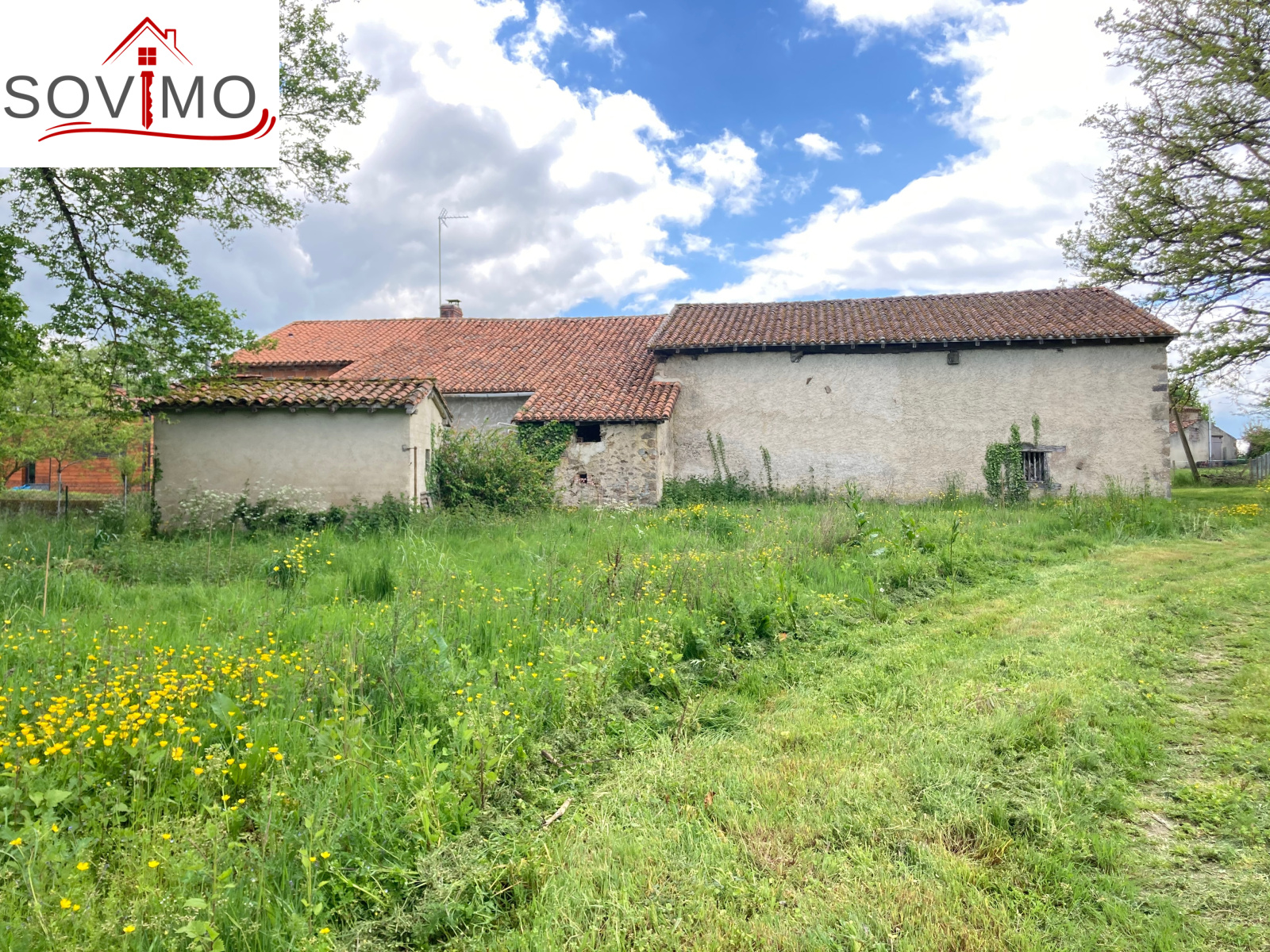 Grange attenante avec étable de 110 m2 (toiture tuile état d'usage), petits toits