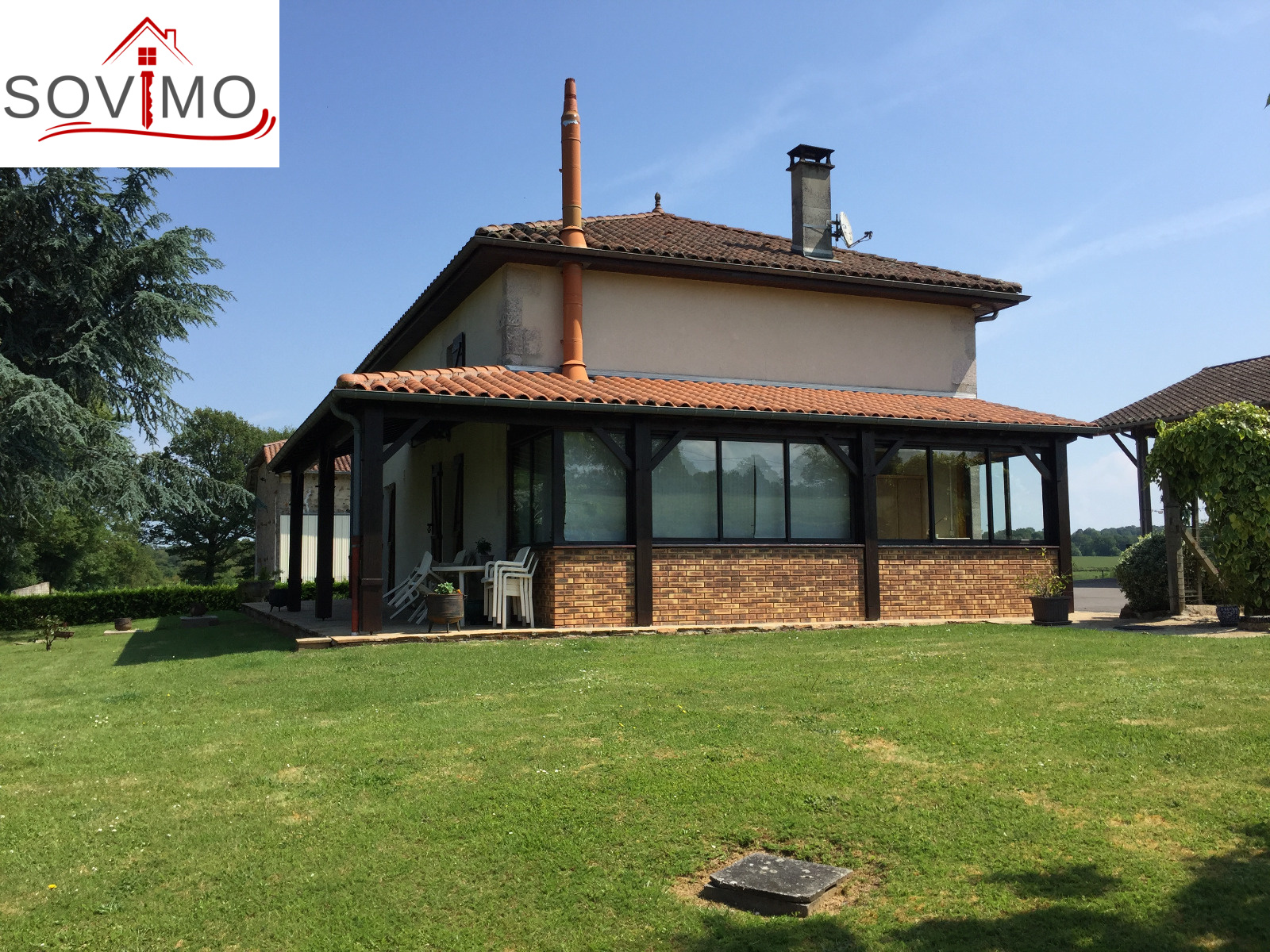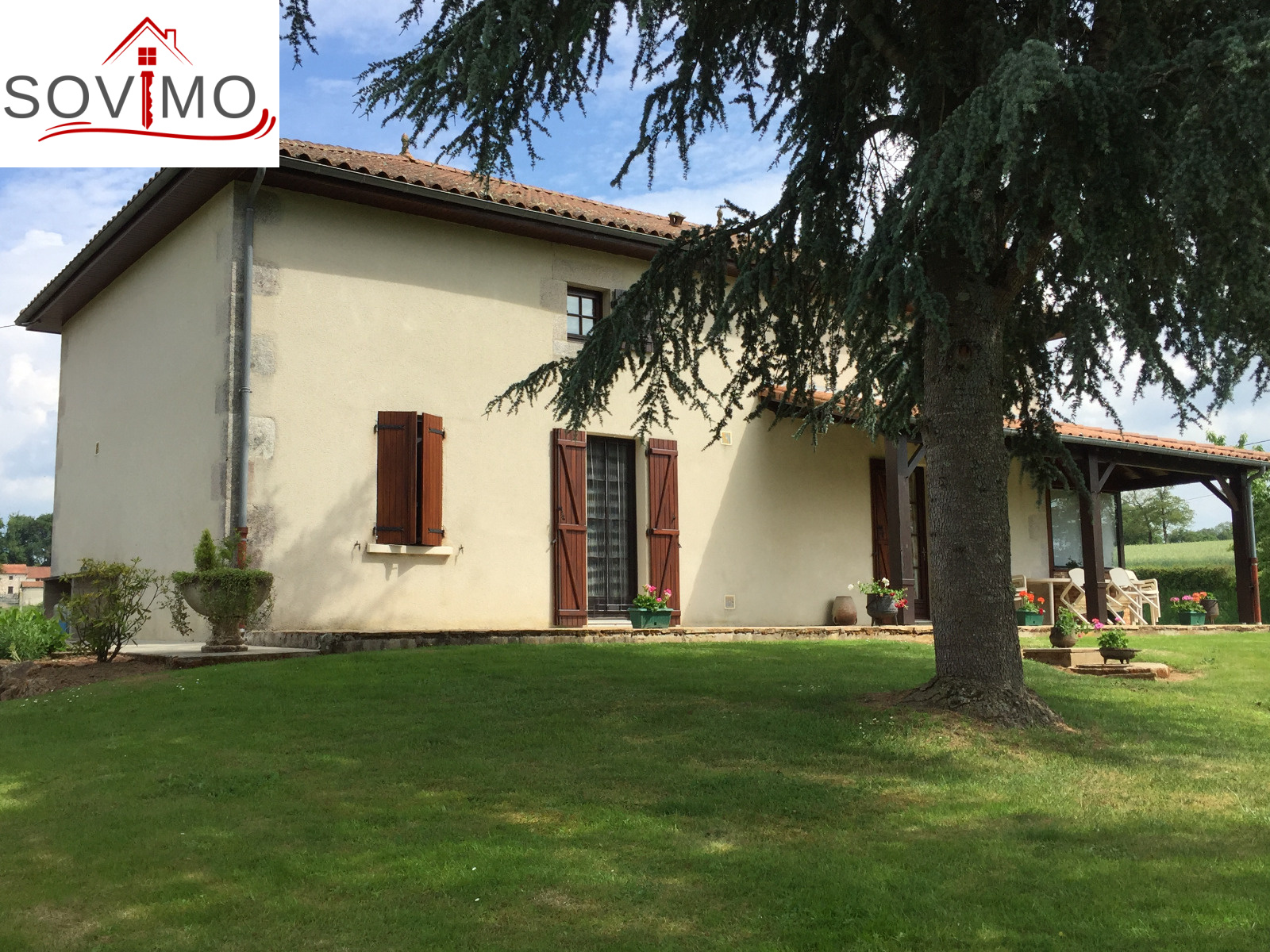 REF.33915 : 248 400 euros H.A.I., Brillac à 11.2 km de Confolens(16), dans un cadre verdoyant de grande qualité, jolie fermette indépendante restaurée sur 2ha env. bordure de rivière, 135 m2 env. utilisables : entrée, véranda, cuisine amé. équipée, salon/séjour (cheminée-insert), 1 chambre, salle d'eau, wc, à l'étage : palier, 3 chambres, salle d'eau/wc, grenier utilisable de 35 m2 env., chauf. fuel, terrasse couverte, fosse toutes eaux, hangar ouvert 94 m2, four à pain 17 m2, grange avec étable 330 m2, bergerie 50 m2, puits, parcelles de terre attenantes, le tout sur 2ha 10a 90ca. PLAN INTERIEUR A VOTRE DISPOSITION SUR DEMANDE.