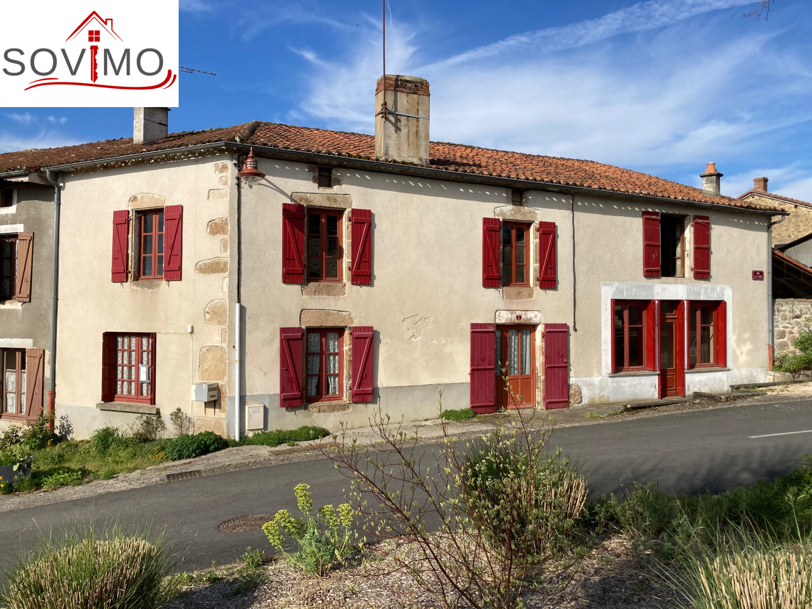 RÉF. 34483 : 29 000 euros H.A.I, Brillac, dans un village avec commerces de proximité, maison mitoyenne, à usage d'habitation, 120 m2 env. utilisables composée au rez de chaussée : entrée, cuisine/séjour (cheminée), salon, chaufferie de 11 m2 avec salle d'eau et wc, à l'étage : palier, 1 chambre, grenier aménageable de 53 m2. Chauf. fuel, assainissement collectif, Jardins séparés à 200 m avec petit toit sur 625 m2, le tout sur 773 m2.