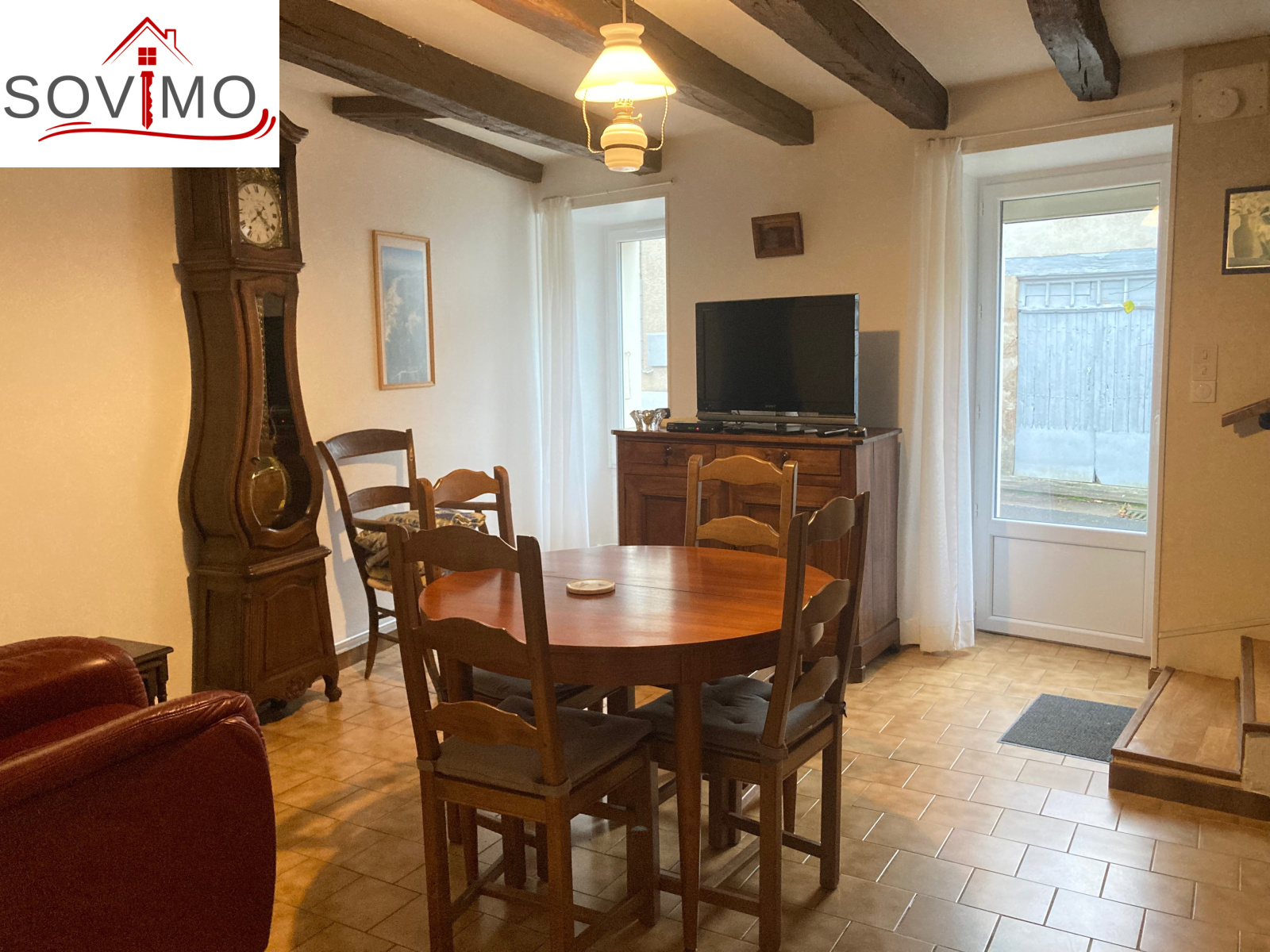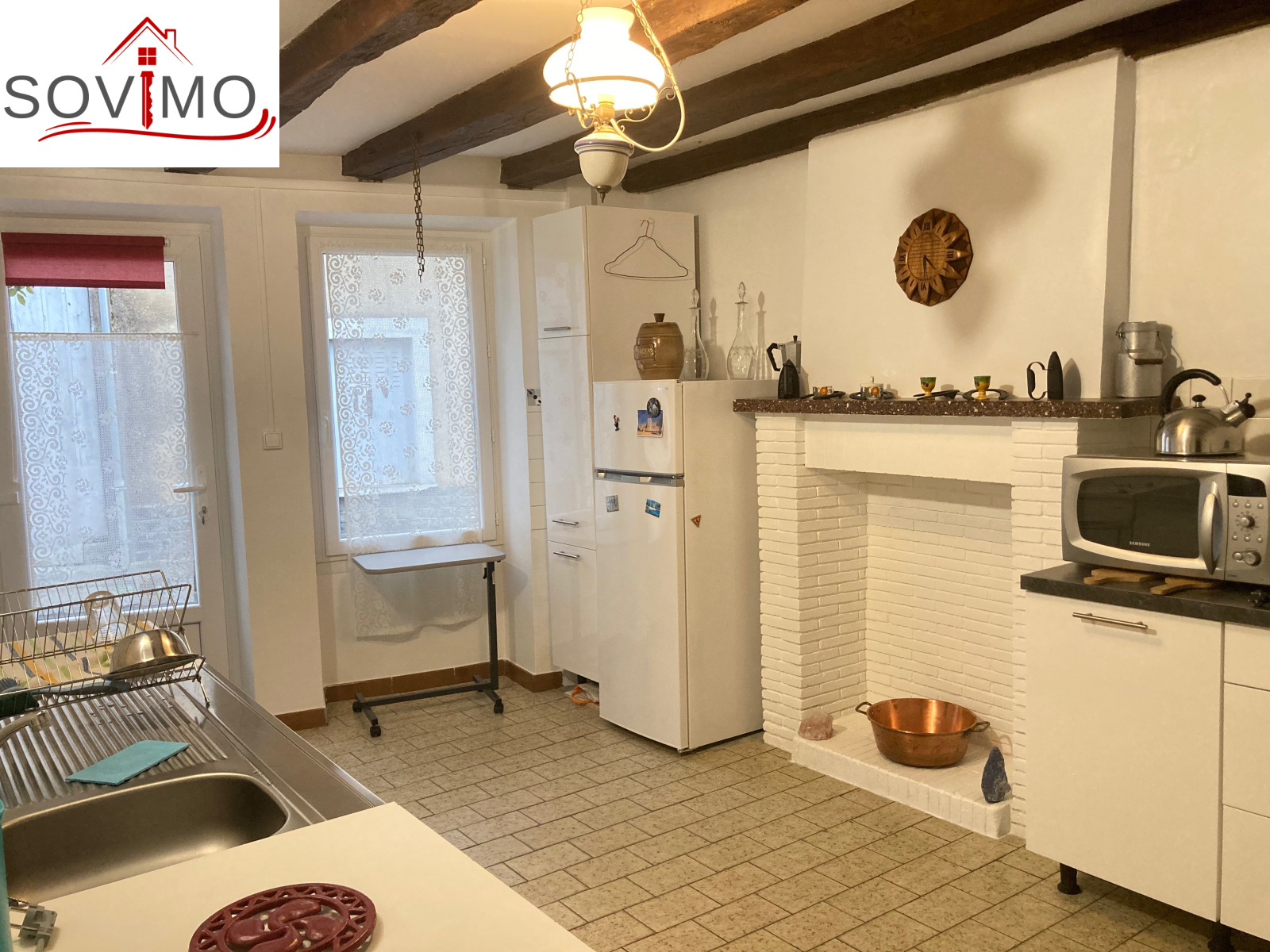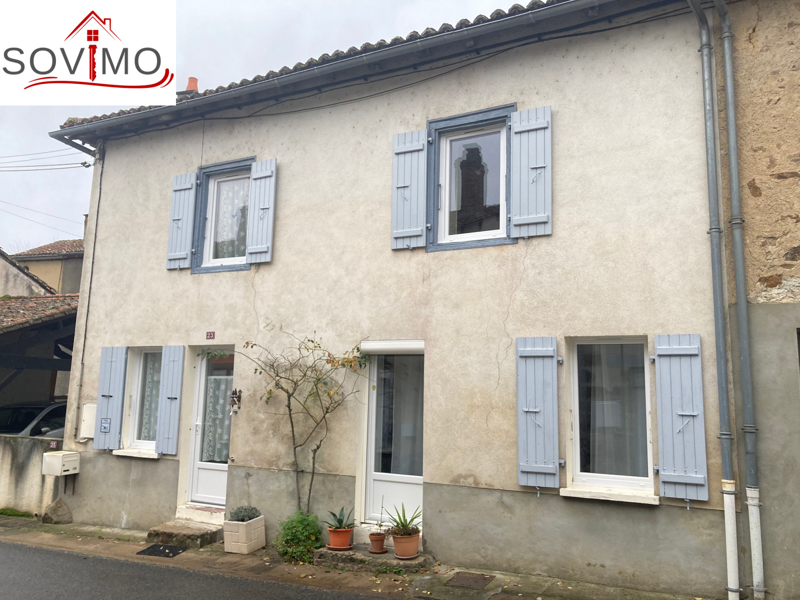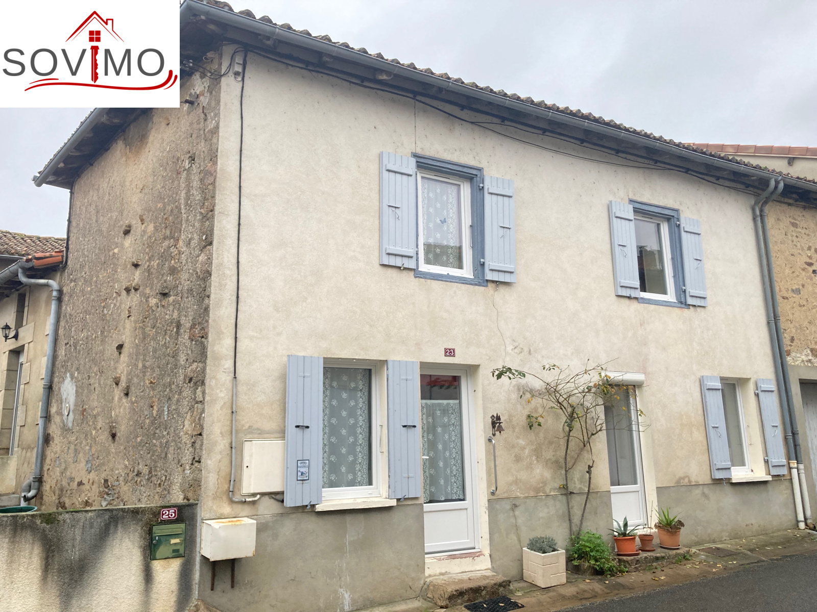 RÉF. 34451 : 39 600 euros H.A.I, Brillac (16), dans un village avec premiers commerces, maison mitoyenne, joliment restaurée, vendue meublée, à usage d'habitation, 70 m2 env. utilisables composée au rez de chaussée : cuisine aménagée (cheminée), salon, wc, à l'étage : palier, 2 chambres dont 1 avec accès cour, salle d'eau, wc, chauf. électrique, assainissement collectif. Cour attenante, jardin séparé de 186 m2, le tout sur 290 m2.