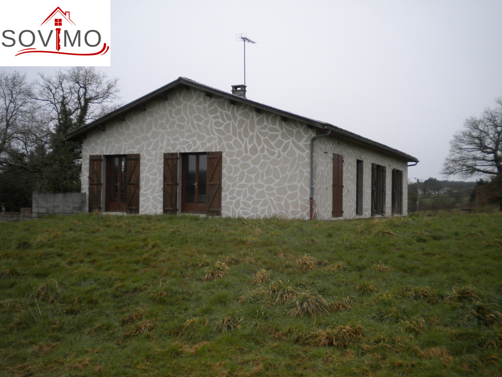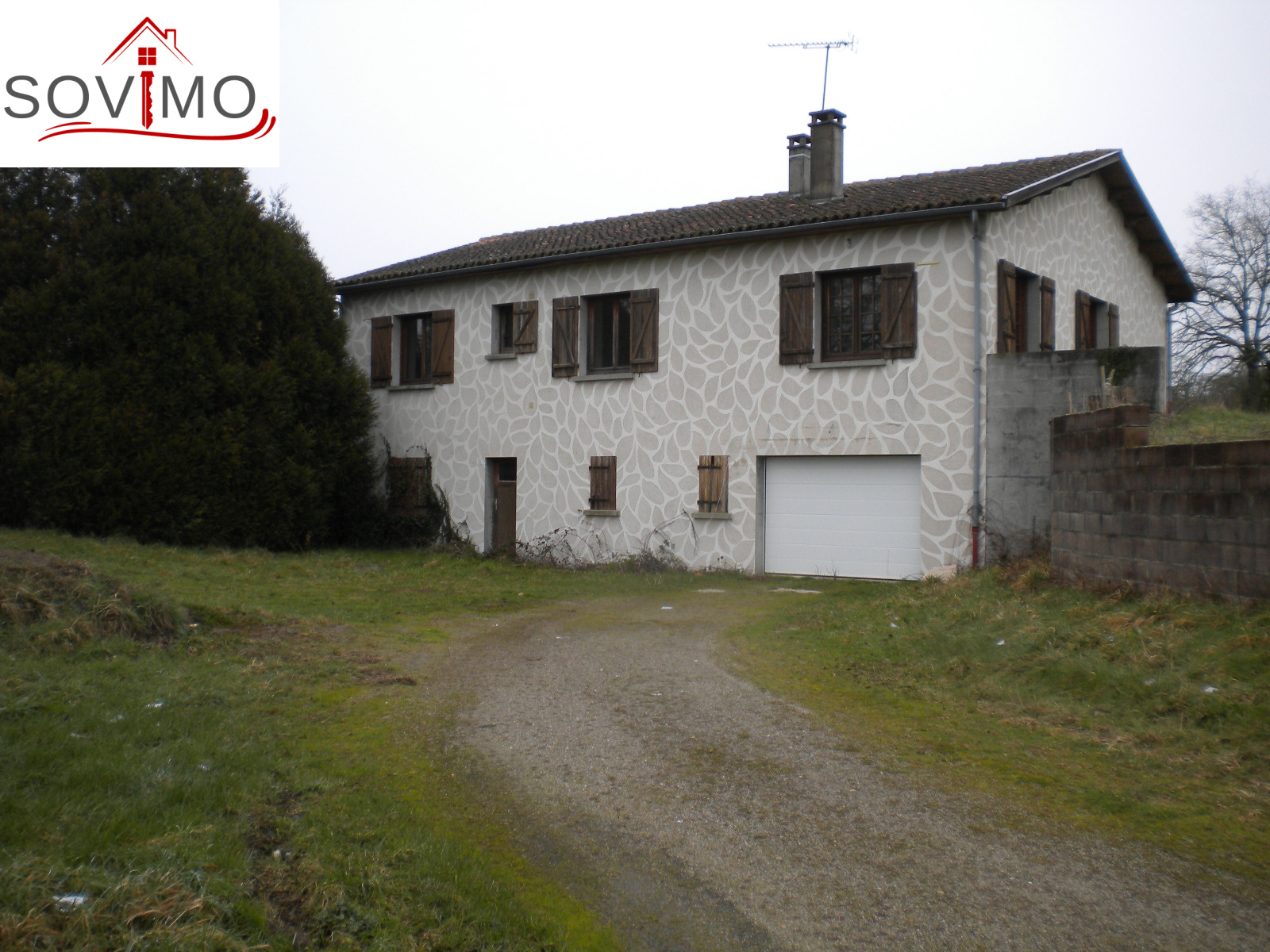 REF.33880 : 85 800 euros H.g.Incl., proche Confolens (16), maison de village indépendante de 1980 sur sous sol semi enterré, 124 m2 env. utilisables : entrée, cuisine, salon/séjour (cheminée avec insert), couloir, 4 chambres, salle de bain, wc, chauf. électrique, sous sol : buanderie 25 m2, cellier 16 m2, wc, local motopompe 16 m2 et garage 66 m2, tout à l'égout, terrain attenant avec puits et abri de jardin 29 m2, le tout sur 4480 m2.