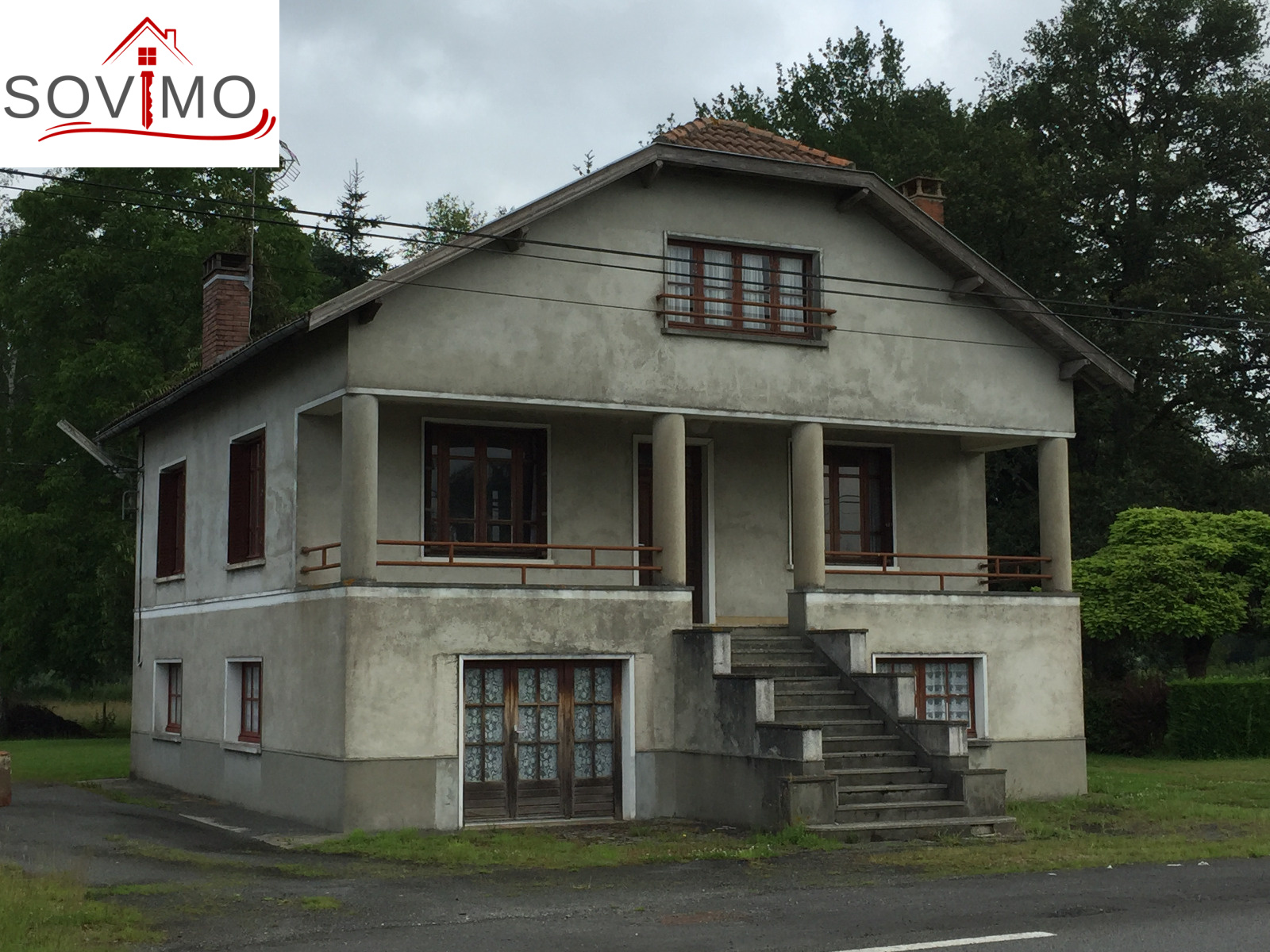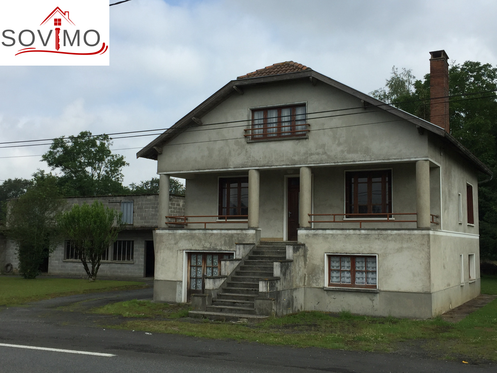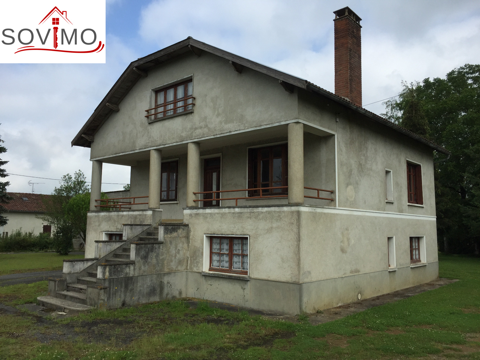 REF.33922 : 55 000 euros H.A.I, Brillac à 11.2 km de Confolens, bordure de départementale, maison de campagne indépendante habitable, 116 m2 env. utilisables : entrée, cuisine d'été, salon, 1 chambre, wc, à l'étage : entrée (balcon), cuisine, séjour (cheminée), 2 chambres, salle d'eau, wc, chauf. fuel, grenier aménageable 45 m2, chaufferie 22 m2, bâtiment indépendant à usage de garage 92 m2 et bureau 18 m2, appentis 35 m2, ancienne fosse septique, terrain attenant arboré avec puits et motopompe, le tout sur 2000 m2 env.