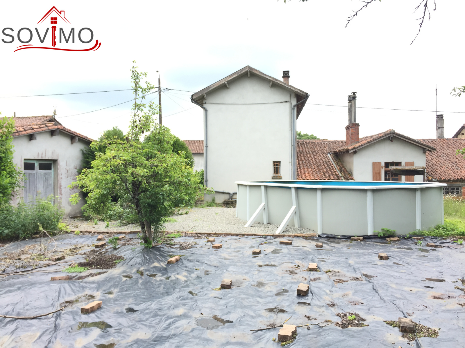 REF.34044 : 33 000 euros H.A.I, BRILLAC (16), en bordure de route avec trafic, maison de campagne mitoyenne, à rénover, à usage d'habitation, 130 m2 env. utilisables : entrée, cuisine, arrière cuisine (cheminée), séjour, dégagement, 2 chambres, salle de bain, wc, à l'étage : palier, 2 chambres, ancienne fosse septique, buanderie de 4 m2, cellier 27 m2, petite dépendance avec cheminée 15 m2, hangar à usage de garage 120 m2, appentis, atelier de 68 m2 avec grenier, piscine hors sol, puits avec motopompe, terrain attenant, le tout sur 3050 m2.