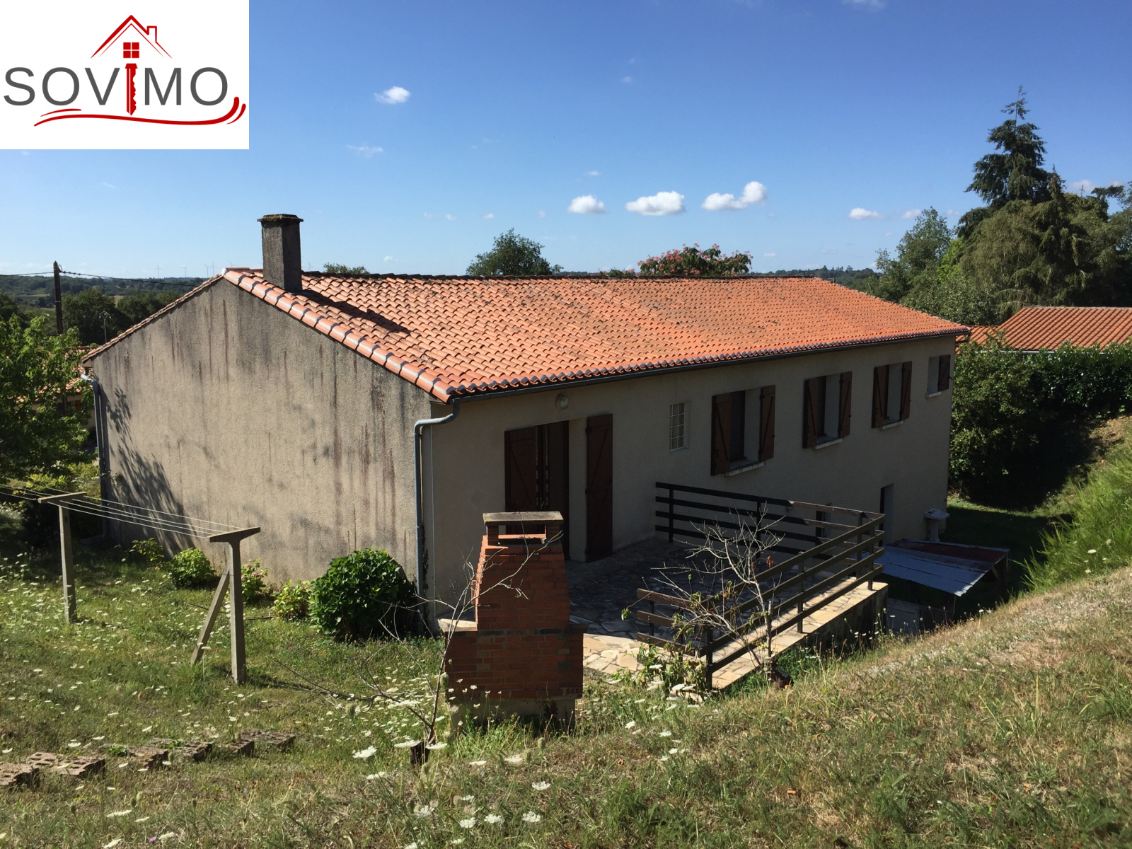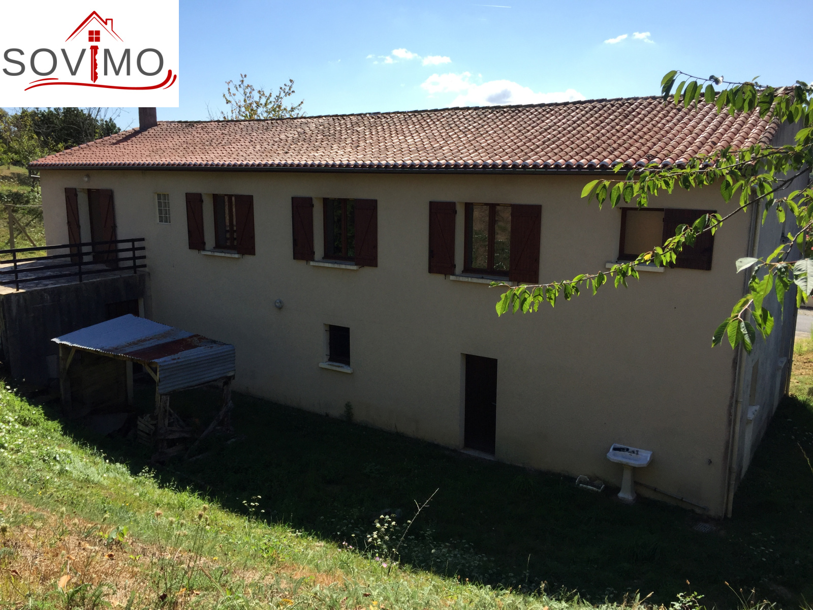 REF.33950 : 123 100 euros H.Ag.Incl., BRILLAC à 11.2 km de Confolens, proche confolens, dans un bourg avec premiers commerces, maison de village tout confort, 172 m2 env. utilisables : au rez de chaussée : entrée, bureau, au rez de jardin : cuisine, séjour/salon (cheminée), couloir, 5 chambres, dressing, salle de bain, wc, chauf.électrique, garage/cellir de 100 m2, cave, atelier/débarras de 55 m2, tout à l'égout, terrain attenant, le tout sur 1170 m2. VISITE VIRTUELLE 360 °