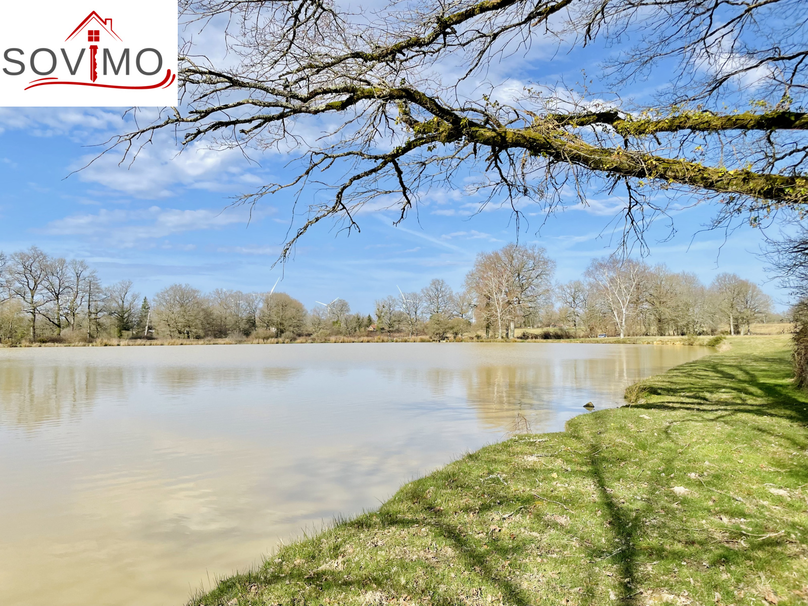 REF. 34723 : 39 600 euros H.A.I, Brillac (16), En campagne, un terrain de loisirs sur 2, 96 ha env. traversé par un ruisseau : un étang empoissonné de 7395 m2 alimenté par des sources (travaux de conformité à réaliser) avec parcelle autour non constructible de 2ha 23 env. en Zone N cloturée avec présence de chêne en limite de propriété, accès facile par un chemin communal empierré.