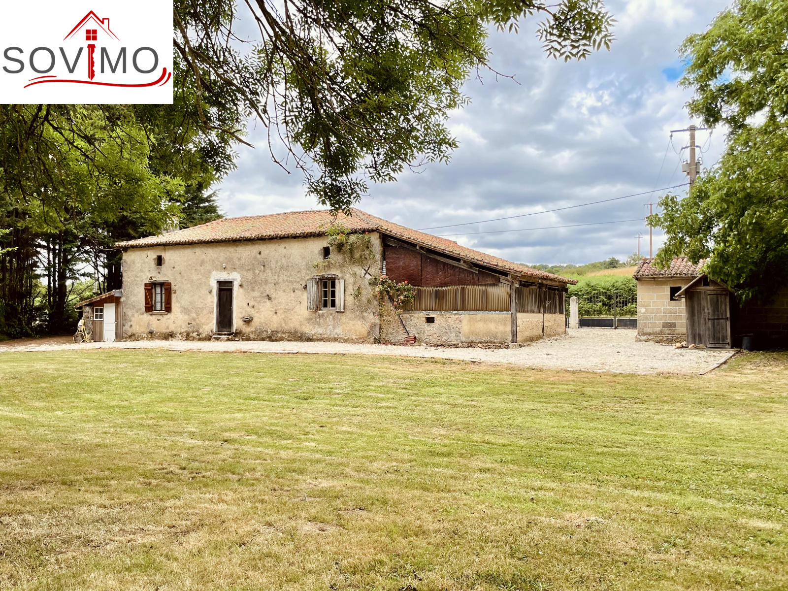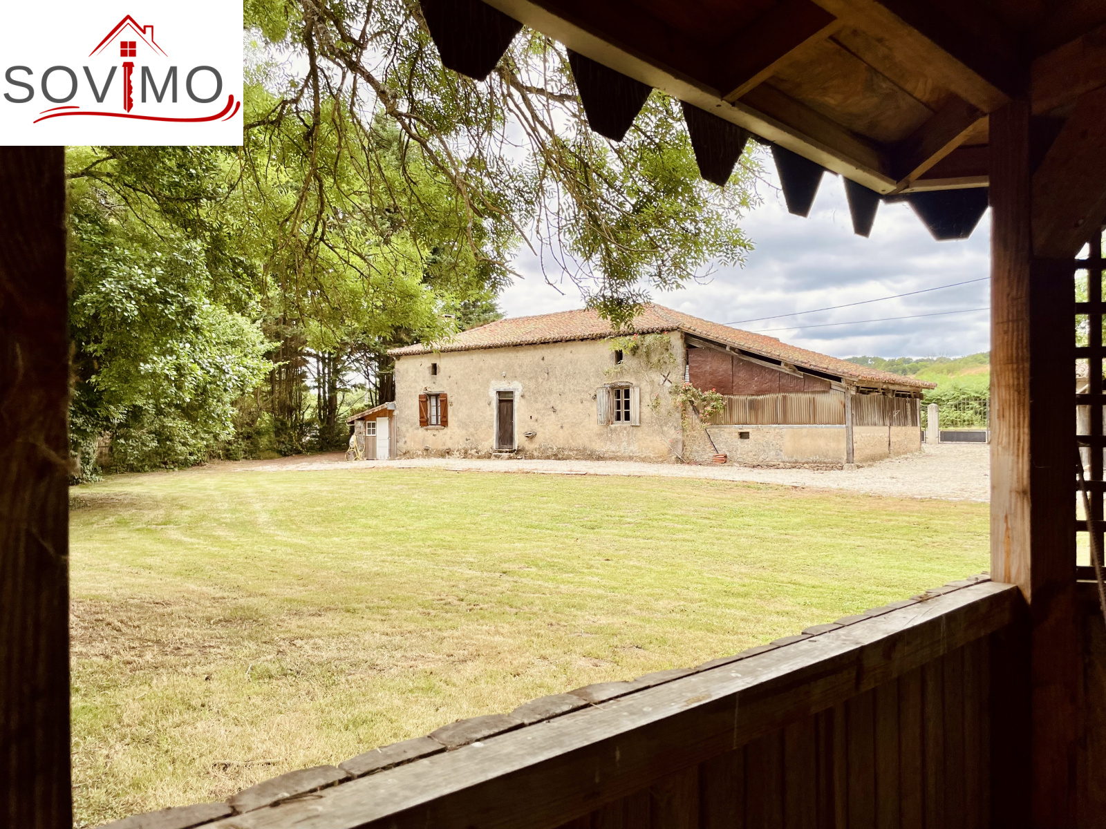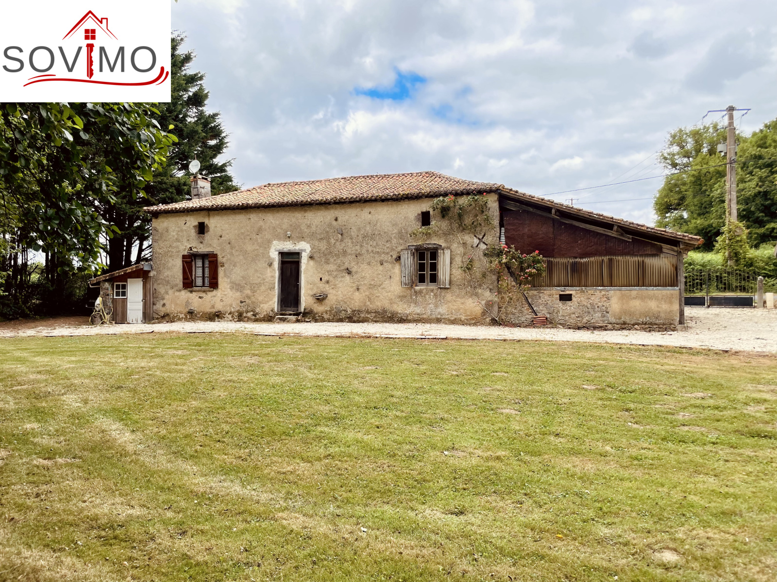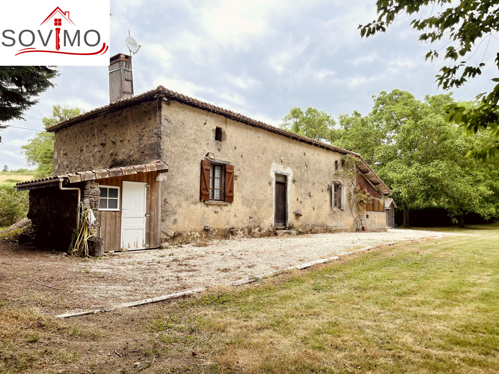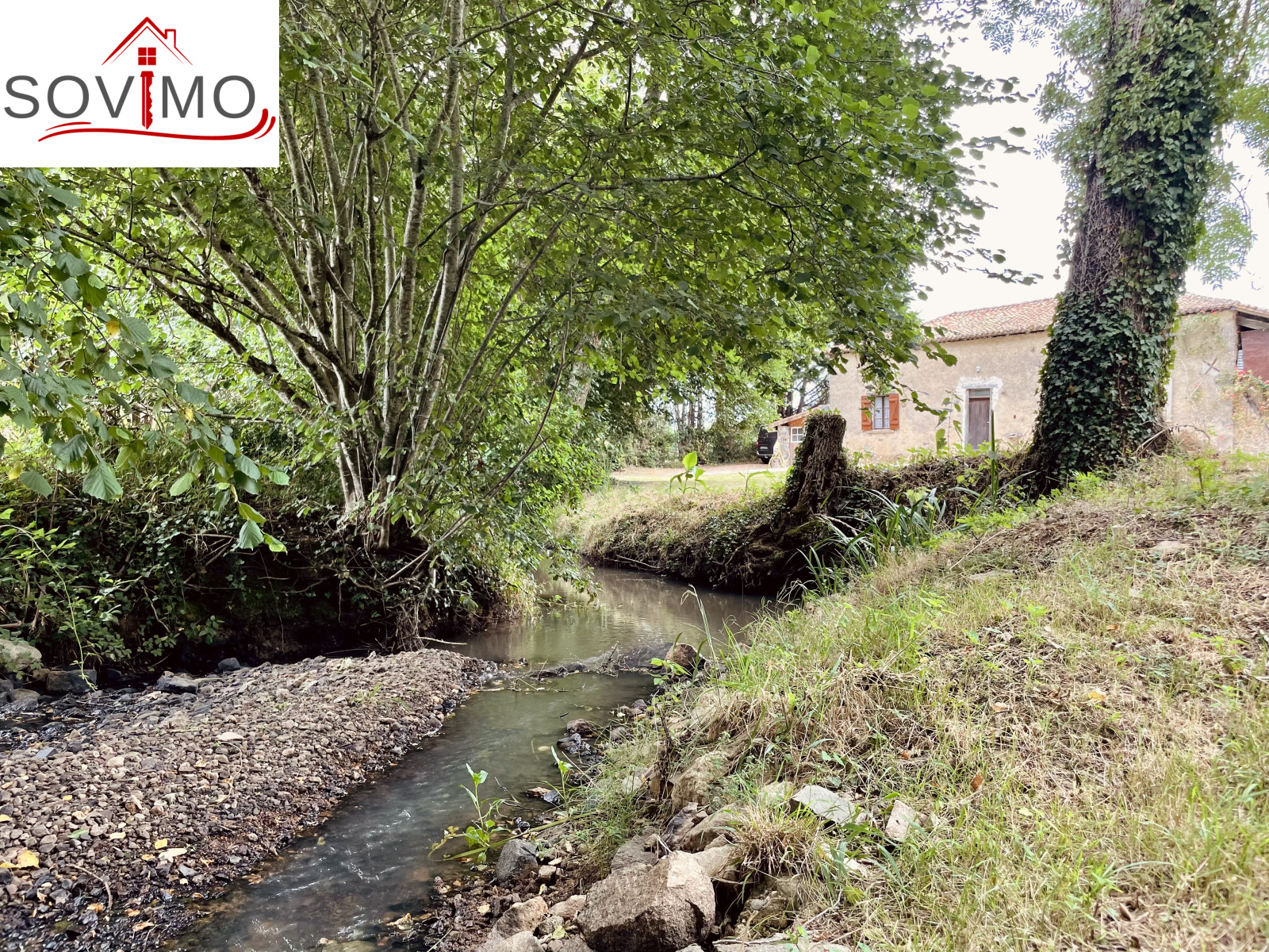 REF. 34861 : 60 500 euros HAI, Abzac (16), à 5 kms de tous commerces, EXCLUSIVITÉ ! dans un cadre reposant et agréable en bord de ruisseau, du potentiel pour cette chaumière, sans confort, à rénover, à usage d'habitation, 80 m2 env. utilisables, composée au rez de chaussée : une pièce d'eau de 4 m2 attenant à la maison, entrée/couloir, 2 pièces, à l'étage : grenier aménageable de 85 m2. Garage/atelier attenant de 35 m2 + petits toits, toilettes sèches extérieur, kiosque et barbecue, terrain attenant, le tout sur 2120 m2.