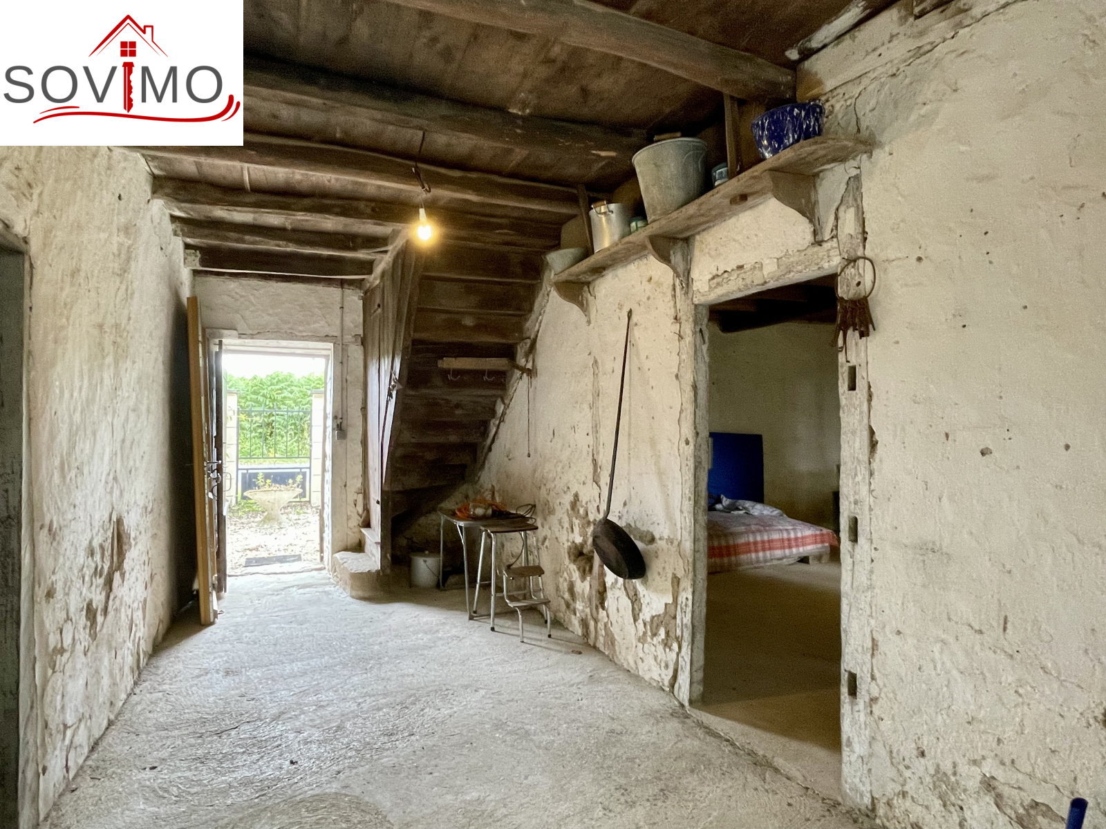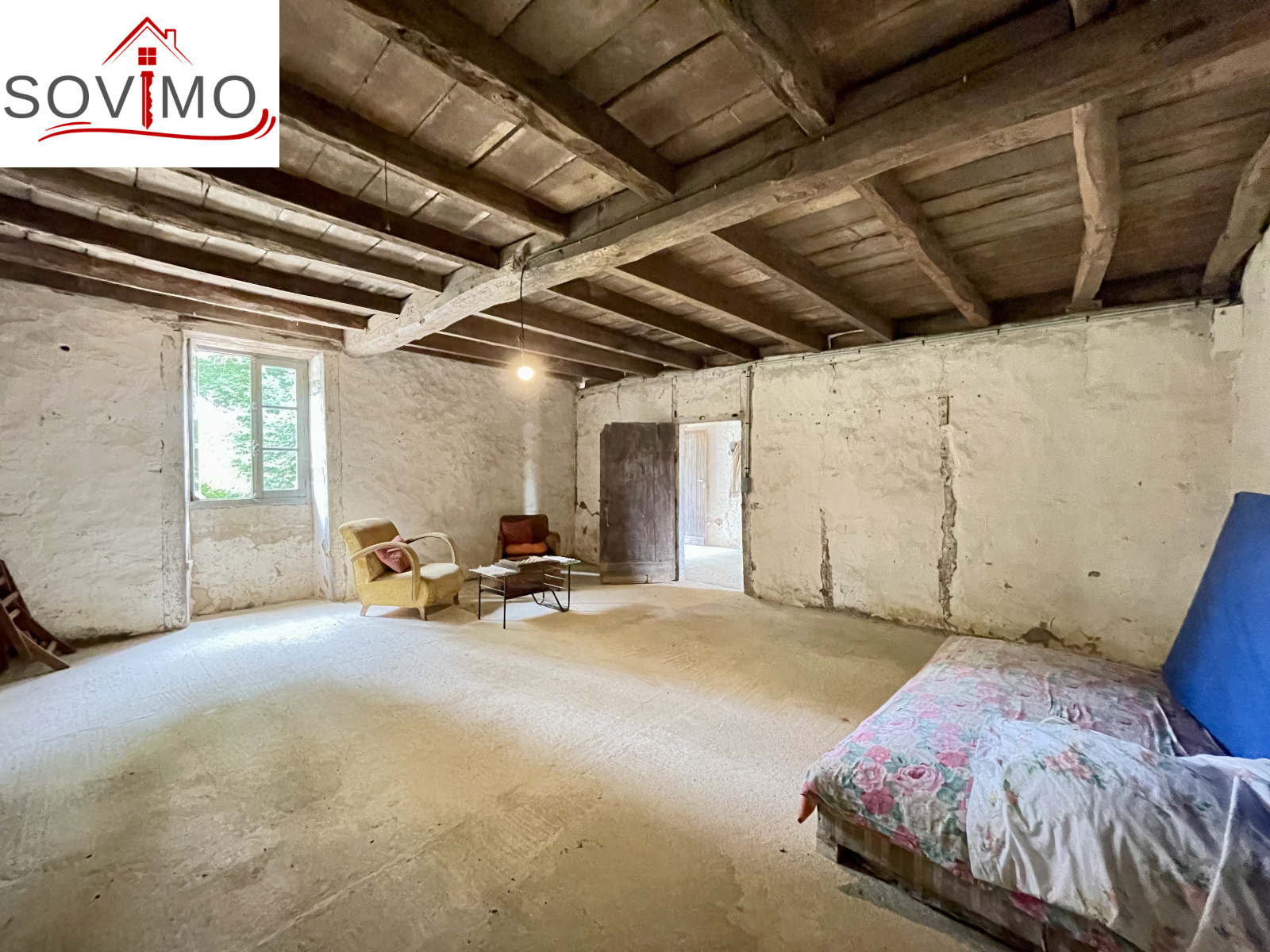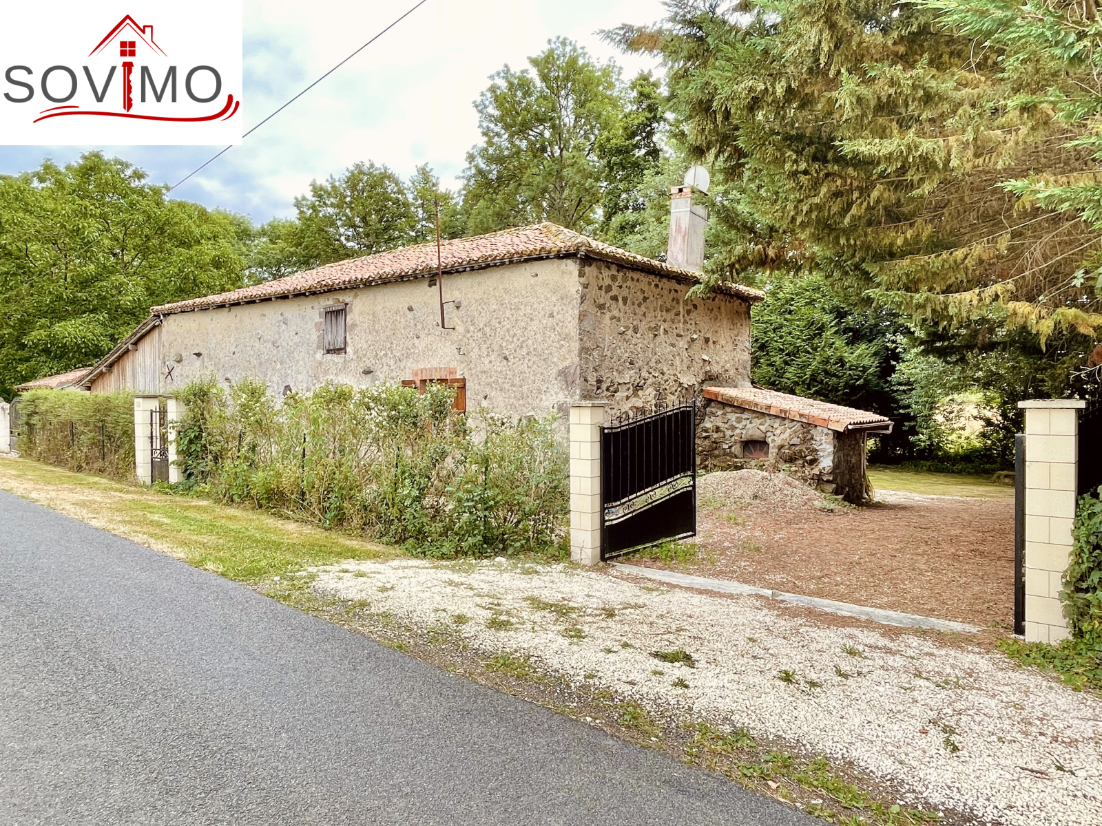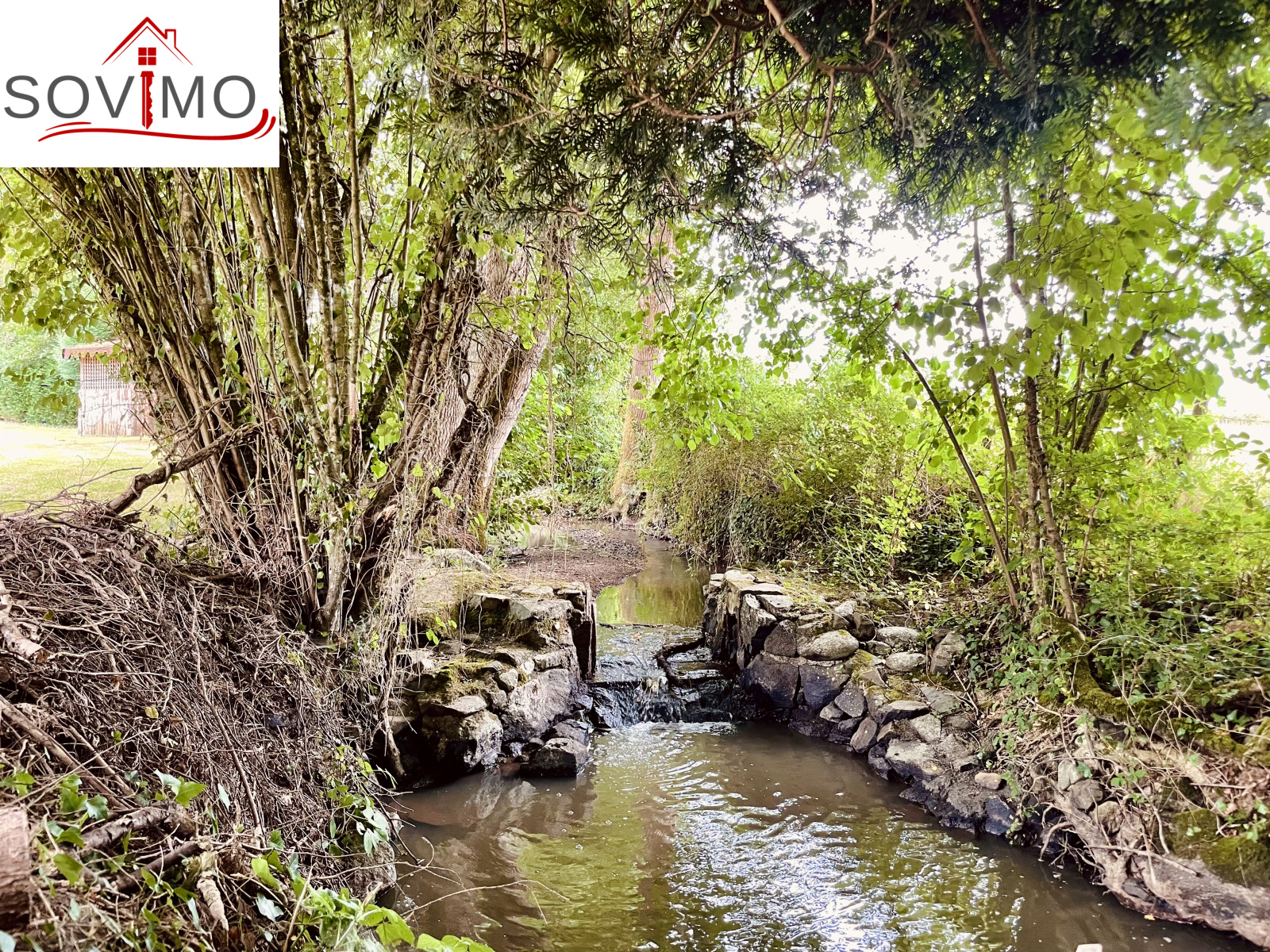 REF. 34861 : 60 500 euros HAI, Abzac (16), à 5 kms de tous commerces, EXCLUSIVITÉ ! dans un cadre reposant et agréable en bord de ruisseau, du potentiel pour cette chaumière, sans confort, à rénover, à usage d'habitation, 80 m2 env. utilisables, composée au rez de chaussée : une pièce d'eau de 4 m2 attenant à la maison, entrée/couloir, 2 pièces, à l'étage : grenier aménageable de 85 m2. Garage/atelier attenant de 35 m2 + petits toits, toilettes sèches extérieur, kiosque et barbecue, terrain attenant, le tout sur 2120 m2.