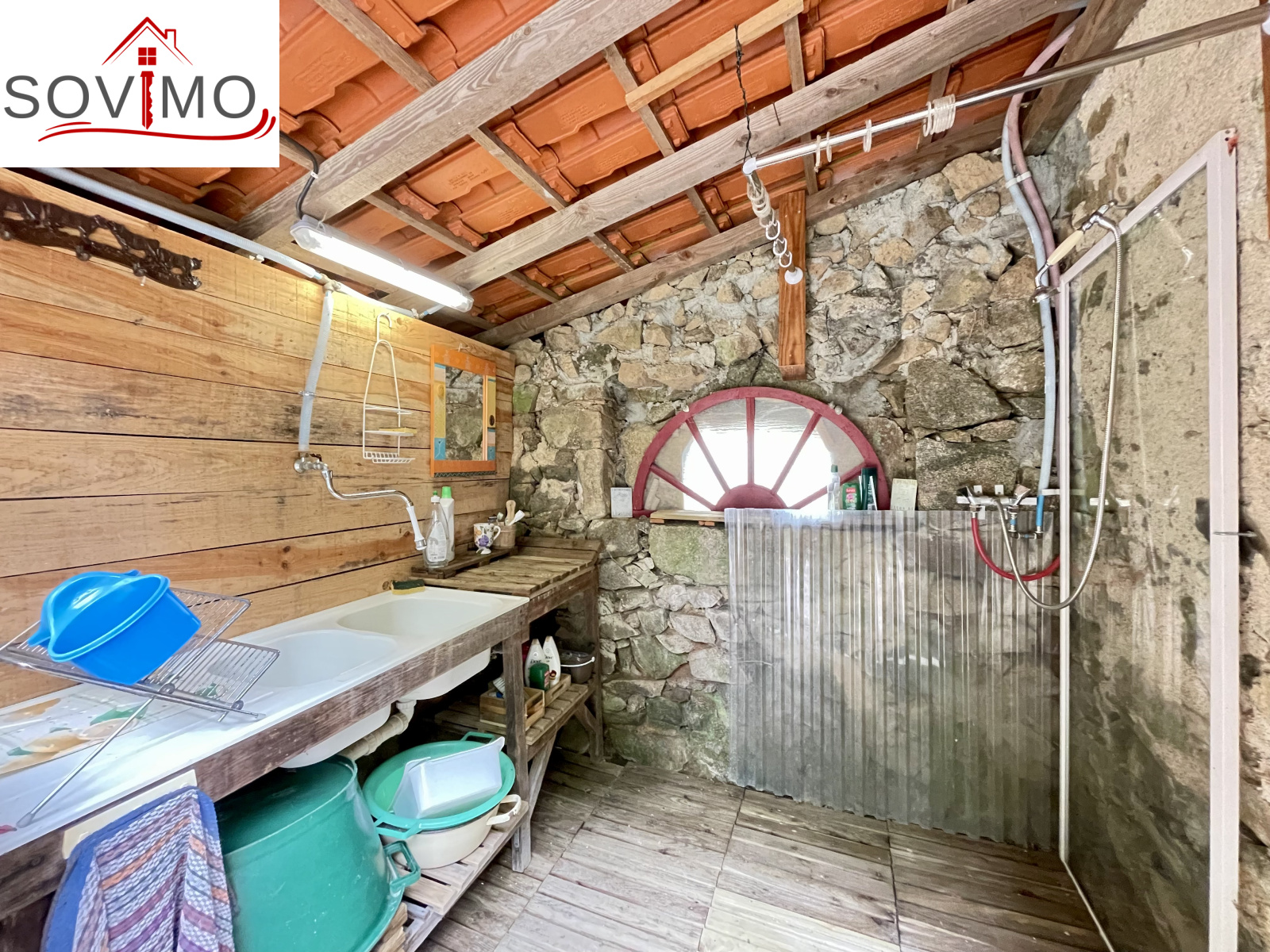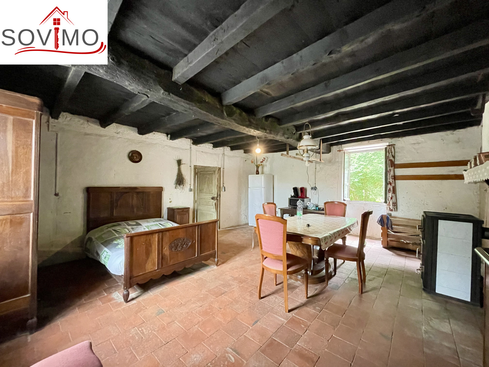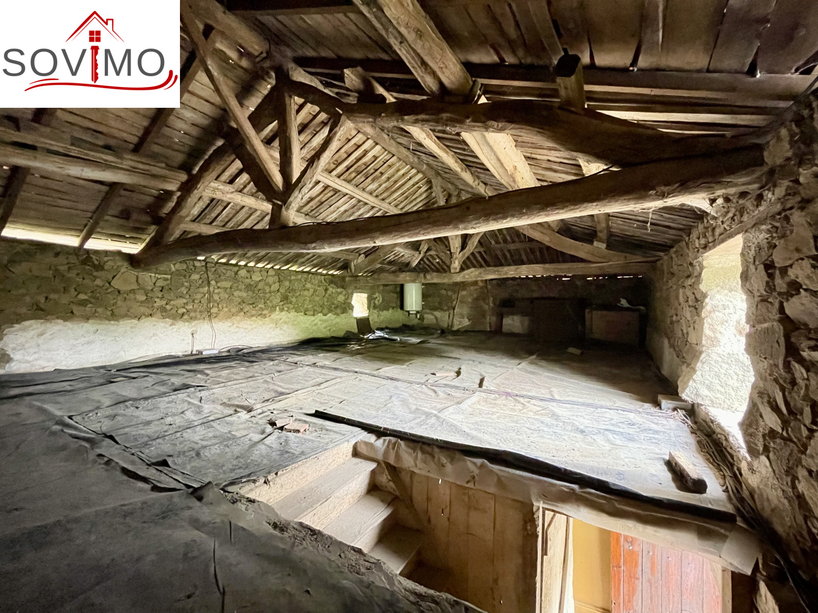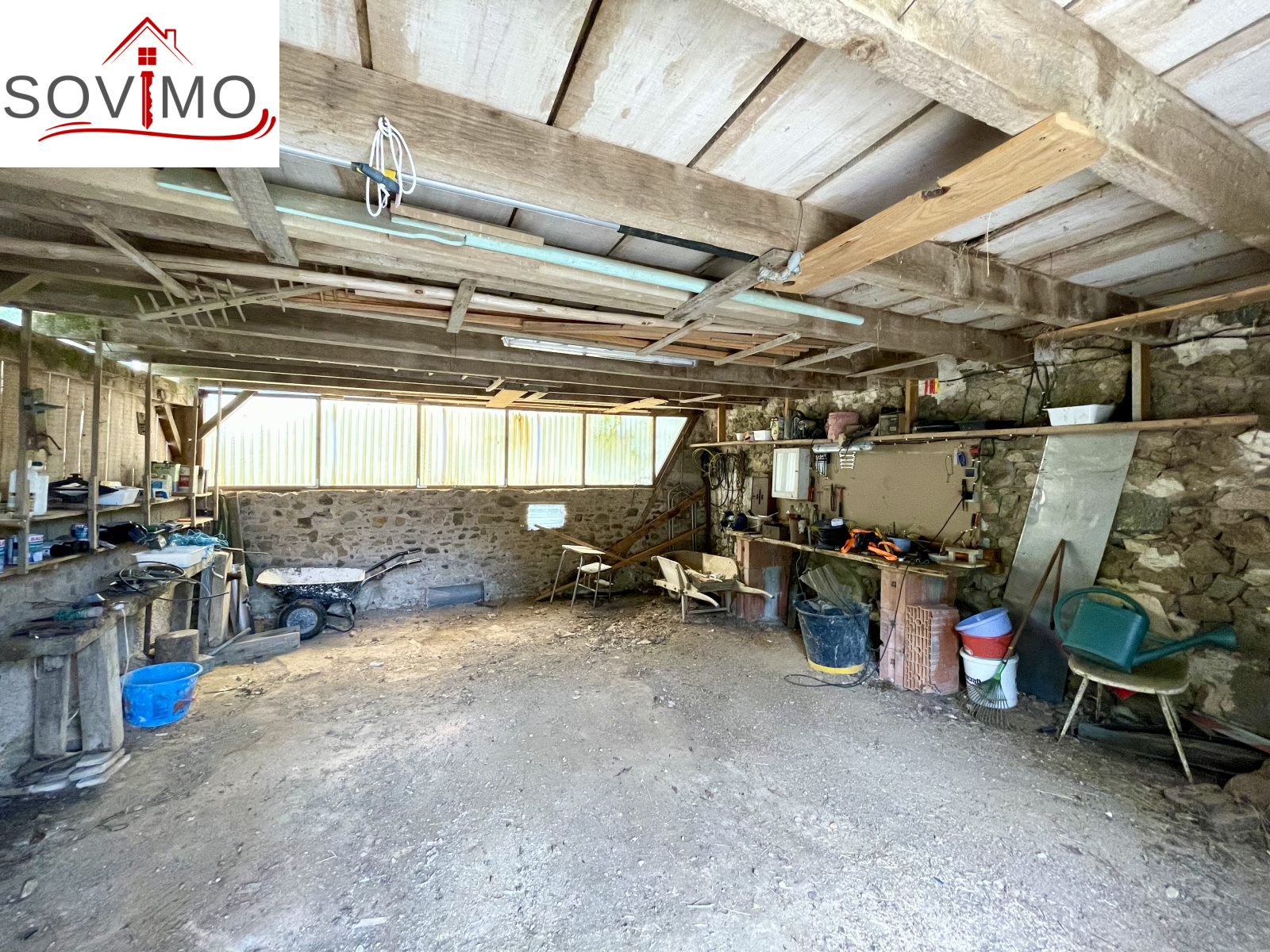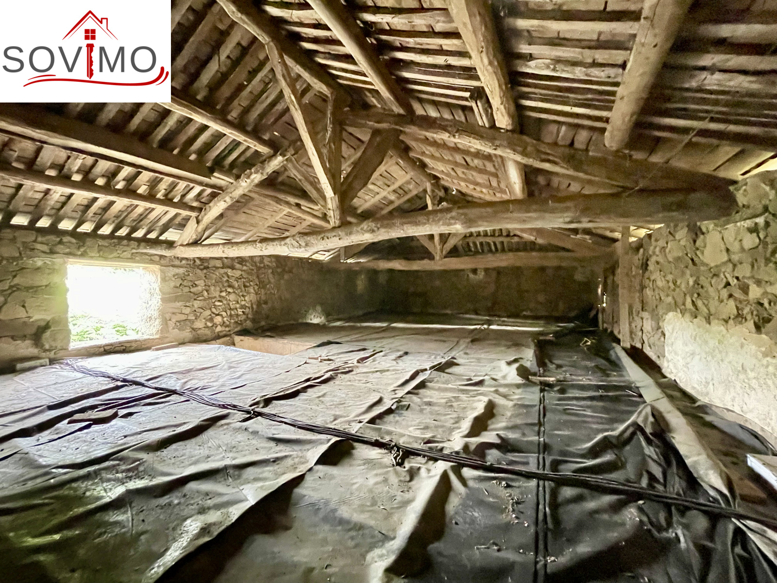 REF. 34861 : 60 500 euros HAI, Abzac (16), à 5 kms de tous commerces, EXCLUSIVITÉ ! dans un cadre reposant et agréable en bord de ruisseau, du potentiel pour cette chaumière, sans confort, à rénover, à usage d'habitation, 80 m2 env. utilisables, composée au rez de chaussée : une pièce d'eau de 4 m2 attenant à la maison, entrée/couloir, 2 pièces, à l'étage : grenier aménageable de 85 m2. Garage/atelier attenant de 35 m2 + petits toits, toilettes sèches extérieur, kiosque et barbecue, terrain attenant, le tout sur 2120 m2.