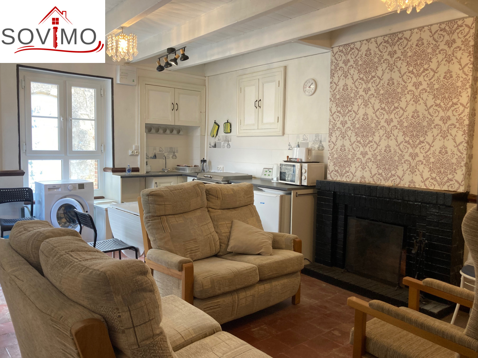 REF. 34482 : 33 000 eurs H.A.I, Abzac (16), 11 kms de Confolens, EXCLUSIVITÉ ! dans un village, idéal maison de vacances à usage d'habitation, 42 m2 env. utilisables : cuisine/séjour (cheminée), cabinet de toilette, étage : palier, 1 chambre, 1 pièce, salle d'eau/wc, tout à l'égout, sans jardin.