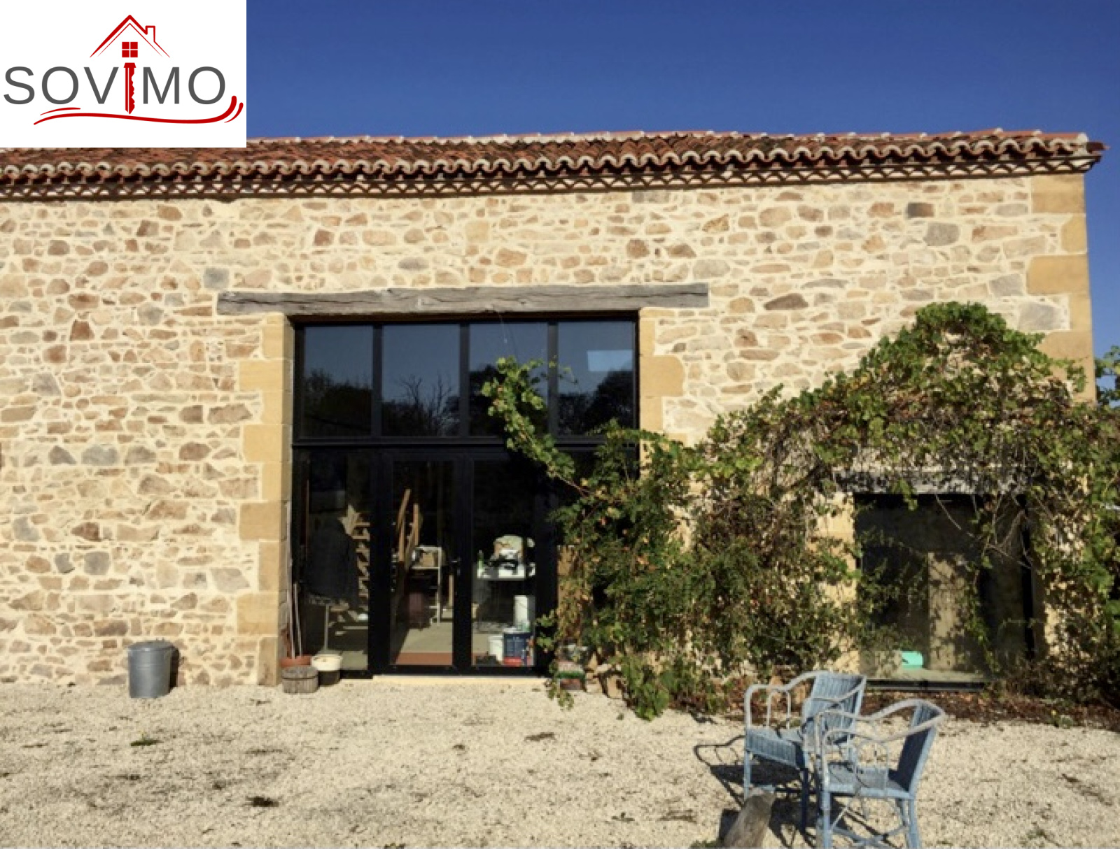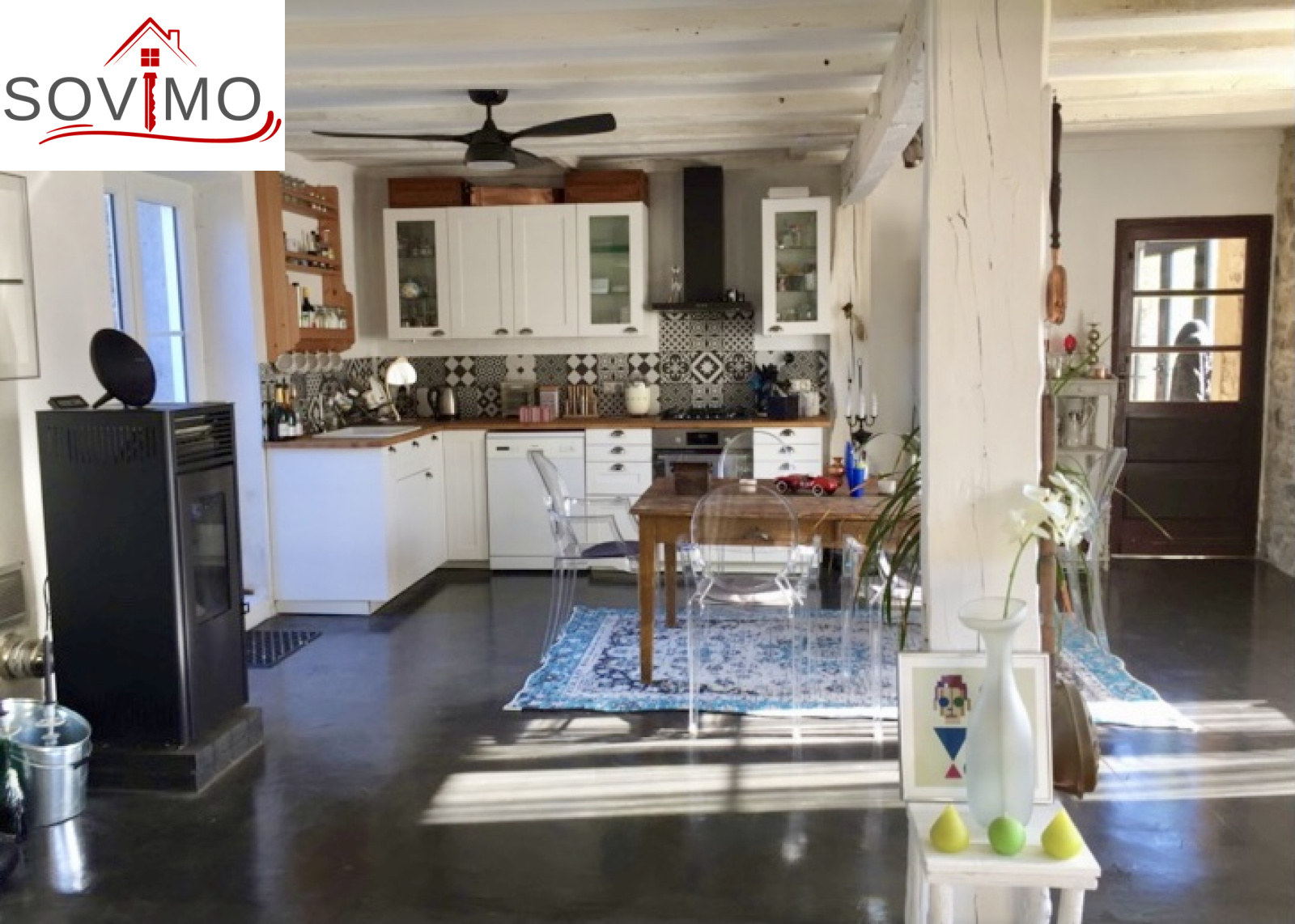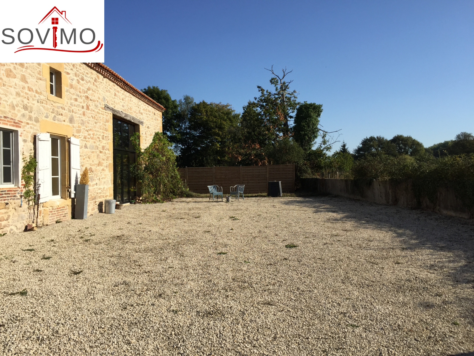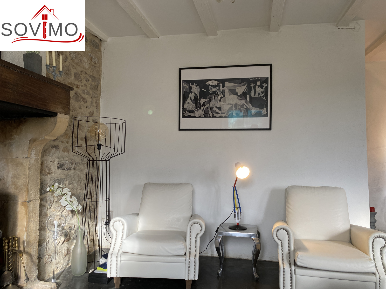 Maison principale : maison individuelle, récemment rénovée, en belle pierre sablée d'origine, avec portes et fenêtres neuves à double vitrage, sur 178 m² minimum de surface habitable : sol en béton poli, cuisine/salon/salle à manger équipée d'une cheminée en pierre d'origine avec poêle à bois à granulés, buanderie et salle d'eau/wc au rez-de-chaussée.