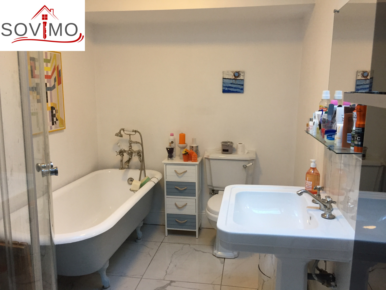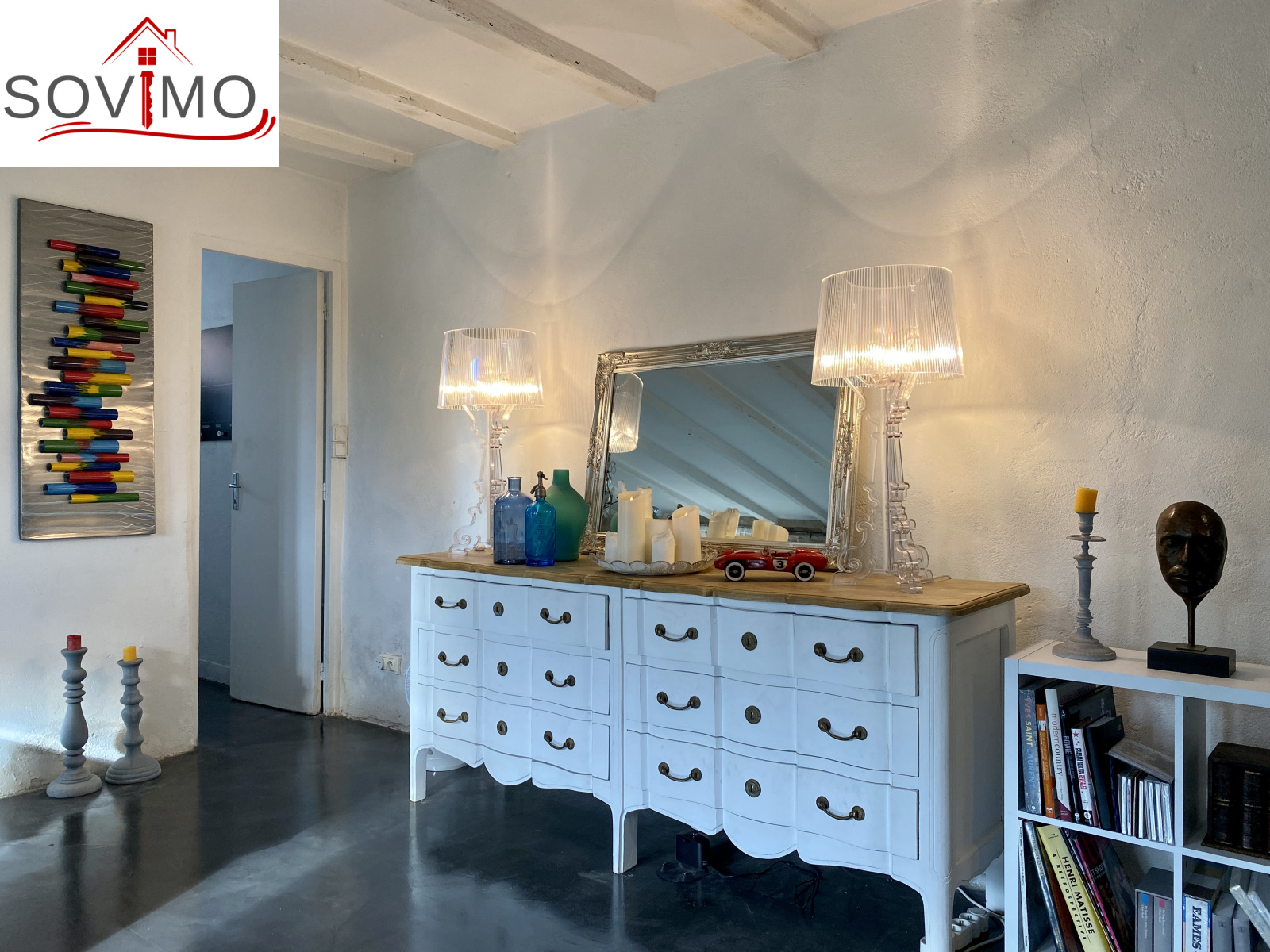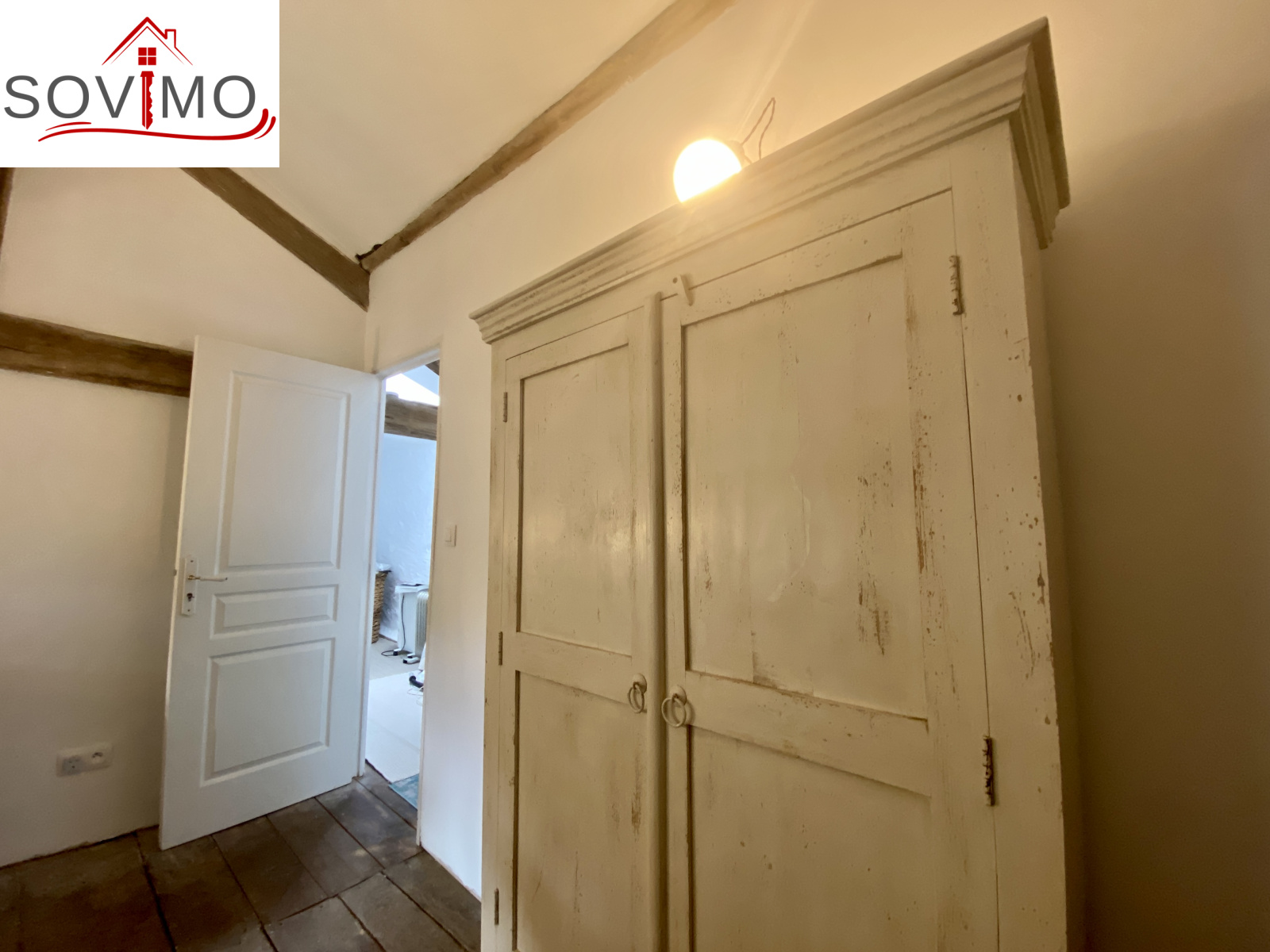 Egalement accessible depuis le rez-de-chaussée : ancienne grange attenante de double hauteur rénovée avec toiture isolée, poutres apparentes, portes et velux neufs, double vitrage.
