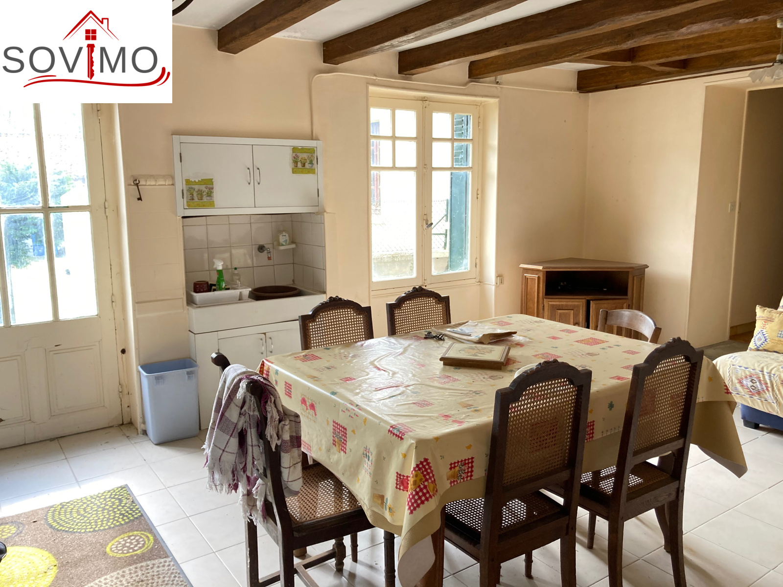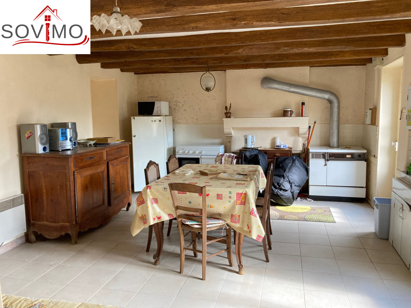INFORMATIONS COMPLEMENTAIRES : chauffage électrique, cheminée avec cuisinière bois, chauffe eau gaz, simple vitrage bois, persiennes métalliques, construction de 1873/1955/1978 en pierre/parpaing, toiture tuile état d'usage, ancienne fosse septique, état général moyen.
