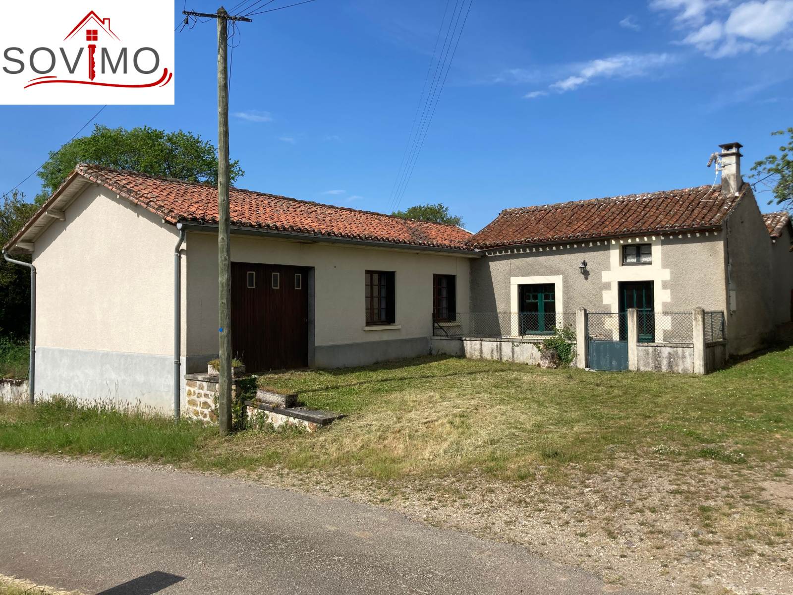 REF. 34254 : 44 000 euros H.A.I, ABZAC (16), dans un hameau, maison de campagne plain pied, indépendante, à usage d'habitation, 96 m2 env. utilisables : cuisine/séjour (cheminée avec cuisinière bois), 2 couloirs, 3 chambres, salle de bain, cabinet de toilette, grenier au dessus, chauf. électrique, ancienne fosse septique, garage de 22 m2, petit toit, cellier avec grenier, 2 puits dont 1 avec motopompe, terrain attenant, le tout sur 1525 m2.