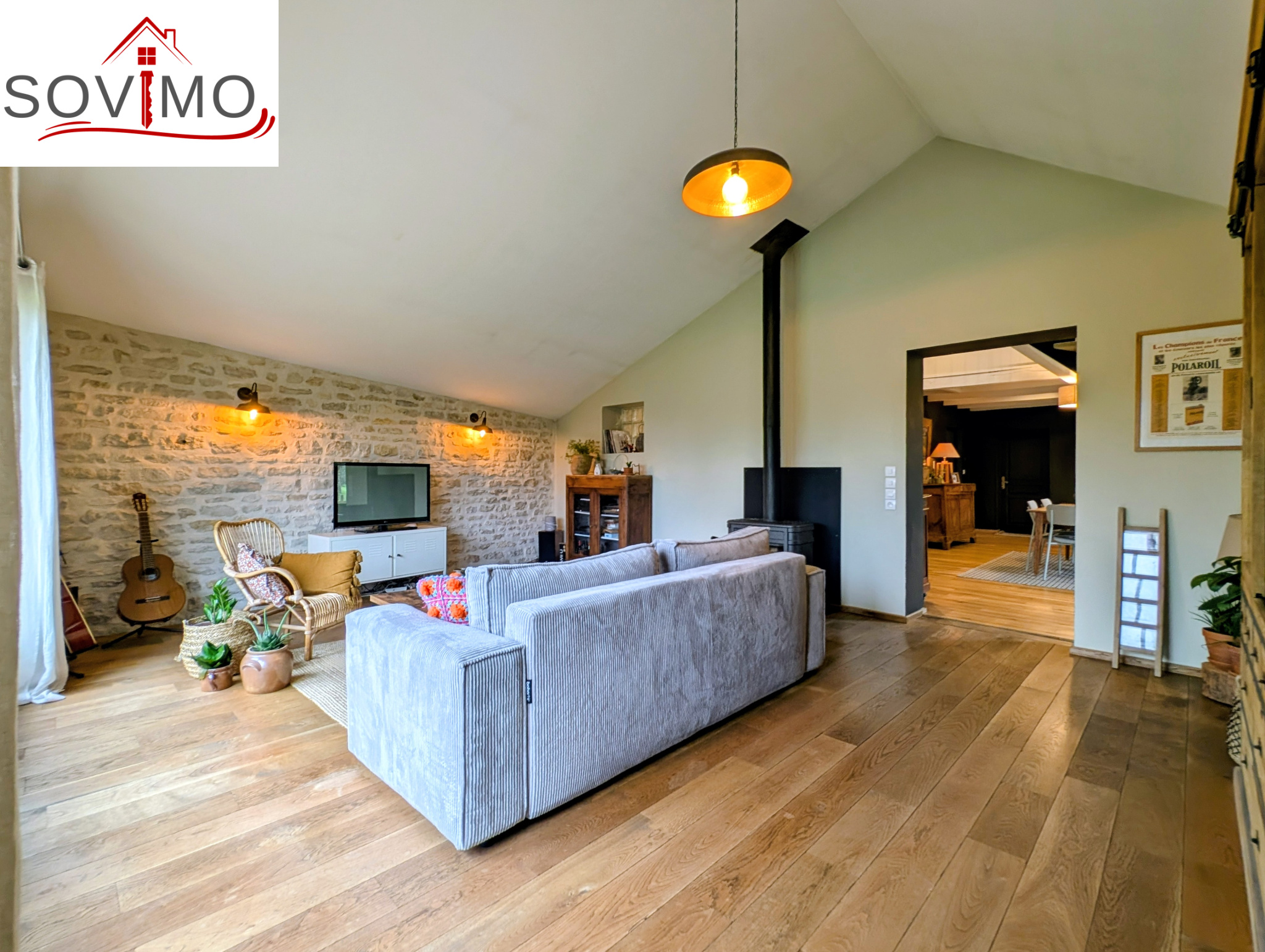 Maison de caractère, mitoyenne sur une partie, rénovée avec goût et bénéficiant d’une extension réalisée en 2016. Lumineuse et chaleureuse, prête à accueillir votre projet de vie à la campagne.