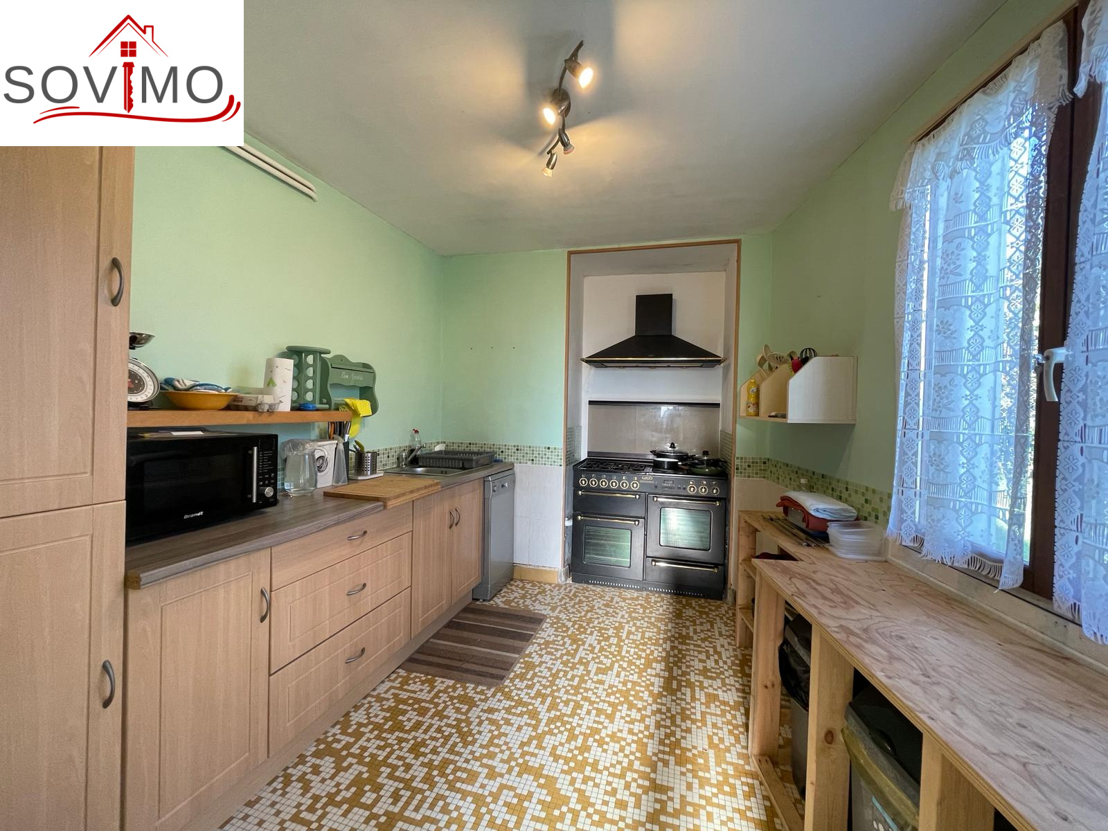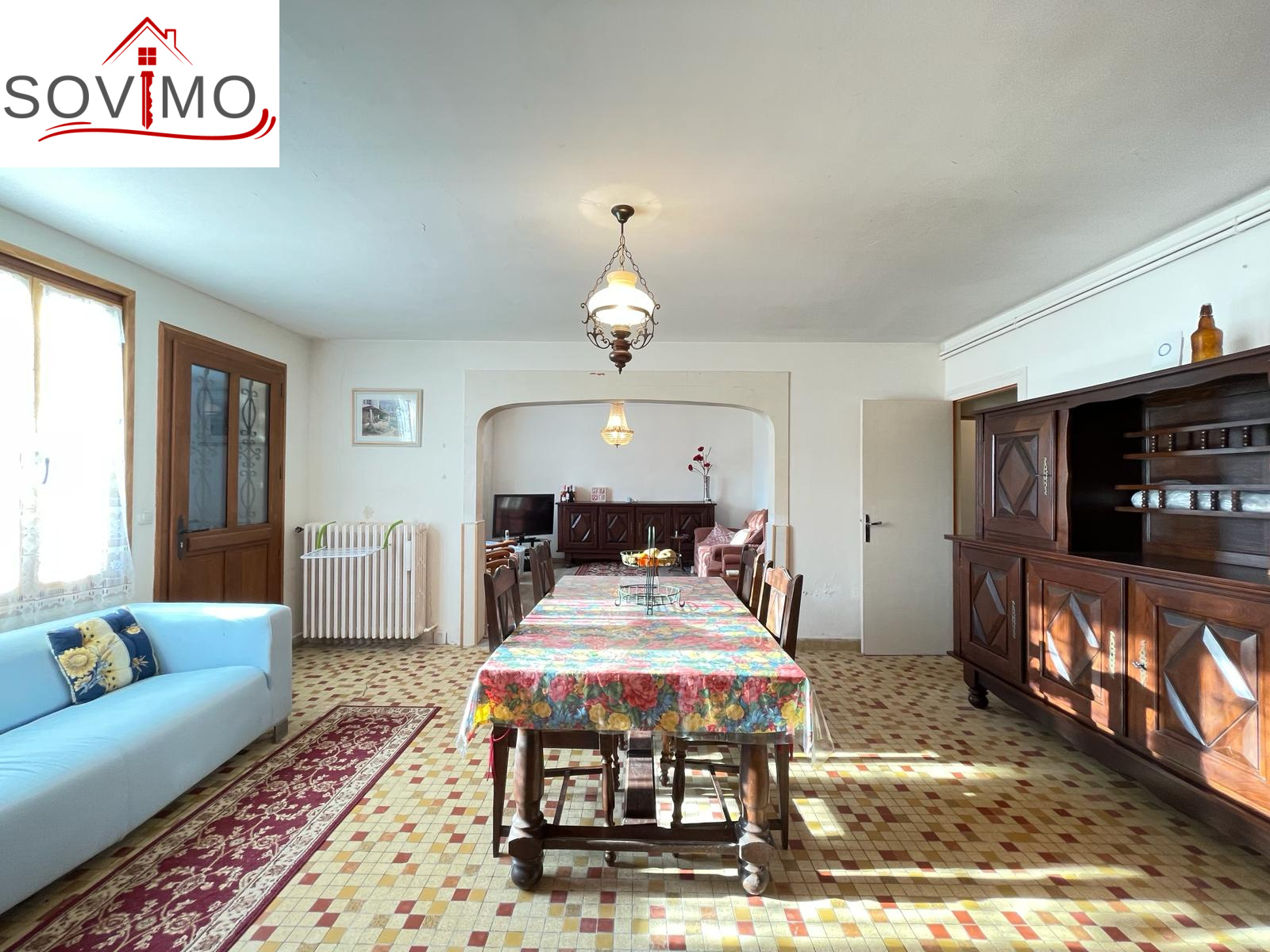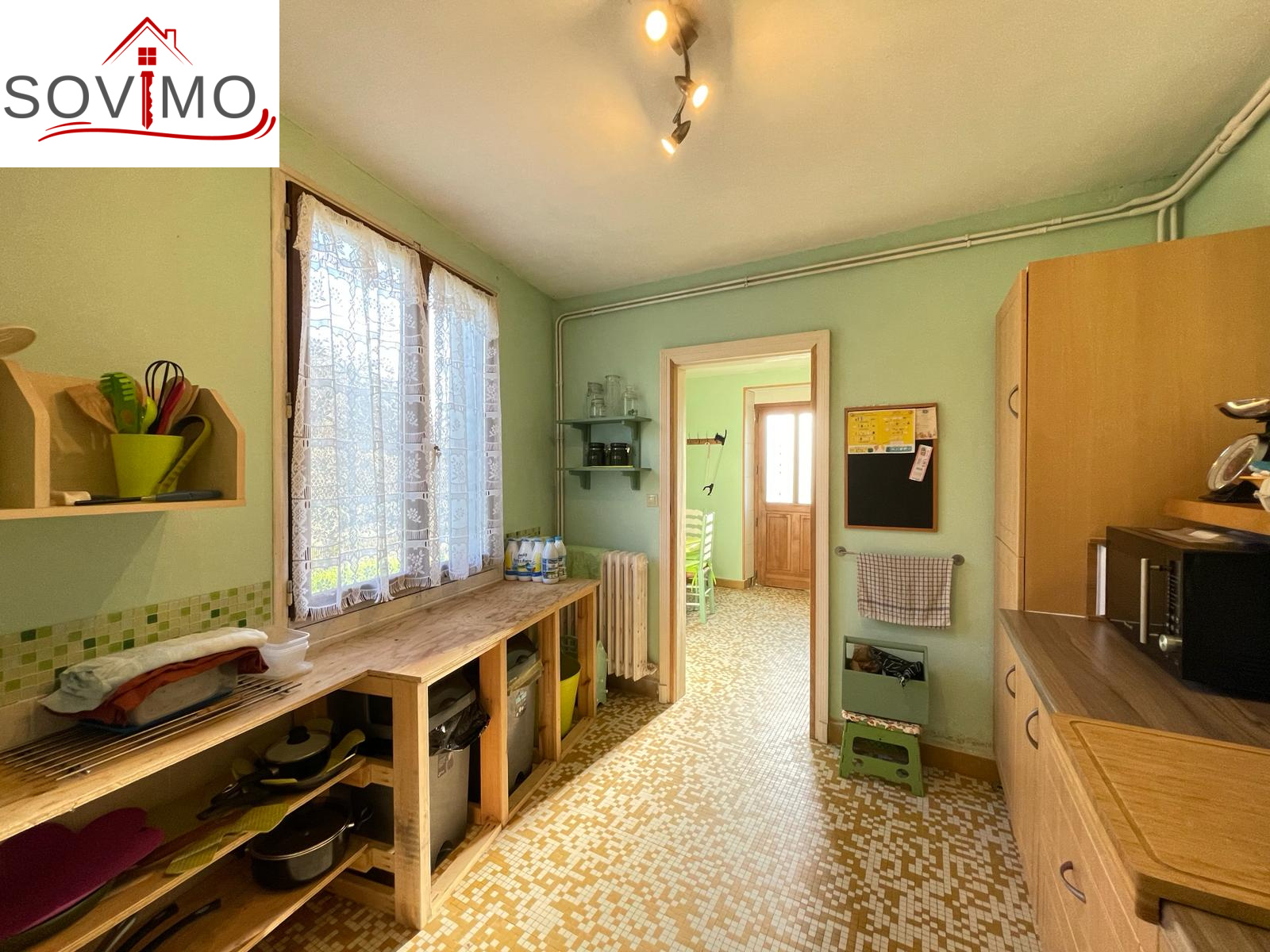 Infos complémentaires : Construction en pierre (et parpaing pour un garage), toiture tuile état d'usage (et fibro ciment non amianté pour un garage), simple et double vitrage bois, volet bois et persiennes métalliques, chauffage central fioul (chaudière chappee) avec cuve 1500L, poêle à bois, cumulus éléctrique 200L, fosse toutes eaux récente NON conforme, 2 garages de 34m2 & 20m2 + 1 atelier, grenier mansardé en partie aménagé avec une deuxième partie non aménagée sur l'autre moitié, anciennes fuites au niveau de la toiture, tableau électrique récent, état moyen à rafraîchir.