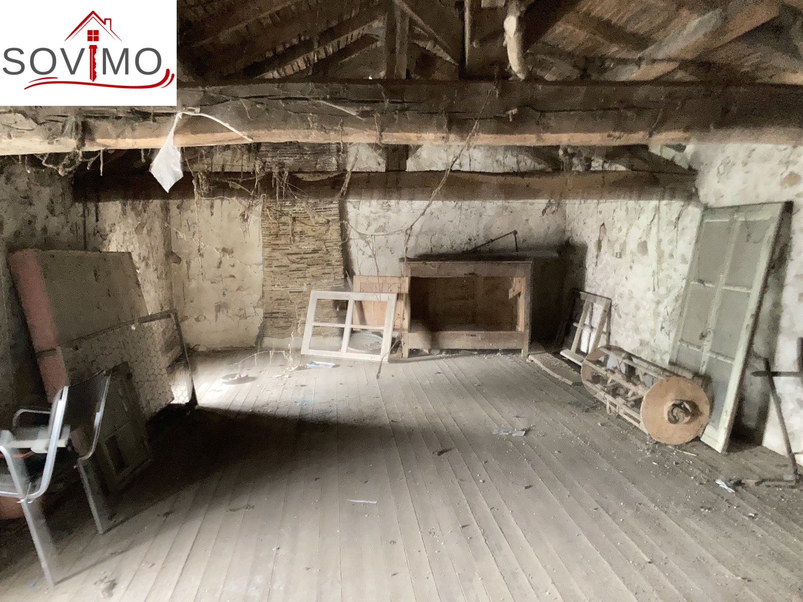 - Étage : palier, 2 chambres, salle de bain, W, Grenier aménageable de 40 m².