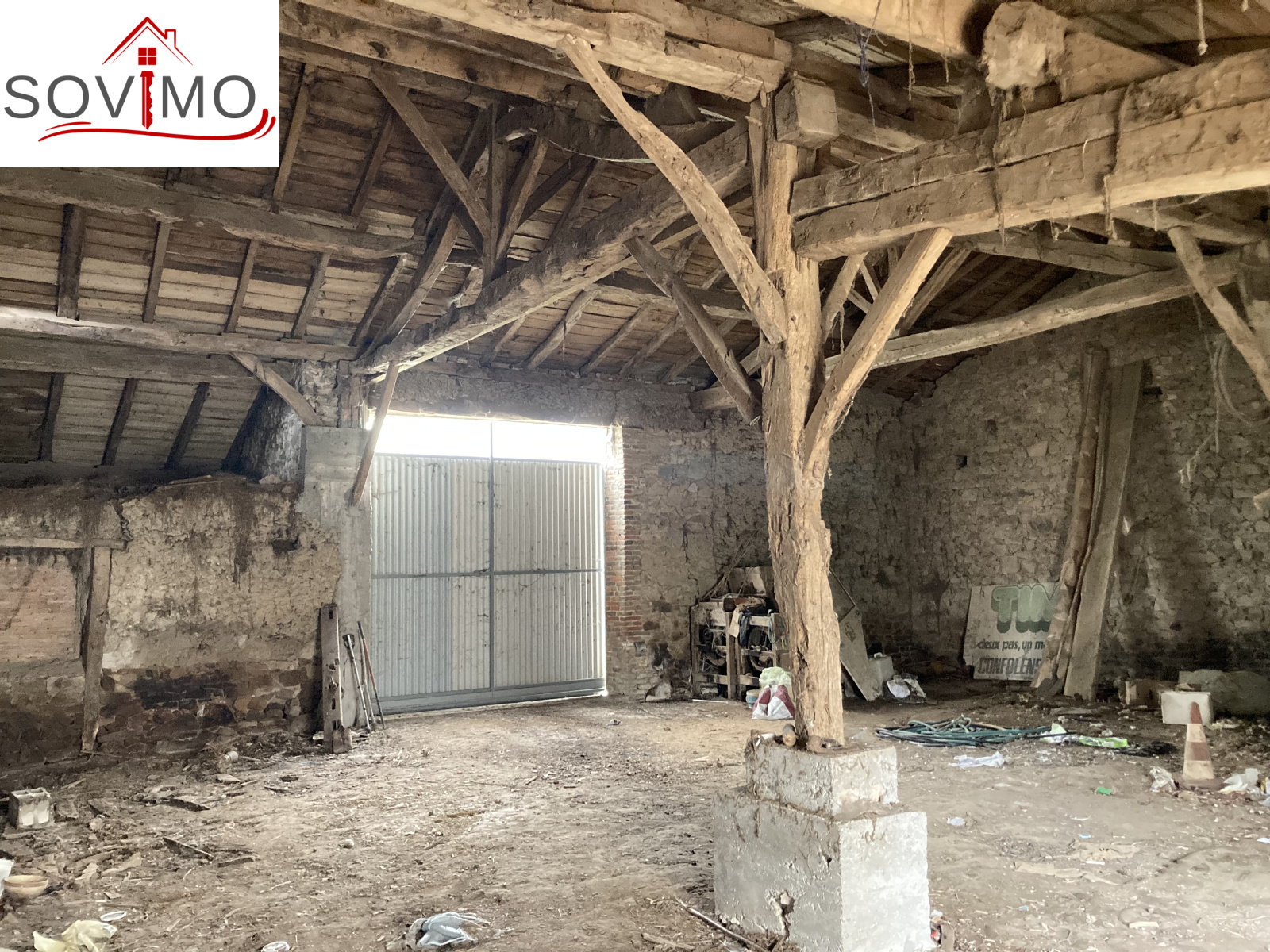Dépendances et extérieurs : Grange attenante de 145 m2, Grange indépendante de 120 m², hangar, débarras, petit toit, Puits avec motopompe, Cour et terrain attenant de 742 m²