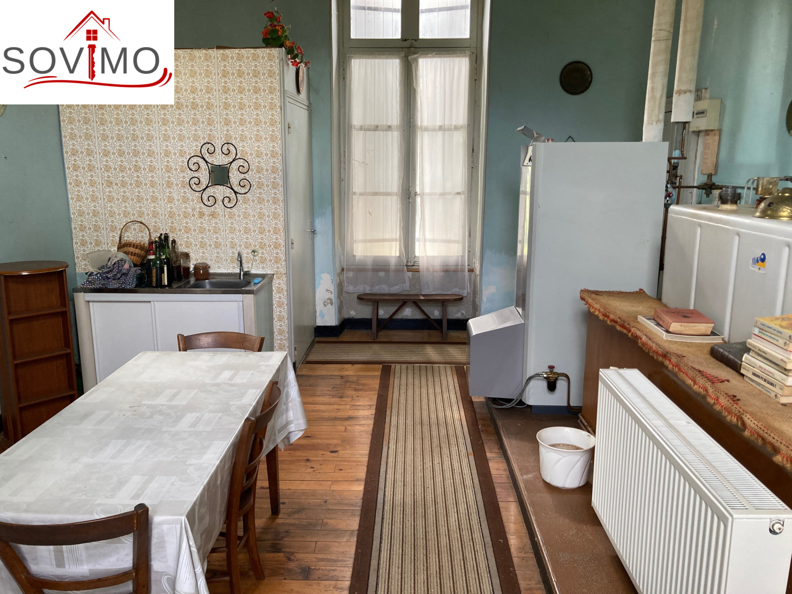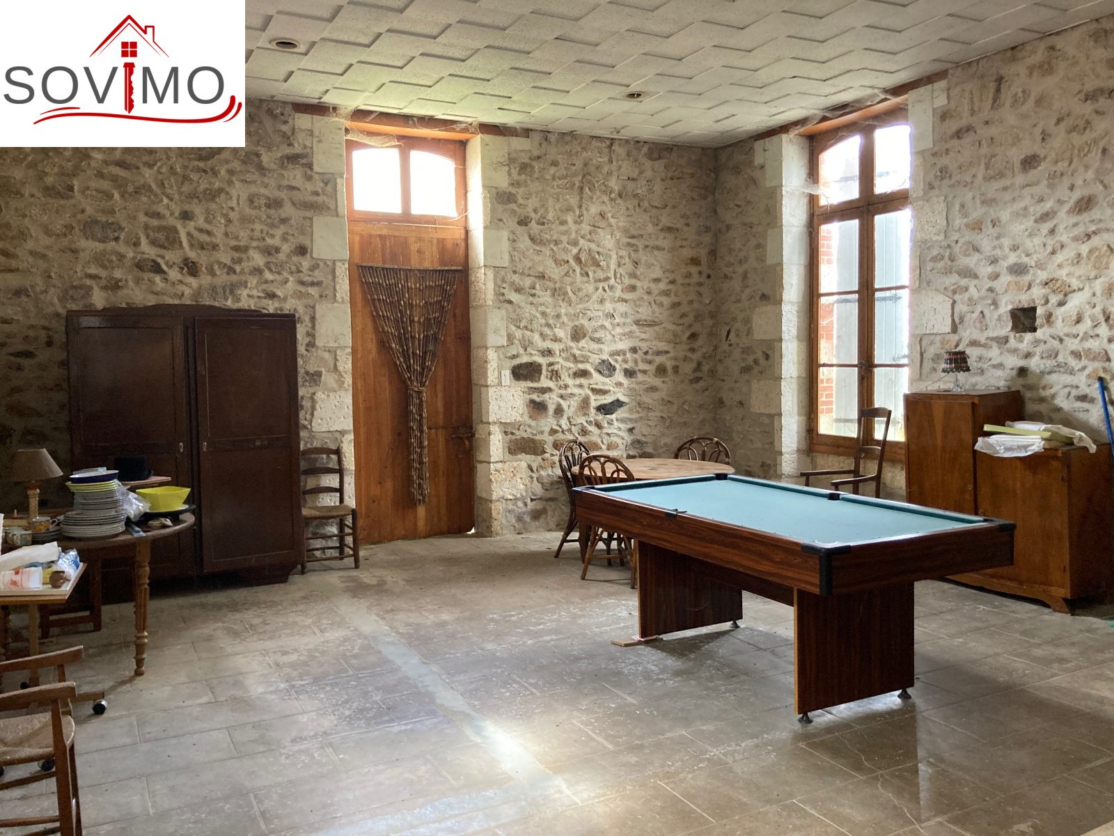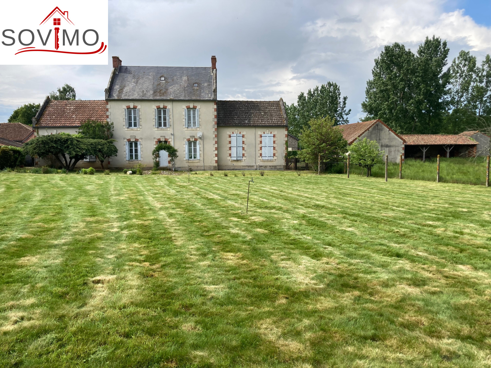 RÉF. 34495 : 216 000 euros H.A.I, ABZAC (16), dans un bourg, jolie demeure du XIXe siécle, dans son style de l'époque à réhabiliter, à usage d'habitation, 228 m2 env. utilisables composée au rez de chaussée : entrée/couloir, cuisine, arrière cuisine avec wc, séjour/salon (cheminée), 1 grande pièce, 1 chambre, au 1er étage : palier, salle d'eau, 3 chambres dont 1 avec dressing et wc, au 2nd étage : grenier aménageable de 60 m2 env.Cave, Chauf. fuel, tout à l'égout. Petit garage de 18 m2, 2 appentis de 60 et 28 m2, hangar, petit toit. Garage indépendant de 48 m2 avec 2 débarras de 34 et 16 m2. Terrain attenant avec puits, le tout sur 5292 m2.