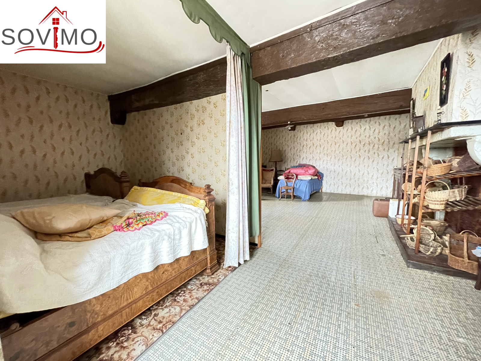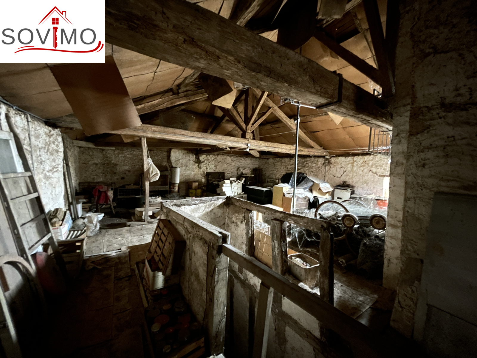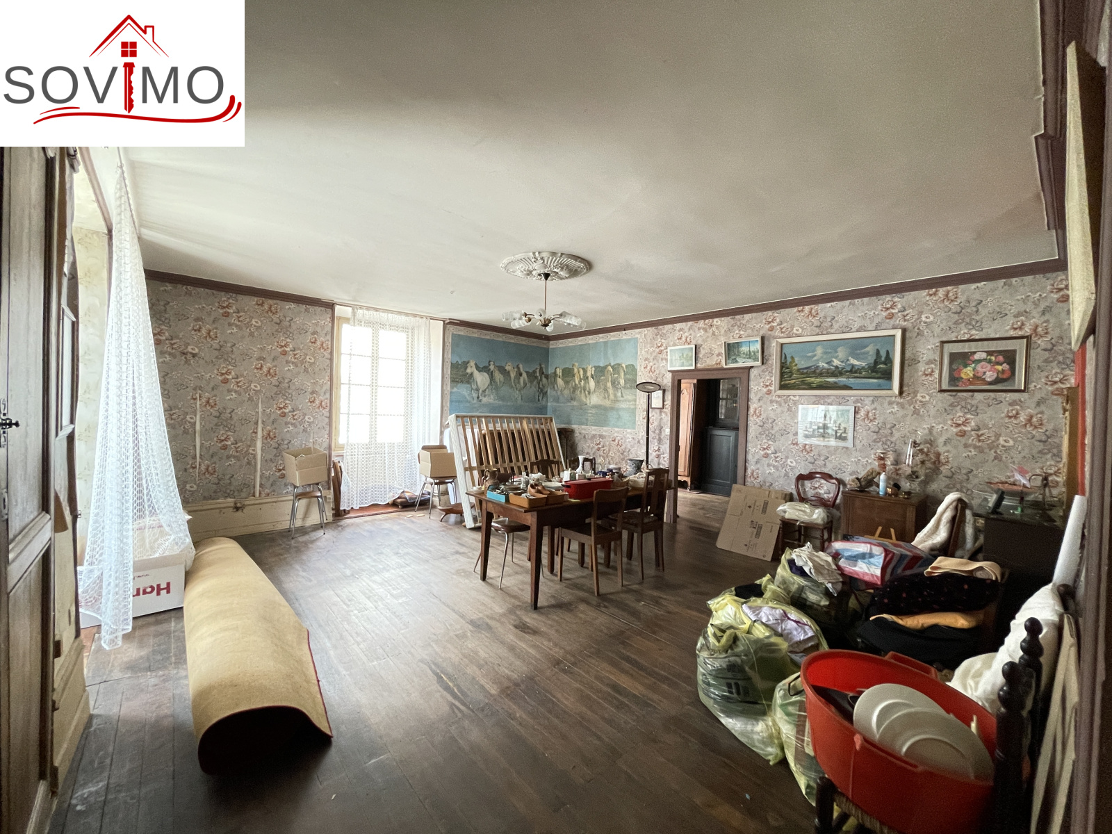 Réf. 34411 : 99 000 € HAI, Abzac (16), Centre bourg, Grande bâtisse mitoyenne datant de 1683 à usage d'habitation, à rafraîchir, 245 m2 environ utilisables comprenant au rez de chaussée : entrée, cuisine, salon/salle à manger (cheminée avec insert), dégagement, bureau, salle de bain, wc, remise de 7 m2, une cave de 16 m2, chaufferie de 15 m2, et une véranda de 32 m2, à l'étage : 5 chambres dont 1 avec salle d'eau, 1 bureau, au 2nd étage : grenier utilisable de 127 m2 env.., chauf. fuel, assainissement collectif, Jardin attenant avec garage de 39m2 environ, 2 ateliers de 22 m2 chacun et un petit toit, le tout sur 1134m2.