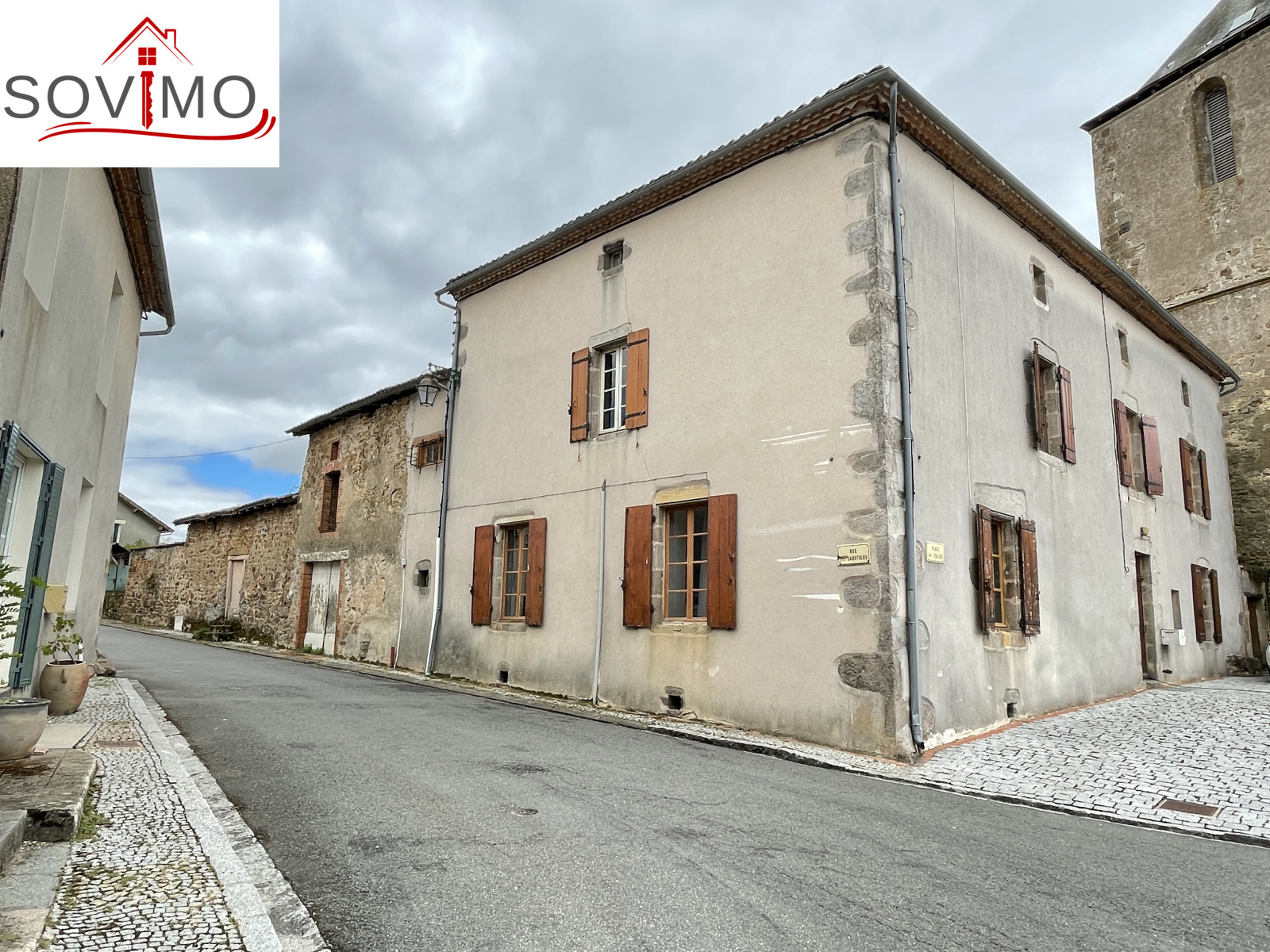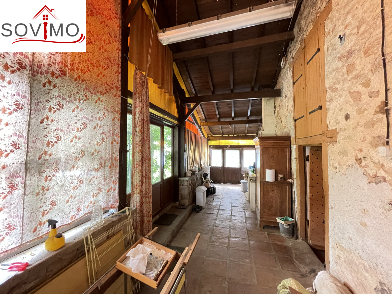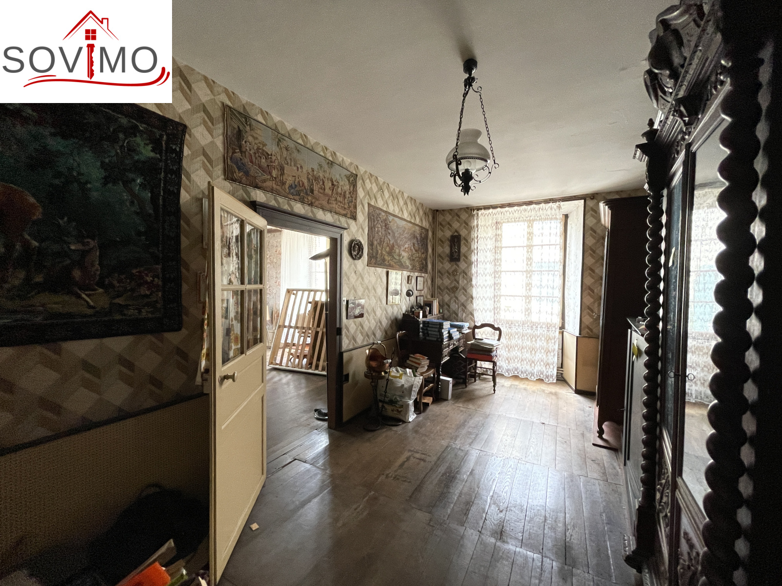 Réf. 34411 : 99 000 € HAI, Abzac (16), Centre bourg, Grande bâtisse mitoyenne datant de 1683 à usage d'habitation, à rafraîchir, 245 m2 environ utilisables comprenant au rez de chaussée : entrée, cuisine, salon/salle à manger (cheminée avec insert), dégagement, bureau, salle de bain, wc, remise de 7 m2, une cave de 16 m2, chaufferie de 15 m2, et une véranda de 32 m2, à l'étage : 5 chambres dont 1 avec salle d'eau, 1 bureau, au 2nd étage : grenier utilisable de 127 m2 env.., chauf. fuel, assainissement collectif, Jardin attenant avec garage de 39m2 environ, 2 ateliers de 22 m2 chacun et un petit toit, le tout sur 1134m2.