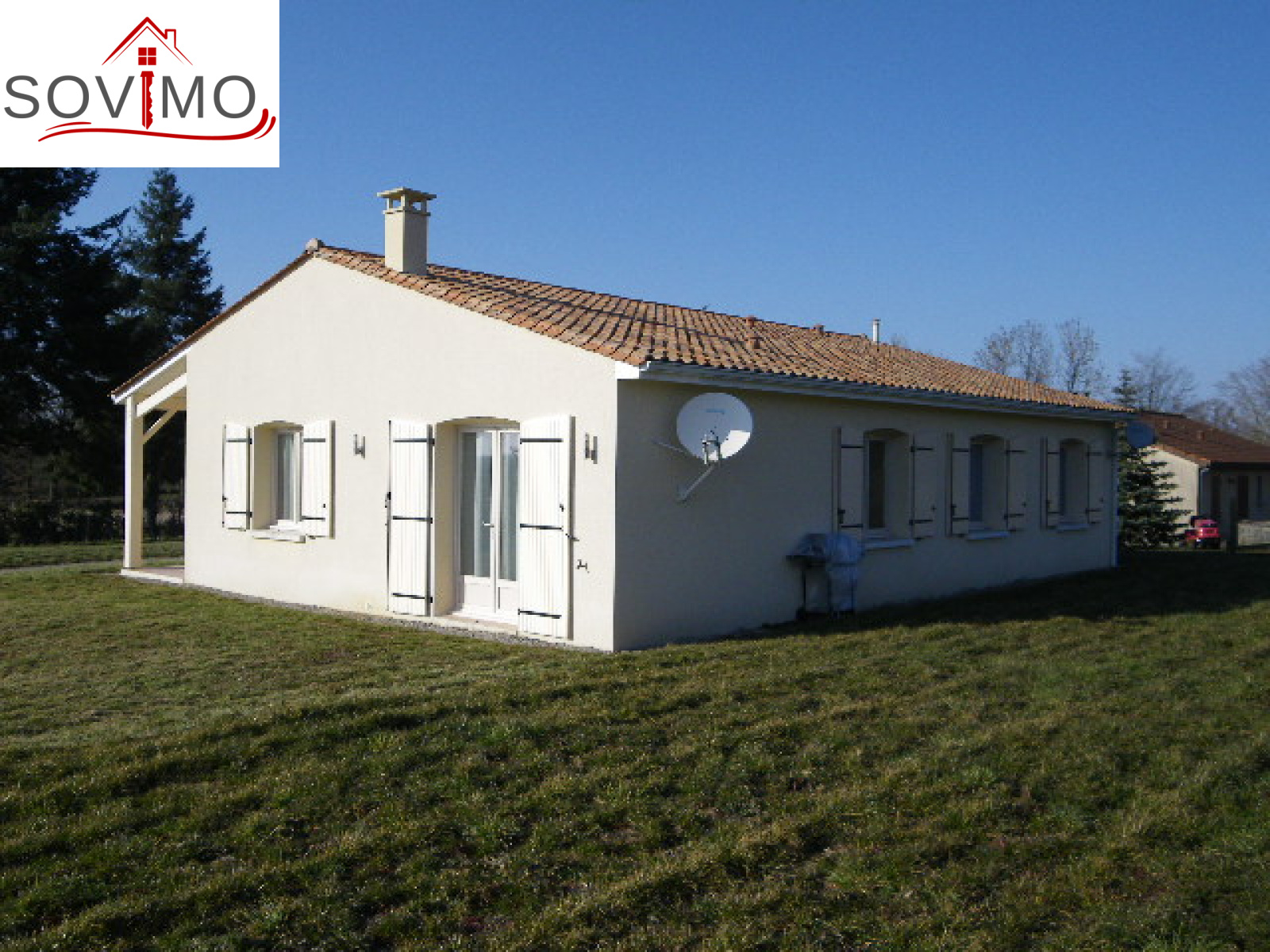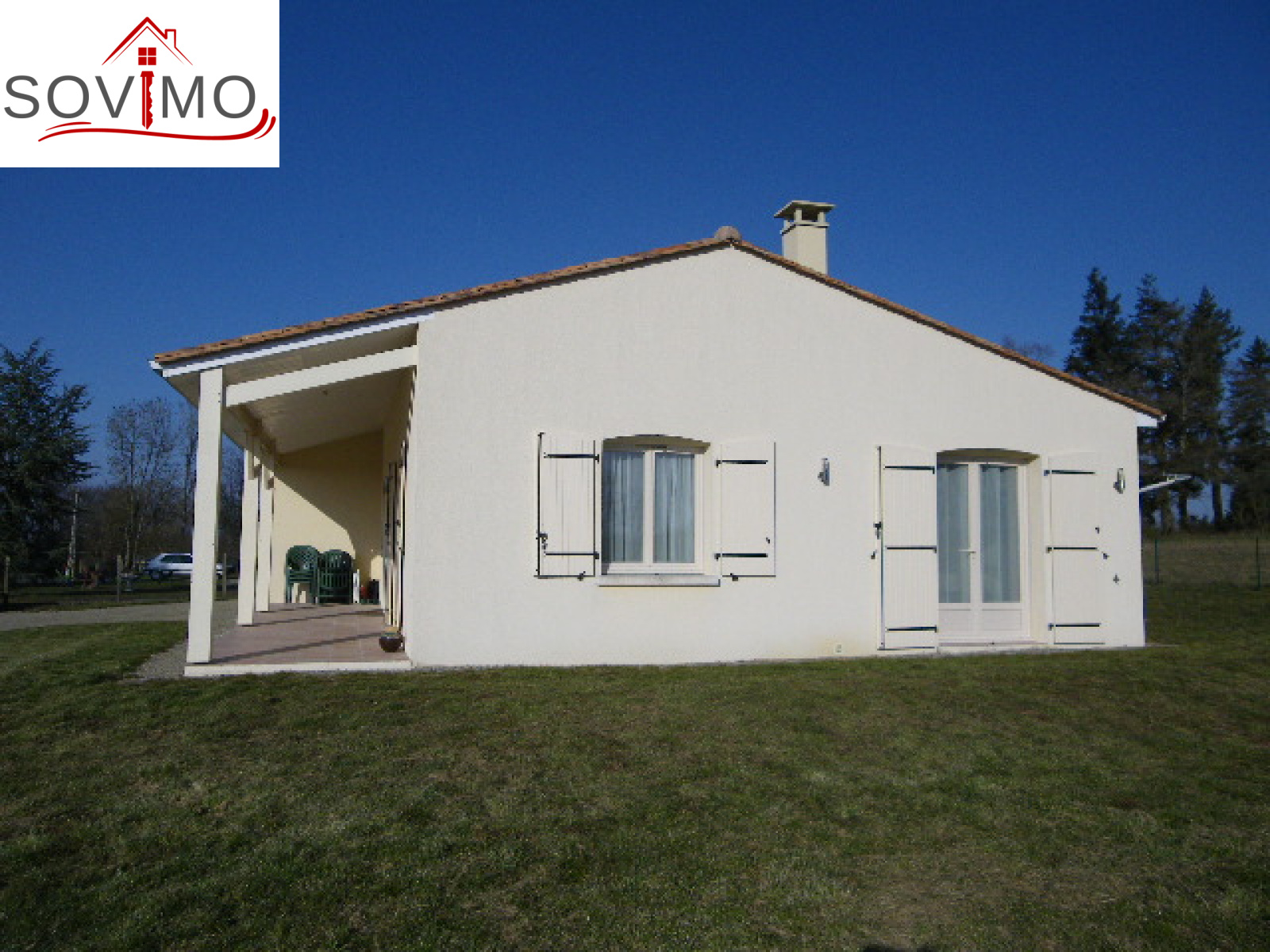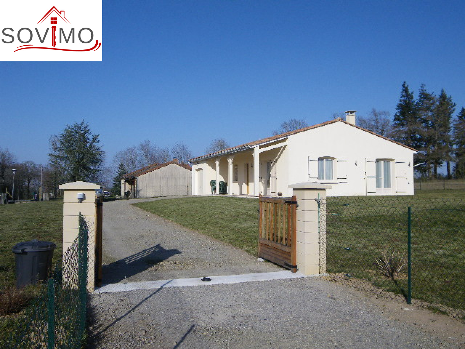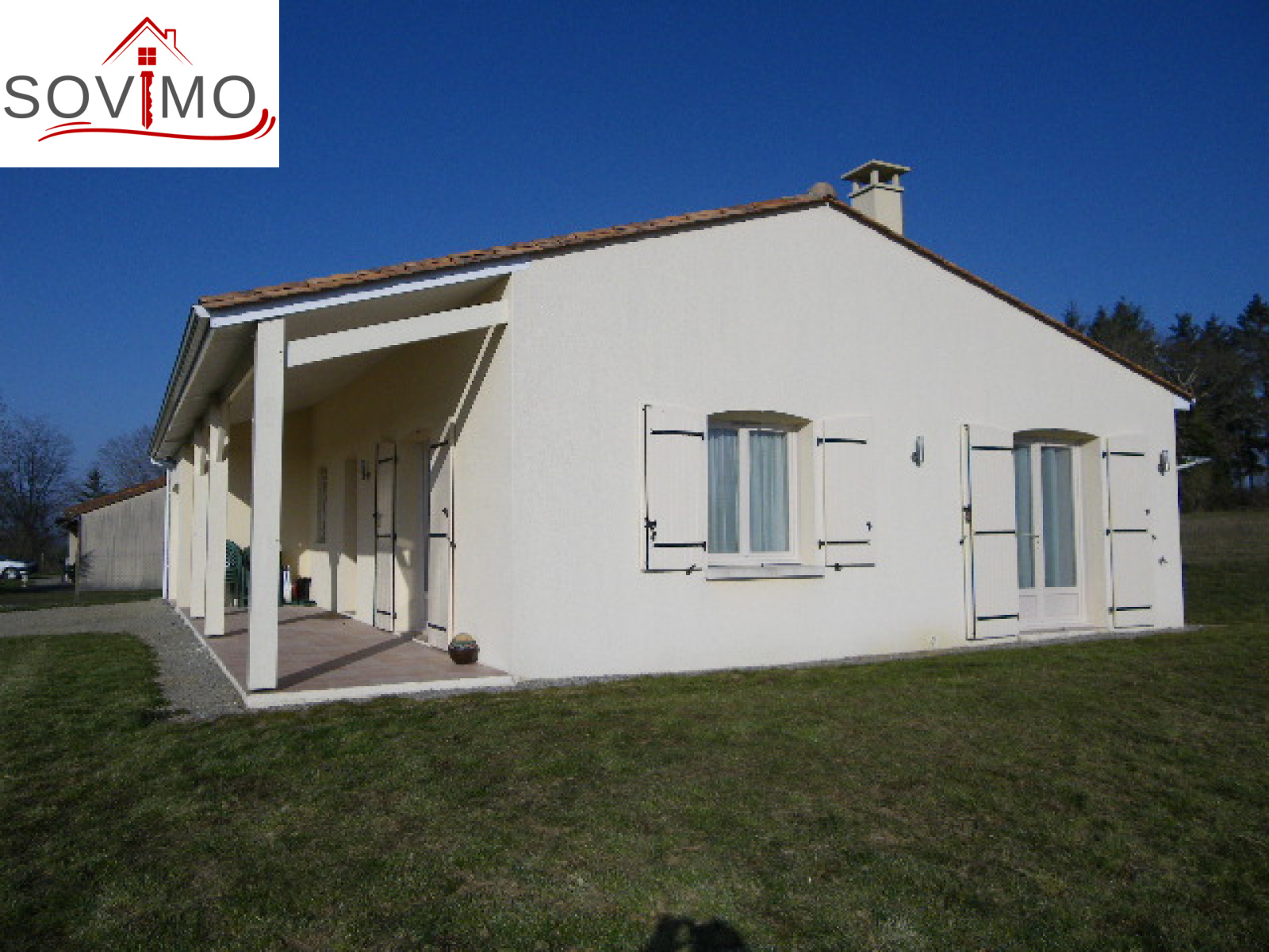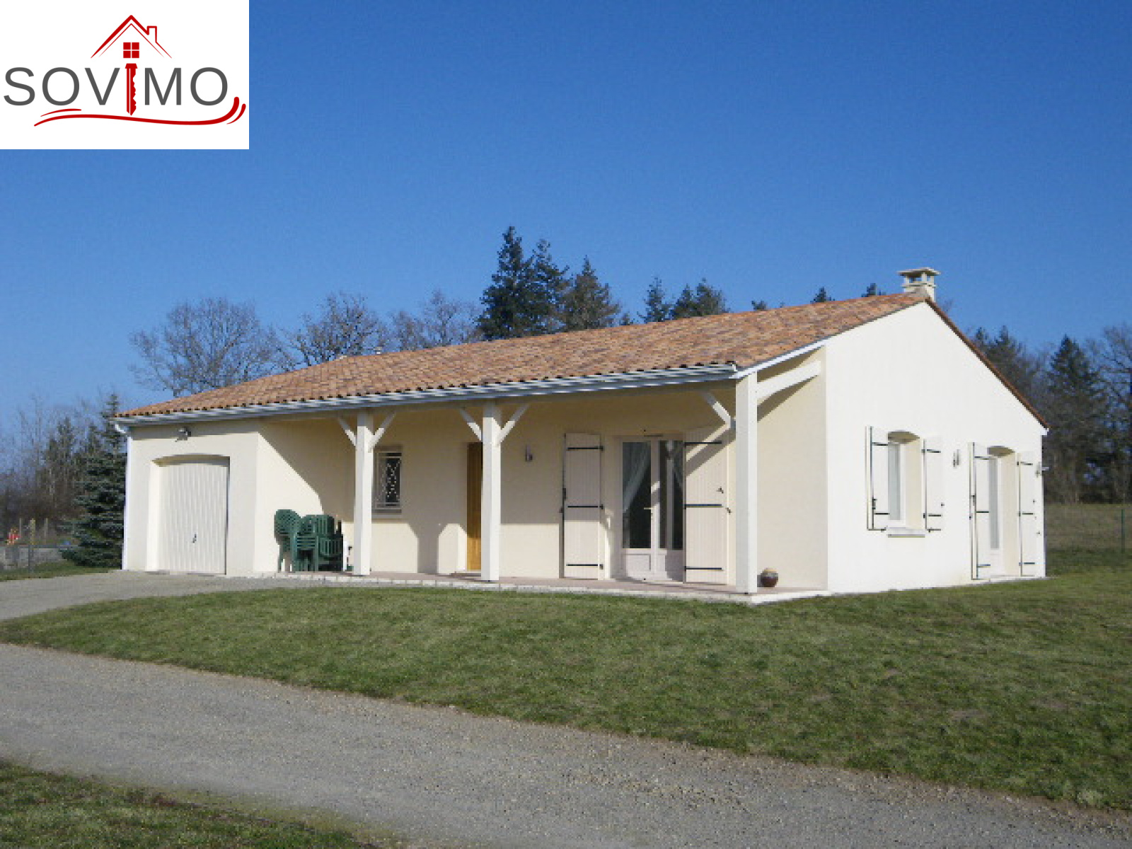 REF.33991 : 110 000 euros H.A.I, Bussieres Boffy (87), à 18.1 km de Confolens, dans un lotissement de village, plain pied de 2009 à usage d'habitation, 89 m² env. de surface habitable : cuisine aménagée équipée/séjour, salon, 2 chambres, salle de bain, wc, plancher chauffant électrique, garage 19 m2, , terrasse couverte 20 m2,fosse toutes eaux, terrain autour clos, le tout sur 1415 m2.