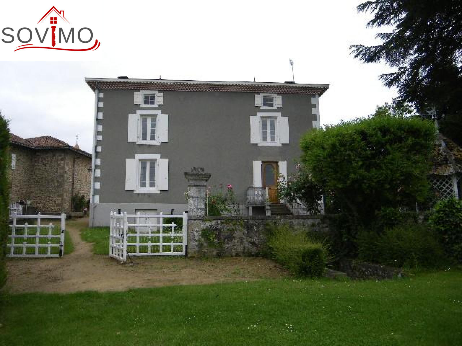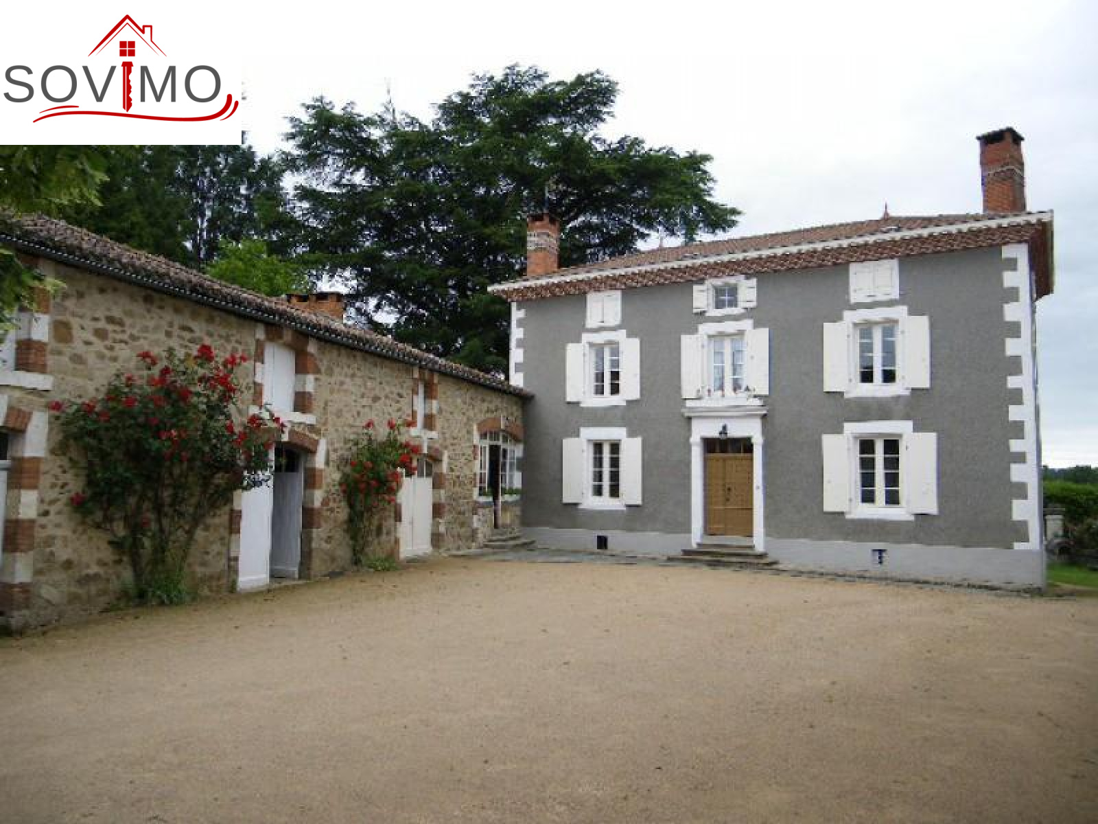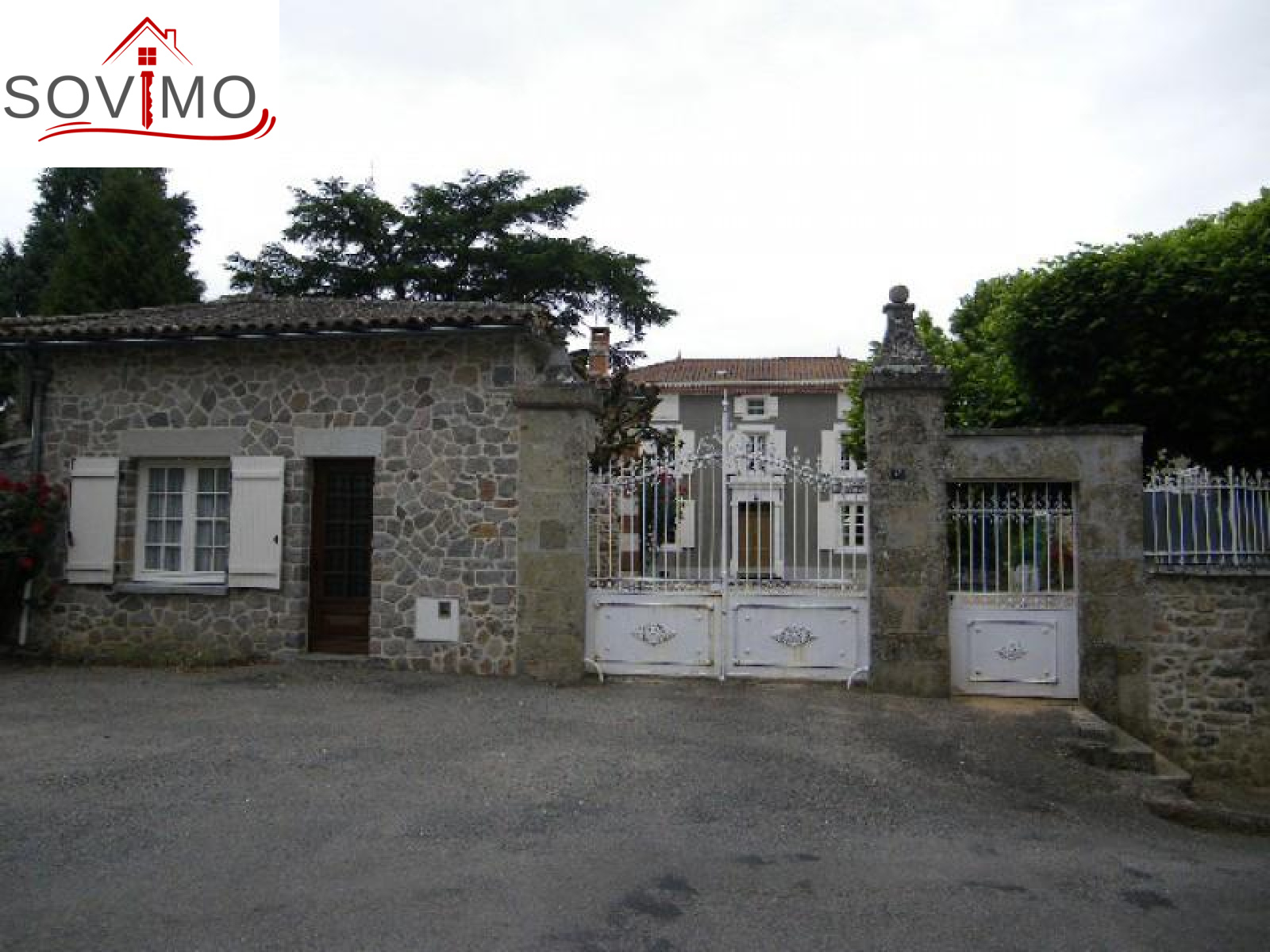 Réf. 26968 : 353 700 euros Ag.incl., Charente (16) (16), Avec vue exceptionnelle, belle Demeure du XIXè siècle avec communs, maison principale 192 m² env. utilisables : hall, cuisine amé.équip., arr.cuisine, séjour, sdb, wc, bureau, salon, étage : 4 chambres, sdb/wc, chauf. fuel, grenier amé., Gite 70 m² env. : cuisine/séjour, sd'eau, wc, 2 chambres, chauf. élec., tt égout, diverses dépendances : garages, écuries, buanderie, ancienne maison : séjour, 1 chambre + douche, puits avec motopompe, terrasse, cour intérieure, parc boisé + prairie, le tout sur 1Ha 78a env.