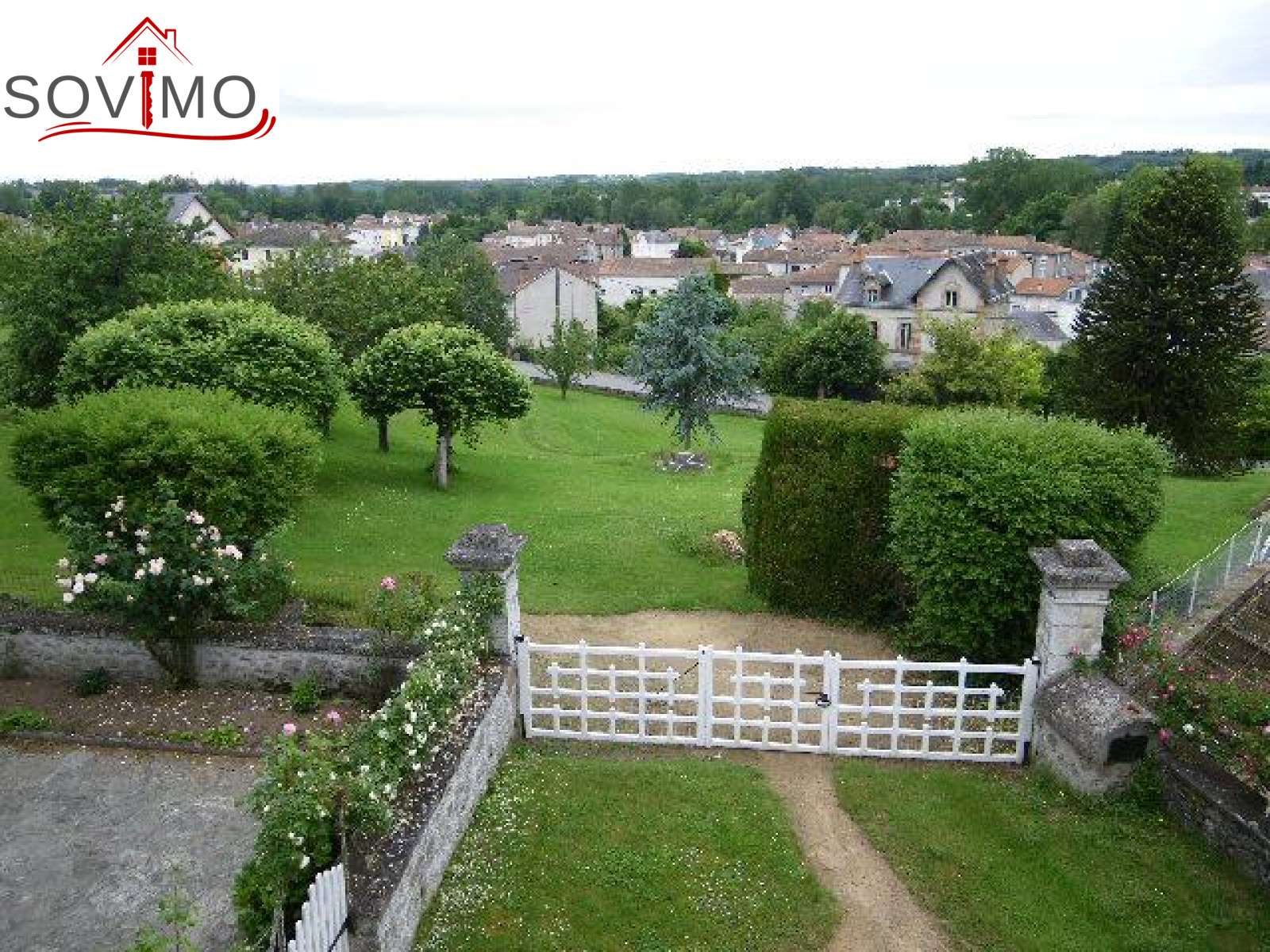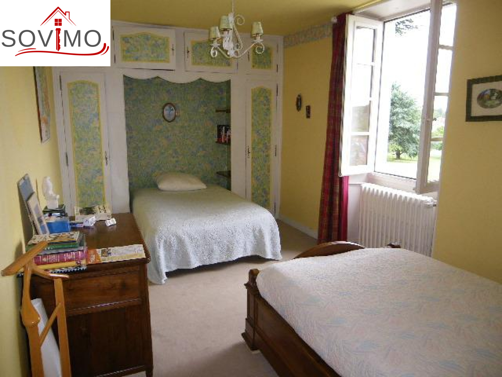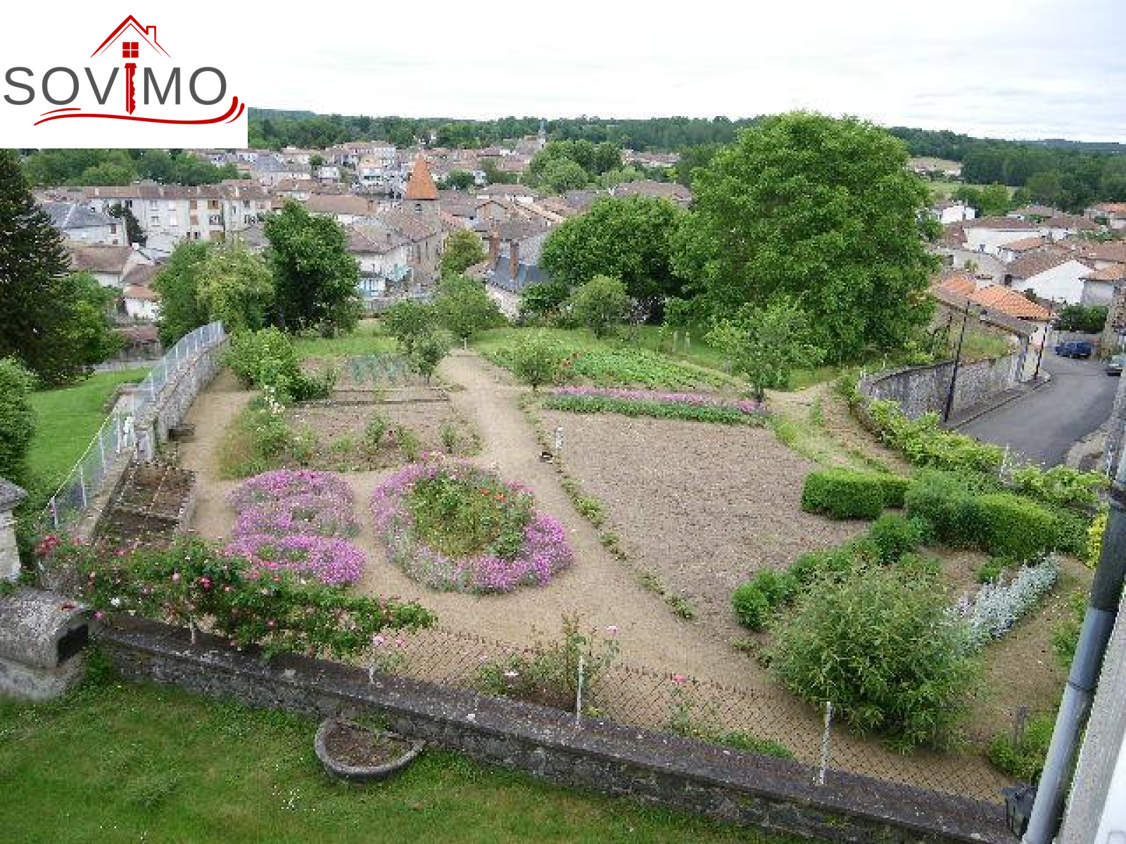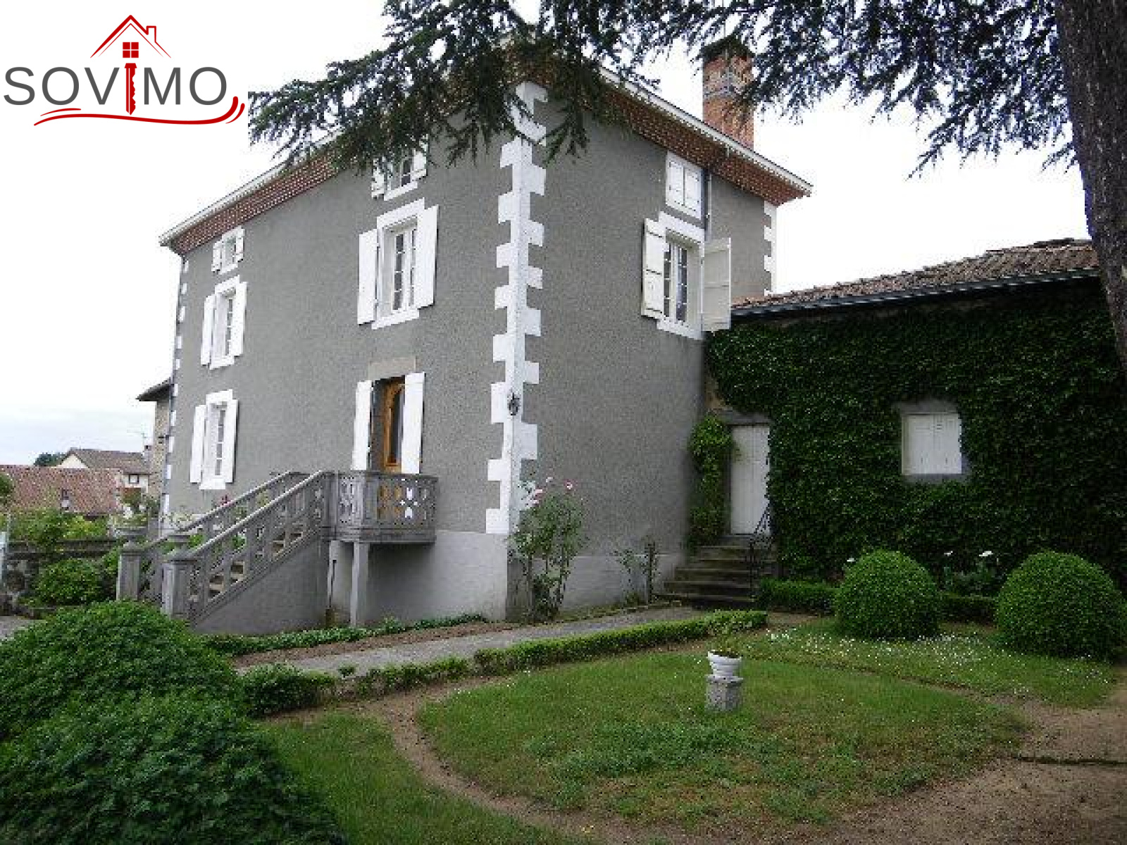 Réf. 26968 : 353 700 euros Ag.incl., Charente (16) (16), Avec vue exceptionnelle, belle Demeure du XIXè siècle avec communs, maison principale 192 m² env. utilisables : hall, cuisine amé.équip., arr.cuisine, séjour, sdb, wc, bureau, salon, étage : 4 chambres, sdb/wc, chauf. fuel, grenier amé., Gite 70 m² env. : cuisine/séjour, sd'eau, wc, 2 chambres, chauf. élec., tt égout, diverses dépendances : garages, écuries, buanderie, ancienne maison : séjour, 1 chambre + douche, puits avec motopompe, terrasse, cour intérieure, parc boisé + prairie, le tout sur 1Ha 78a env.