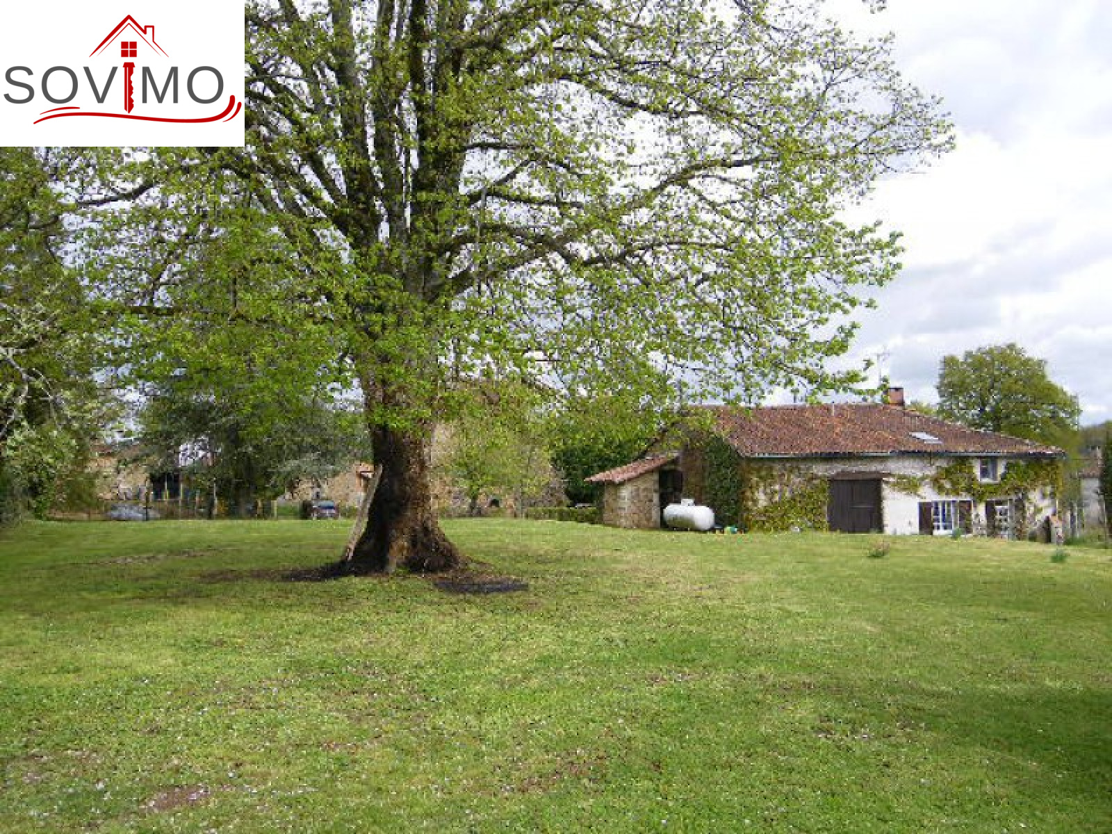 Réf. 27664 : Baisse 120 500 euros Ag. incl, Charente (16), charmante maison de campagne indépendante, 125 m² env. utilisables : cuisine aménagée équipée, salon/séjour, wc, étage : palier, 2 chambres, sdb/wc, chauf.gaz bonbonne, grange attenante avec cave, grange en face, ancienne fosse septique, terrain attenant, le tout sur 2292 m² env.