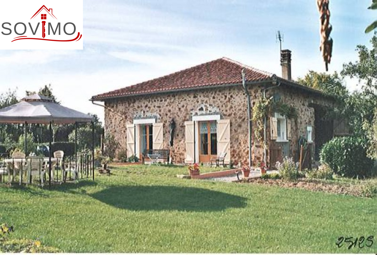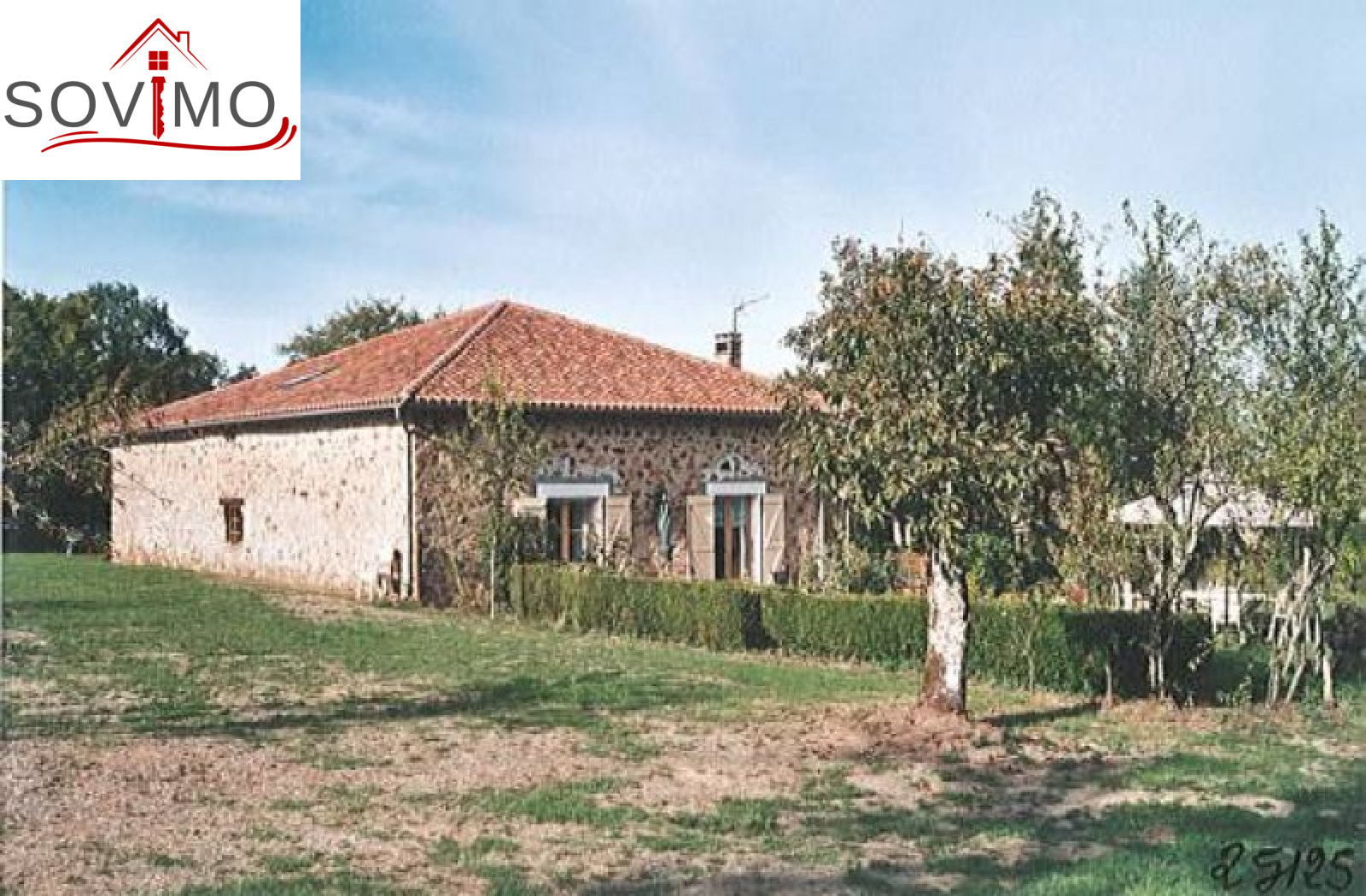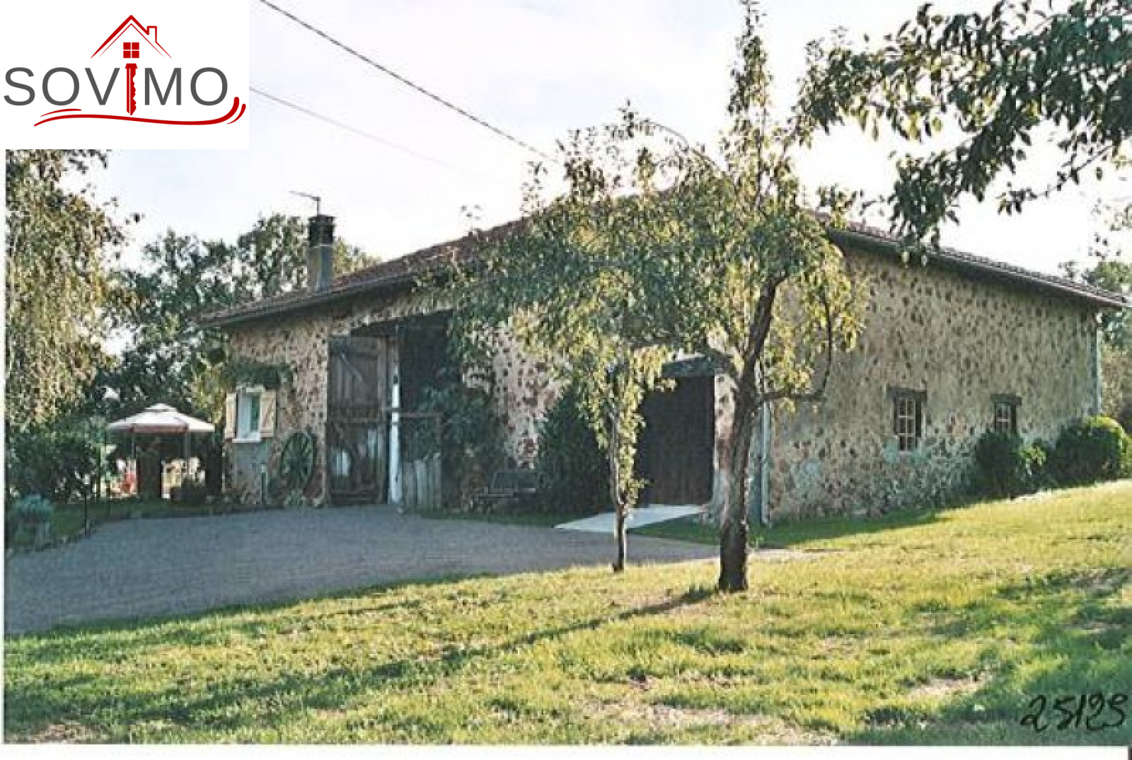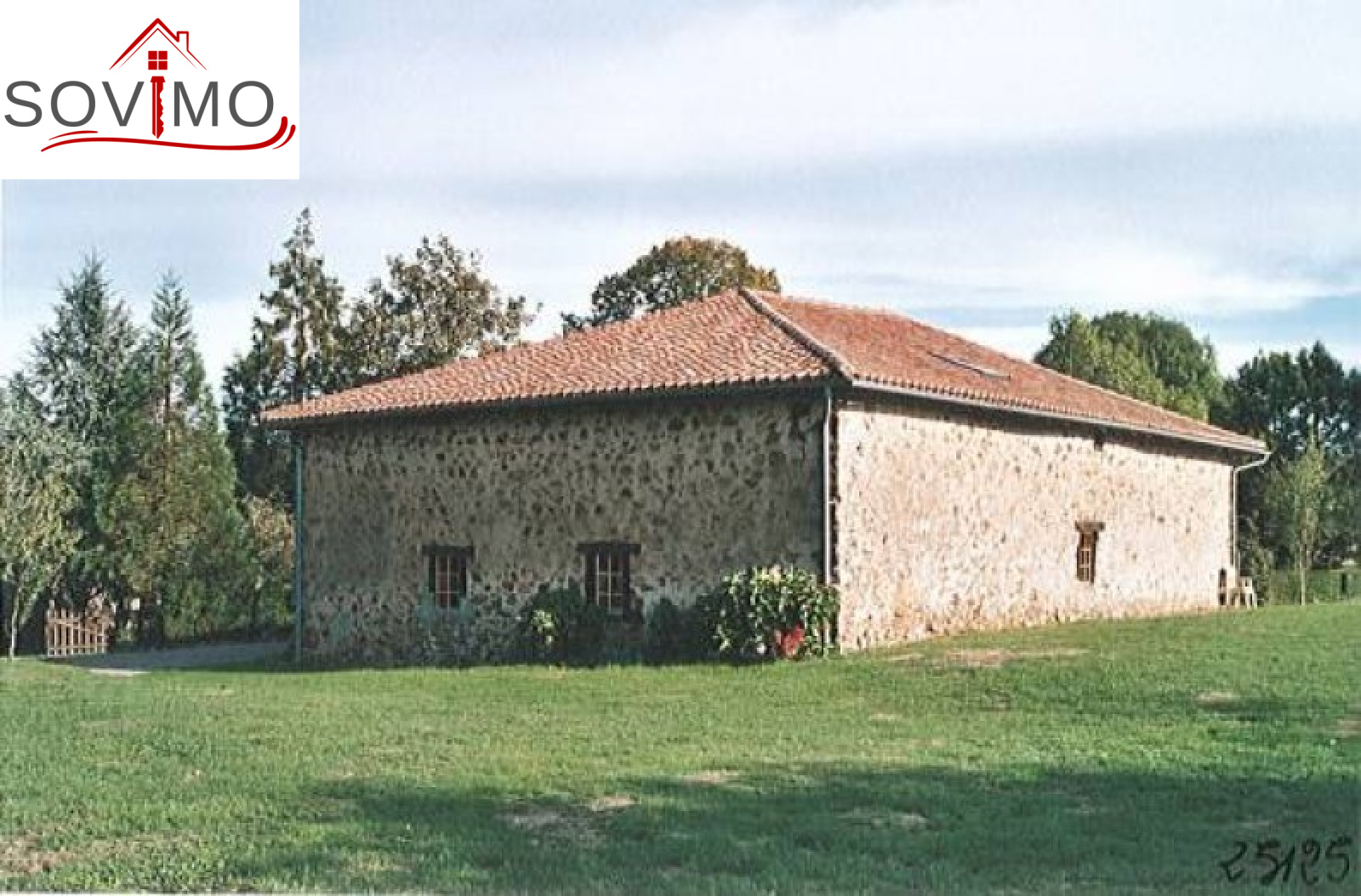 Réf. 25125 : 162 000 E (1 063 000 Frs) FAI, 10 kms Sud Confolens, grange restaurée, en pierre apparentes, 100 m² env hab : cuisine aménagée/séjour, salon, buanderie, dégagement, salle de bain, wc, étage : 2 chambres, couloir, salle d'eau, wc, chauf. élect., garage, étable, fosse septique, terrain clos et arboré, le tout sur 2814 m² env.