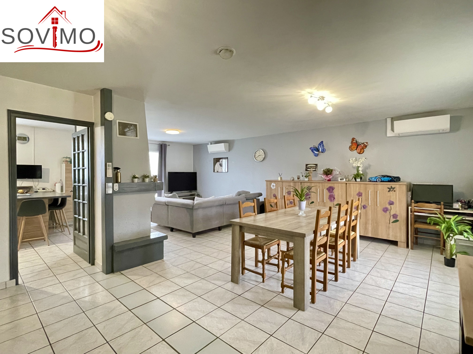 - Au rez-de-chaussée surélevé : Porche d’entrée, belle pièce de vie lumineuse avec cuisine aménagée et équipée ouverte sur le salon/séjour, agrémenté d’un insert, couloir, buanderie, salle d’eau, WC indépendant, 3 chambres.
