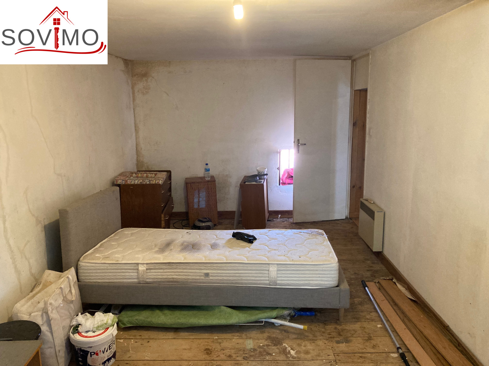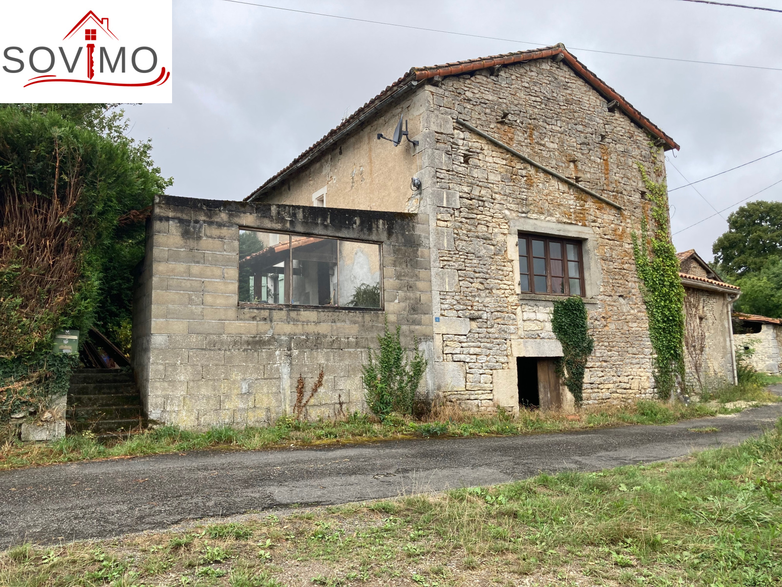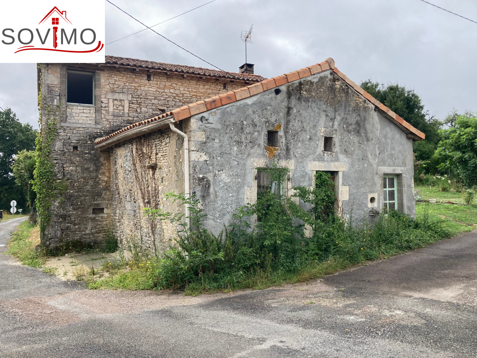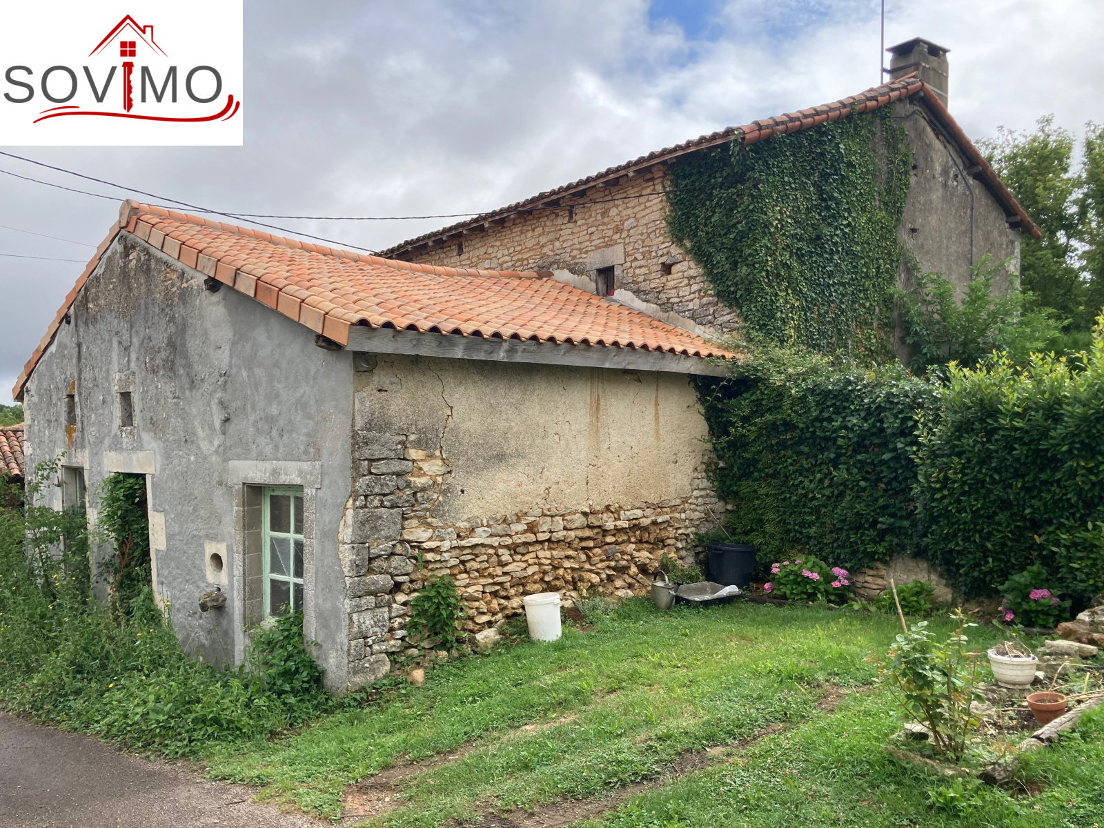 RÉF. 34516 : 36 300 euros H.A.I, Secteur Champagne Mouton (16), dans un hameau, maison de campagne indépendante à rénover, sans vis à vis, à usage d'habitation, 108 m2 env. utilisables composée au rez de chaussée : entrée, cuisine aménagée/séjour/salon (cheminée avec insert), salle de bain, wc, à l'étage : palier, 3 chambres. Ancienne fosse septique, Chauf. électrique + PAC air/air réversible. Cave de 19 m2, cellier de 28 m2 avec grenier, hangar en bois indépendant de 25 m2 (mauvais état), terrain attenant, le tout sur 618 m2.