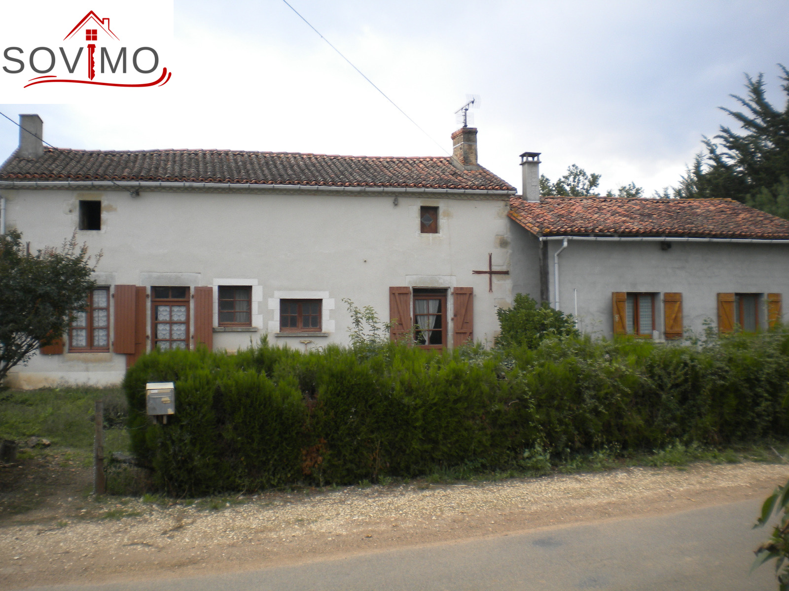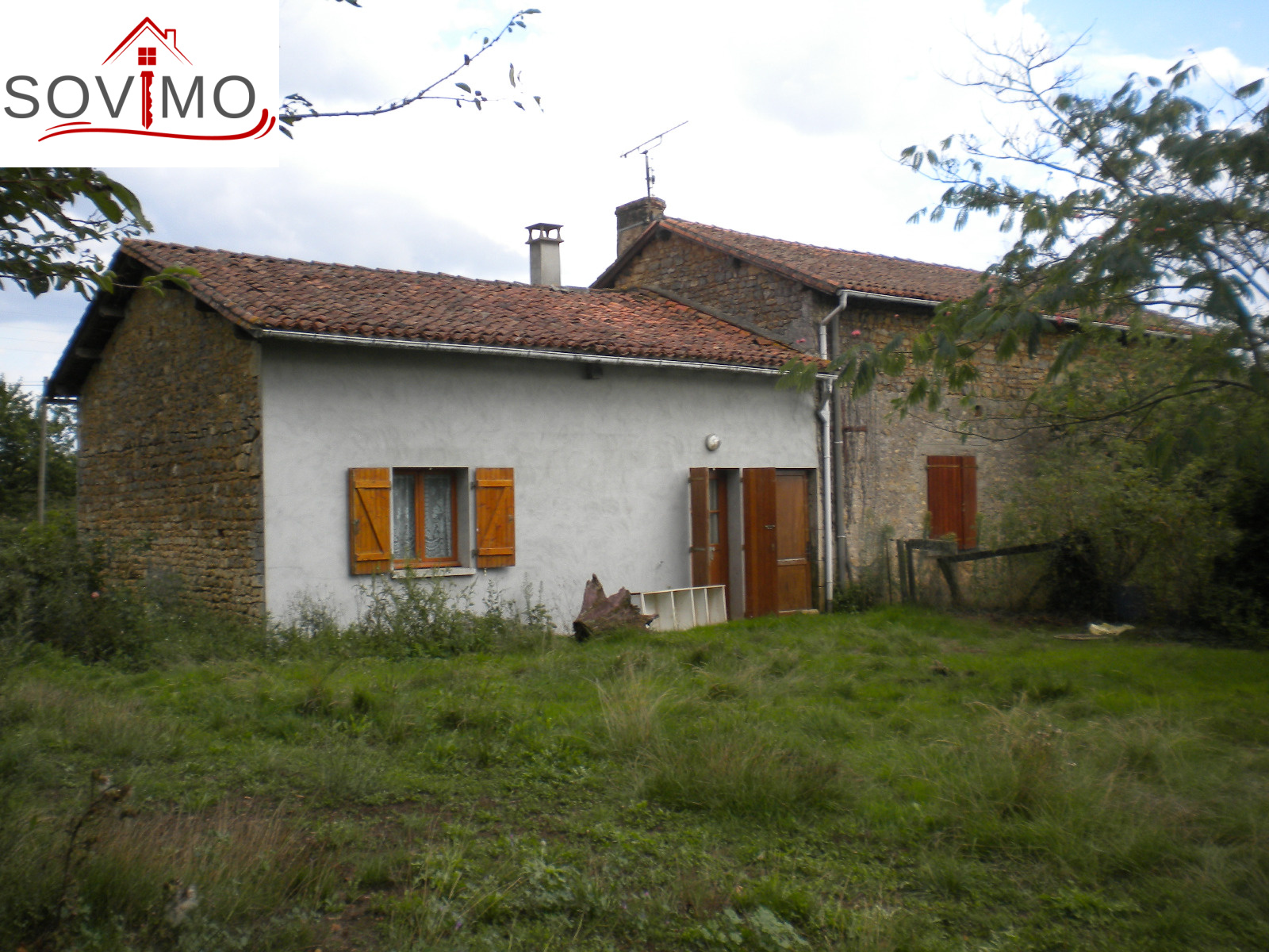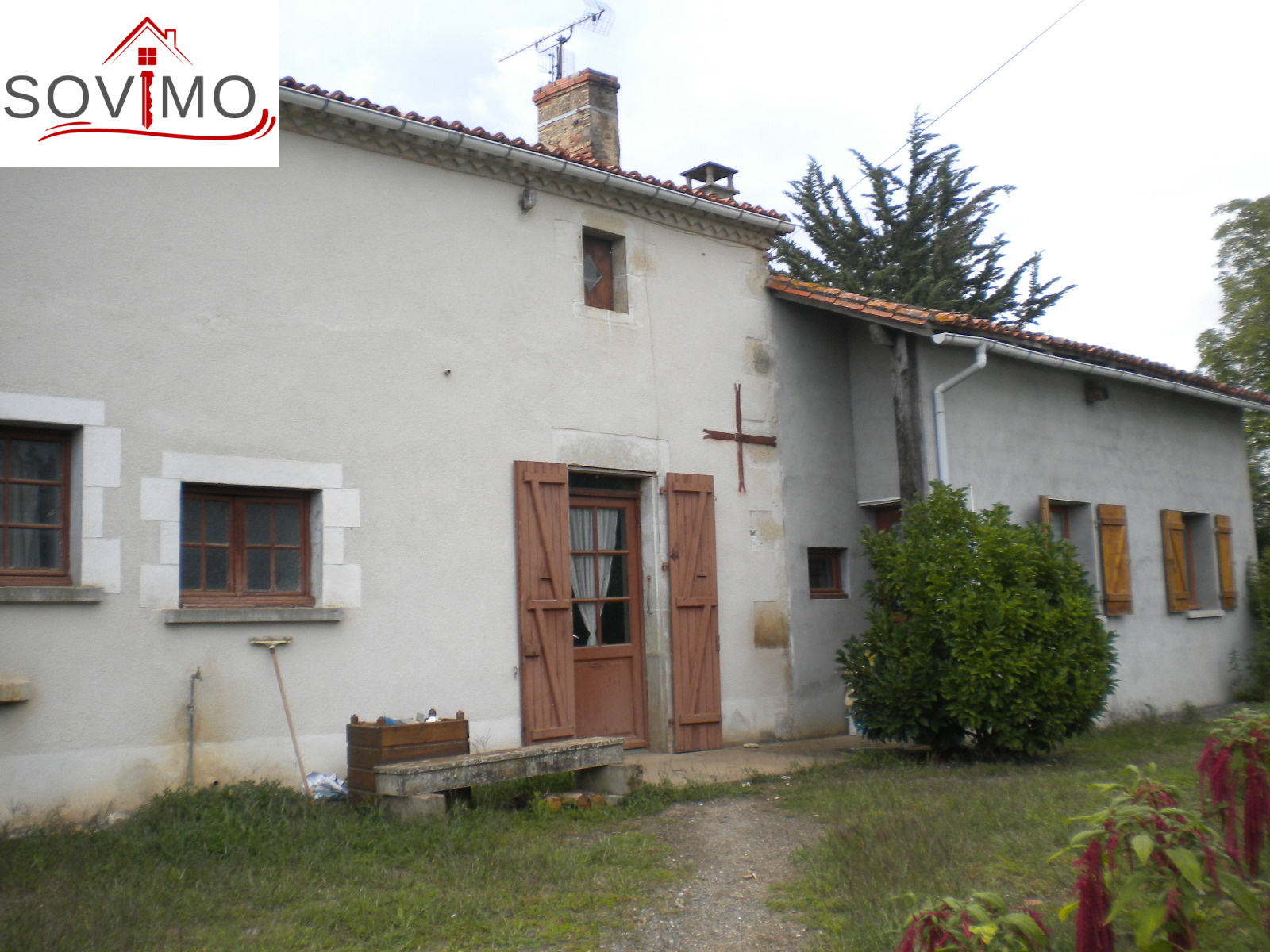 REF 33565 : 35 000 euros ag. inclus, secteur Champagne Mouton, charmante maison de campagne de 110m2 env. à rafraichir, avec du potentiel, cuisine/salle à manger, salon, salle d'eau/wc, 4 chambres, grenier aménageable, pas de chauffage, assainissement à mettre aux normes, électricité et plomberie à revoir, terrain attenant de 2914 m2 env, avec puits et hangar.