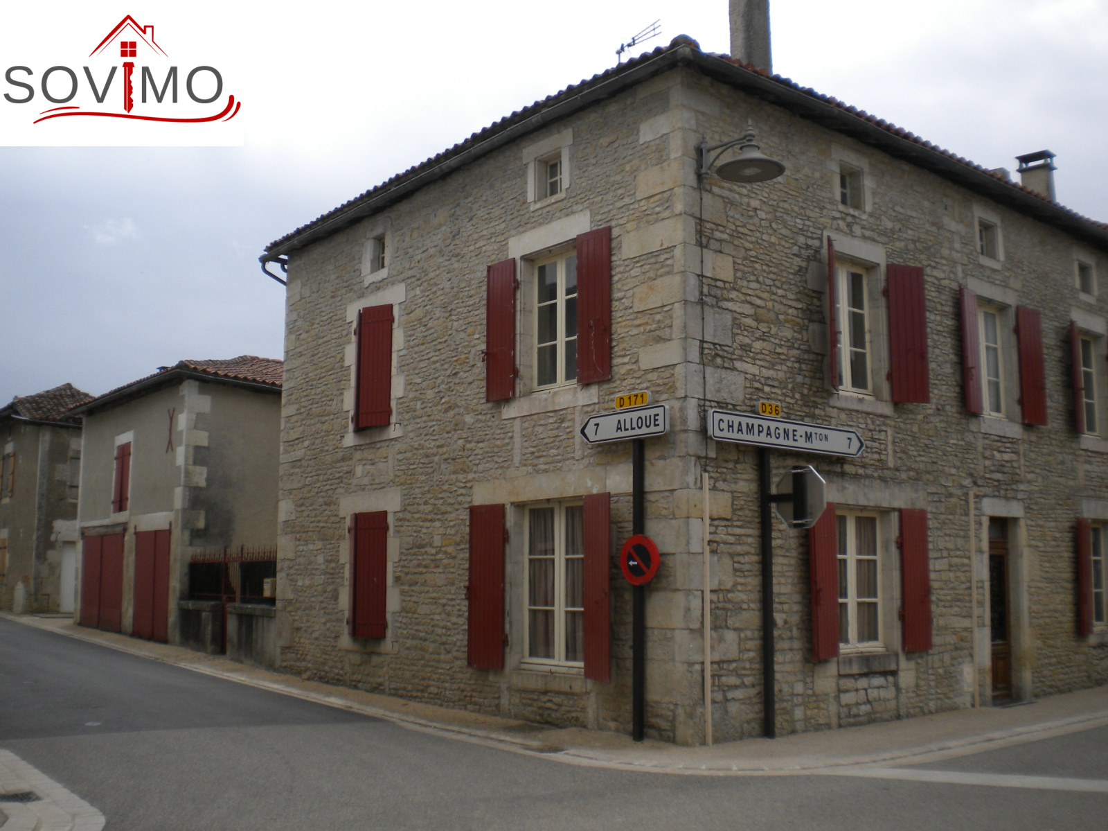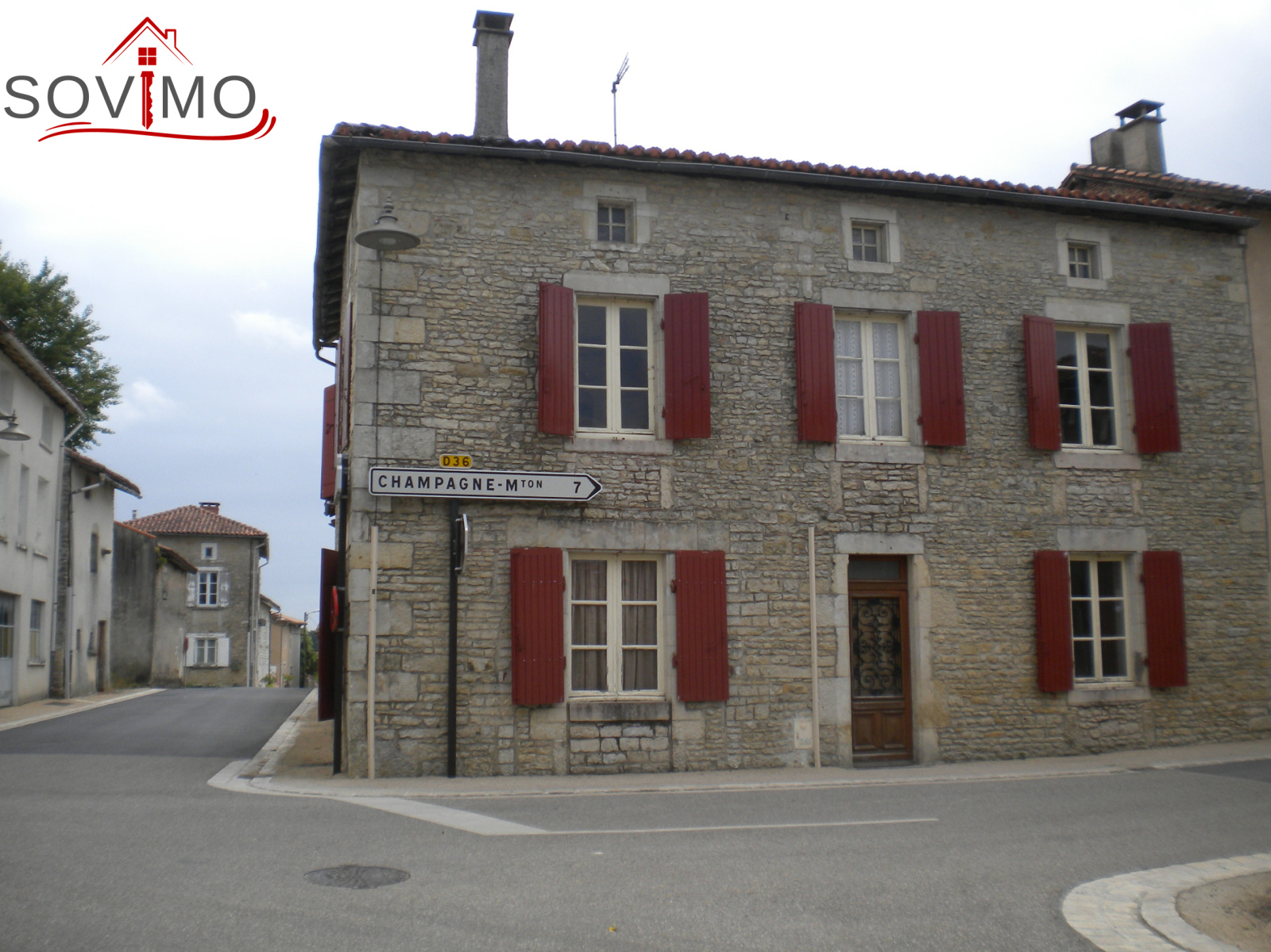 REF. 33793 : 33 000 euros H.Ag.Incl., proche Champagne Mouton (16), maison de village, 170 m2 env. utilisables : entrée, cuisine, petit salon, salon/salle à manger, à l’étage : palier, 5 chambres, salle d’eau, wc, couloir, grenier au dessus, cave/chaufferie, chauf. fuel, tout à l'égout, bâtiment indépendant à usage de garage 18 m2 et bucher 8 m2, grenier au dessus, hangar 20 m2, terrain attenant de 362 m2 et jardin séparé de 264 m2, le tout sur 626 m2.
