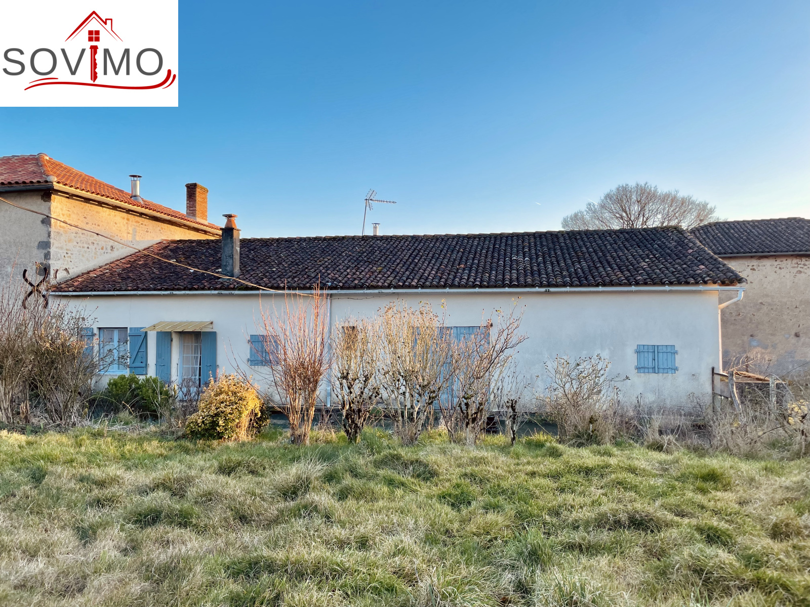 REF. 34717 : 77 000 euros HAI, Epenède (16), dans un hameau, longère mitoyenne, à rafraichir, à usage d'habitation, 64 m2 env. utilisables, composée au rez de chaussée : Cuisine, remise, séjour (poêle à bois), salle d'eau/wc, 2 chambres, grenier mansardé à usage de stockage de 70 m2. Chauf. poêle à bois, fosse septique ancienne. Grange attenant de 88 m2 avec étable et cave de 8 m2, petits toits. Jardin attenant avec puits et verger, le tout sur 3863 m2.