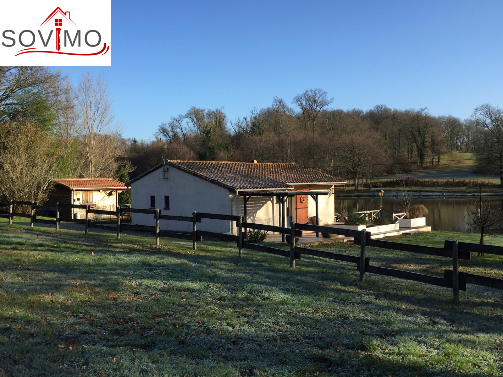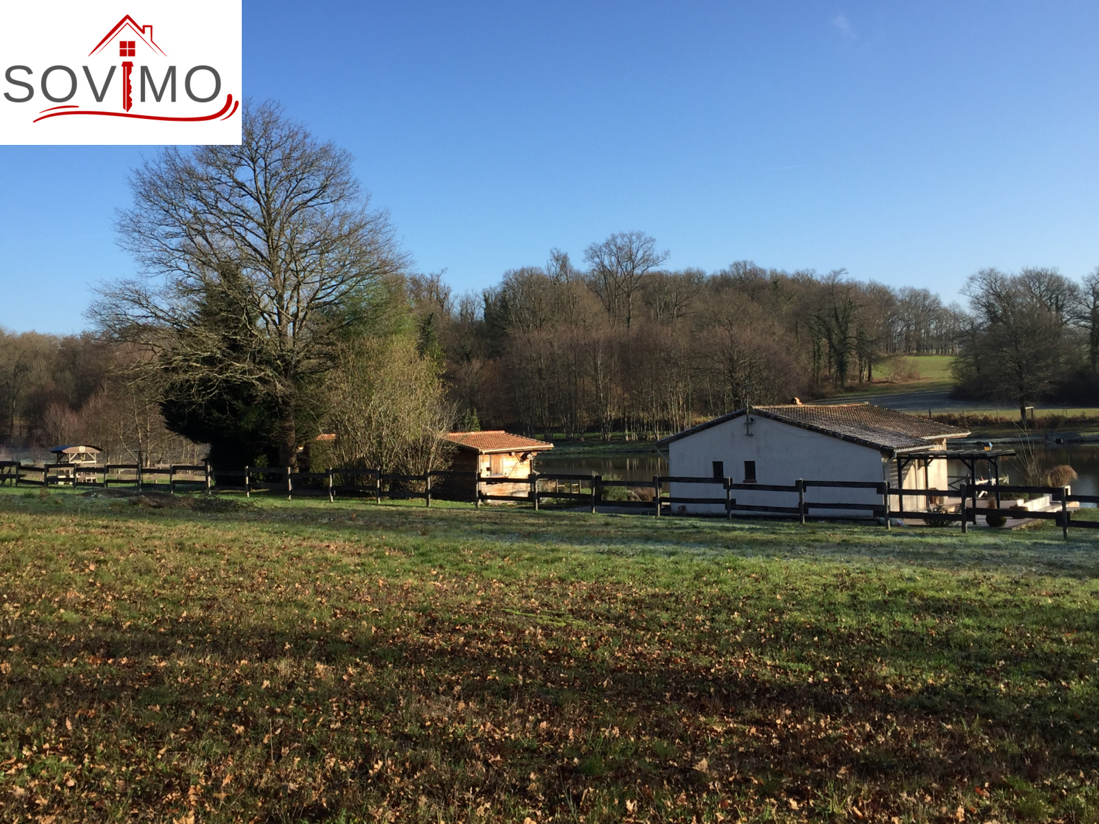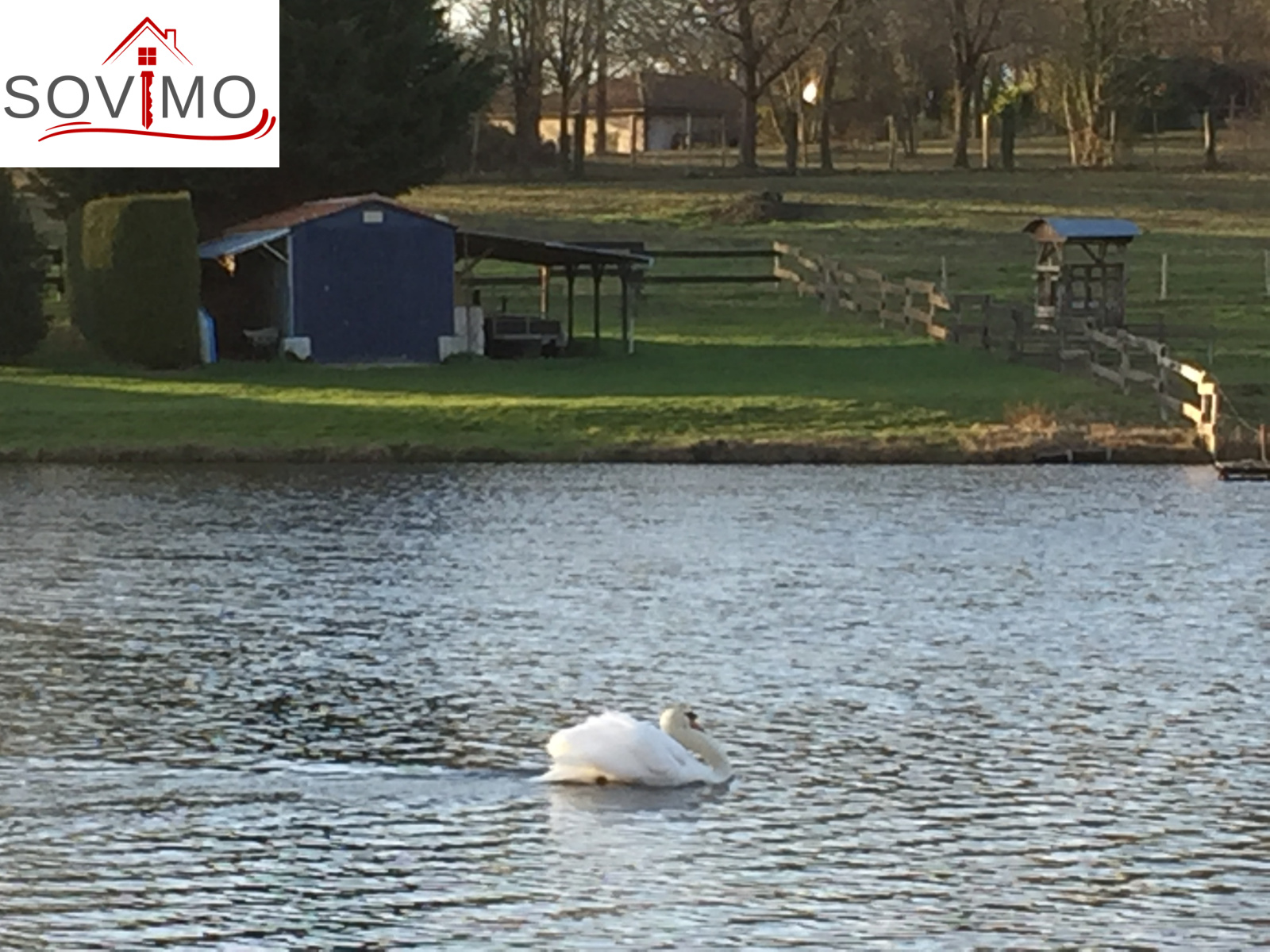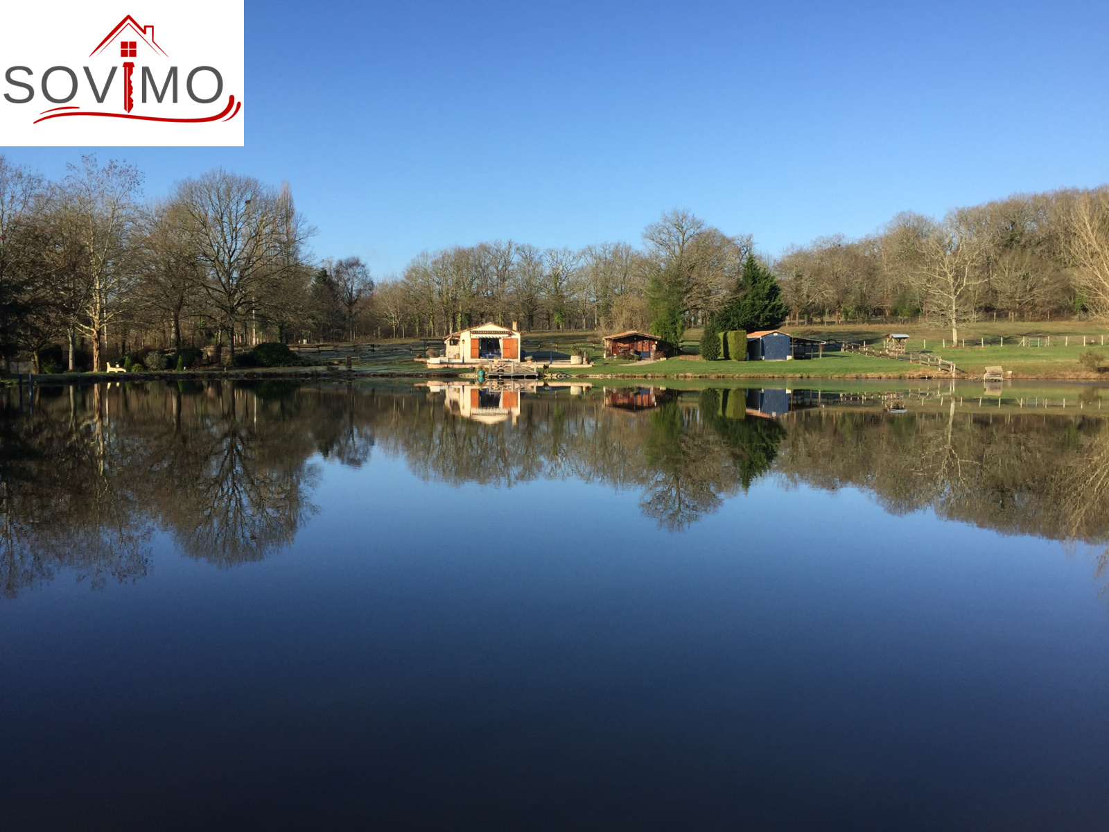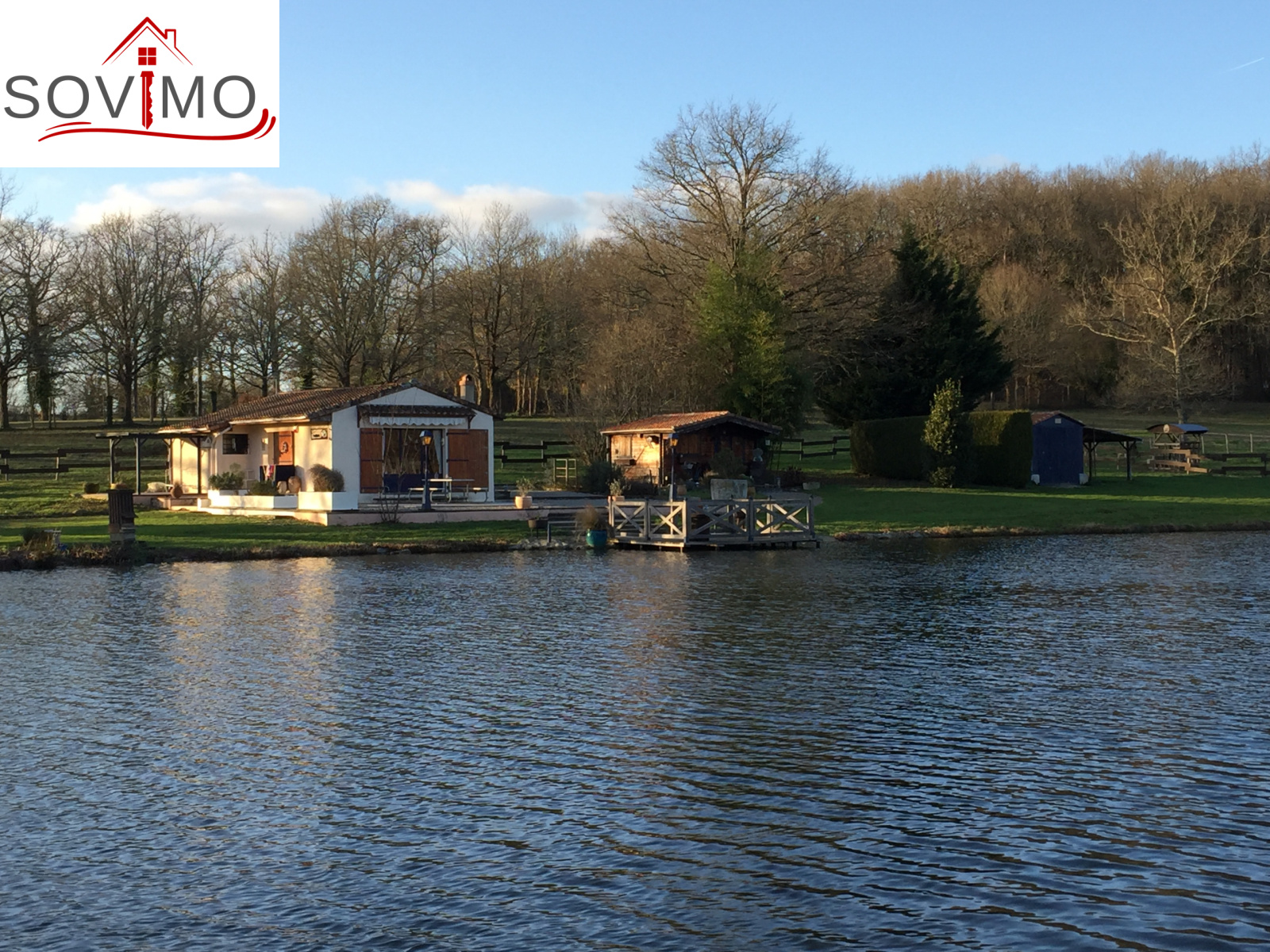 REF.33990 : 140 400 euros H.A.I, Esse, à 4.6 km Confolens (16), en campagne, rare, havre de paix, amoureux de la nature et de la pêche, sur 4 ha env. dans un cadre exceptionnel, étang de loisirs de 1 ha env. avec pied à terre tout confort avec terrasse à usage d'habitation, 57 m2 env.utilisables : cuisine aménagée équipée/séjour (cheminée avec insert), 1 chambre, salle d'eau/wc, chauf. électrique, fosse toutes eaux, alimentée en eau par fontaine avec pompe, garage de 19 m2, petit chalet en bois de 19 m2 avec terrasse, ponton, étang empoissonné (statut eau close), 2 ânes et 1 cygne font partis de la vente, terrain attenant en nature de terre, bois/taillis.