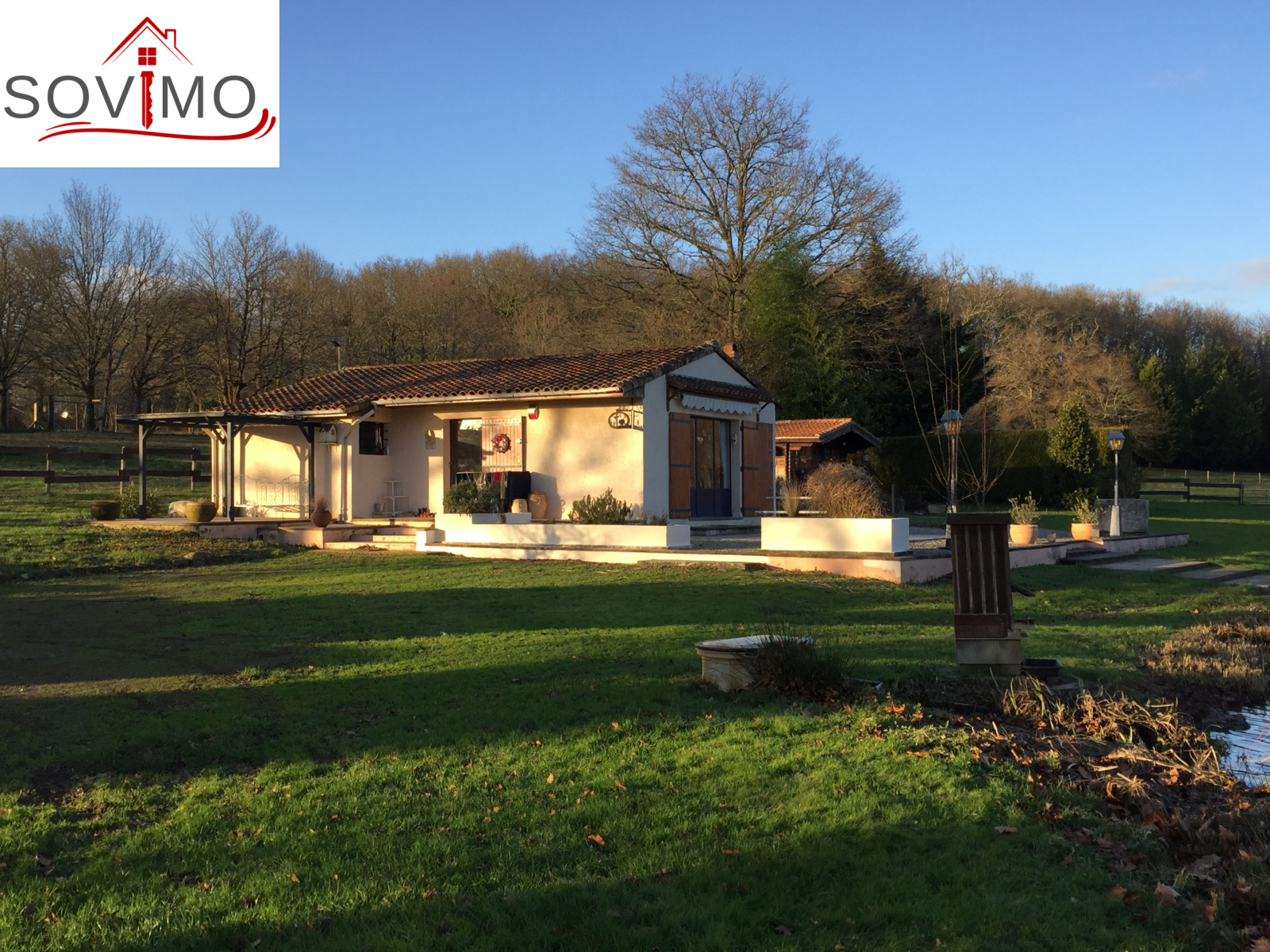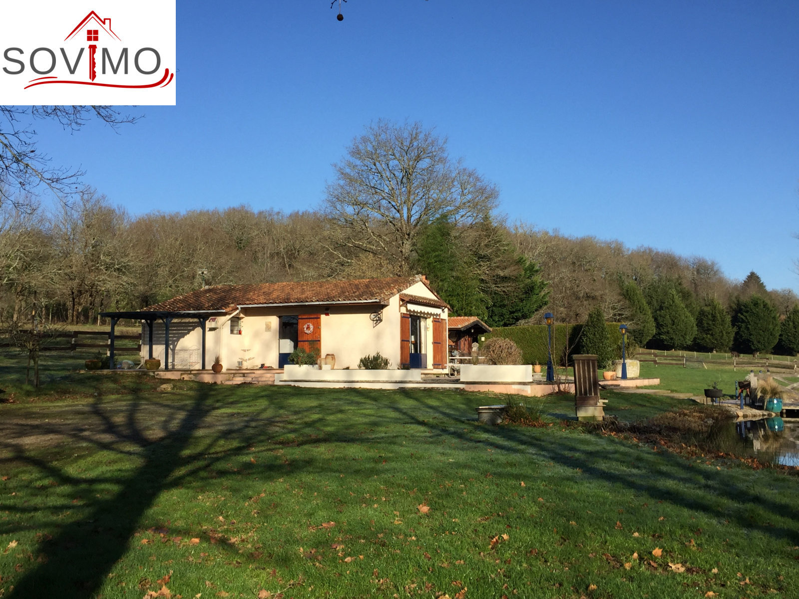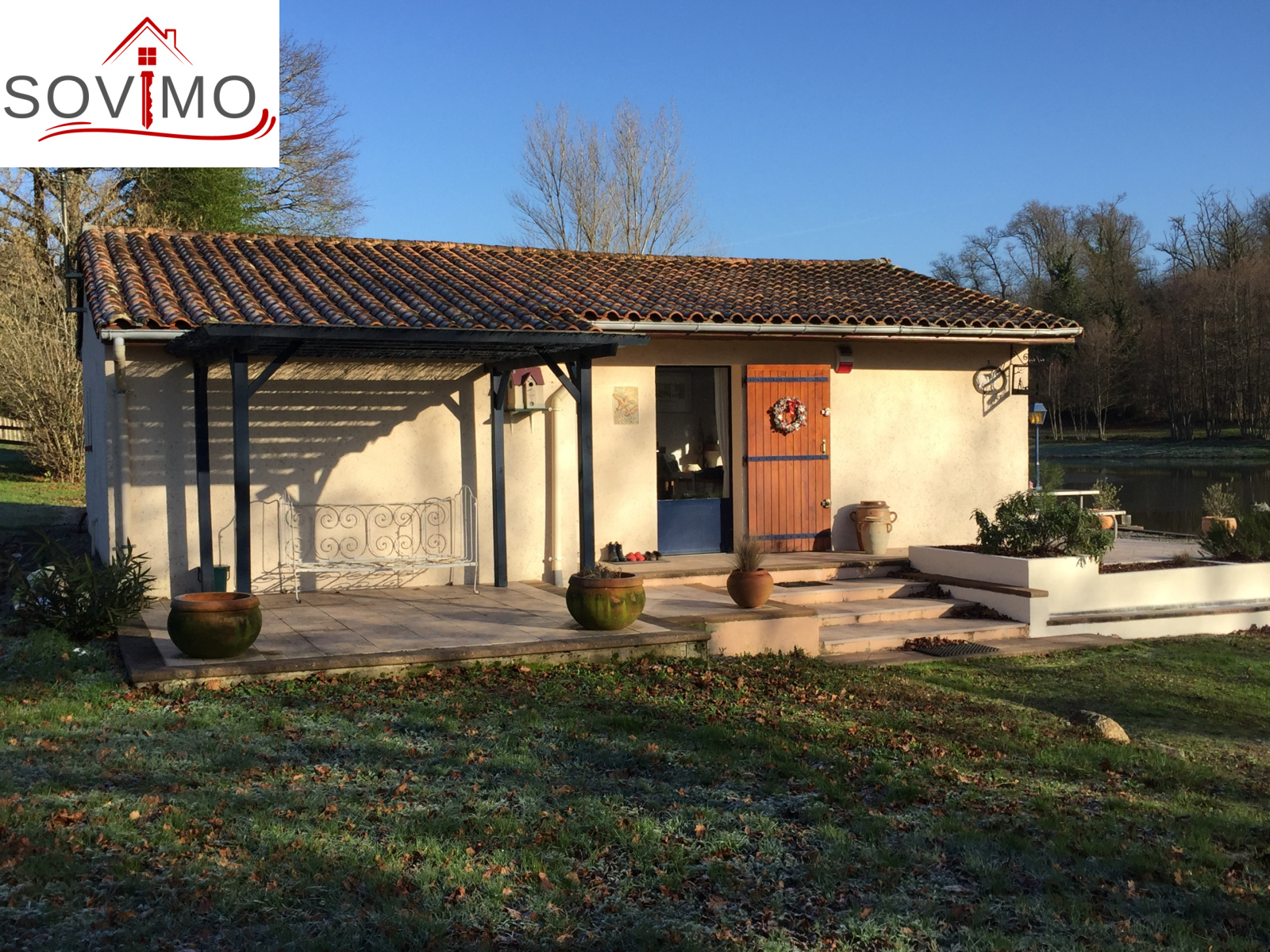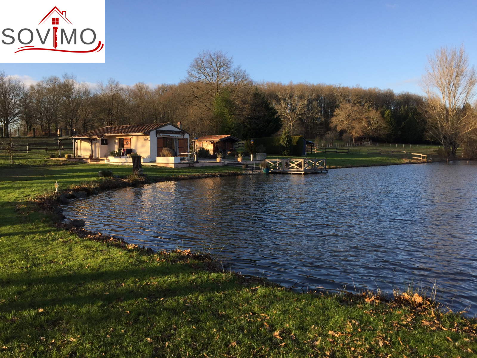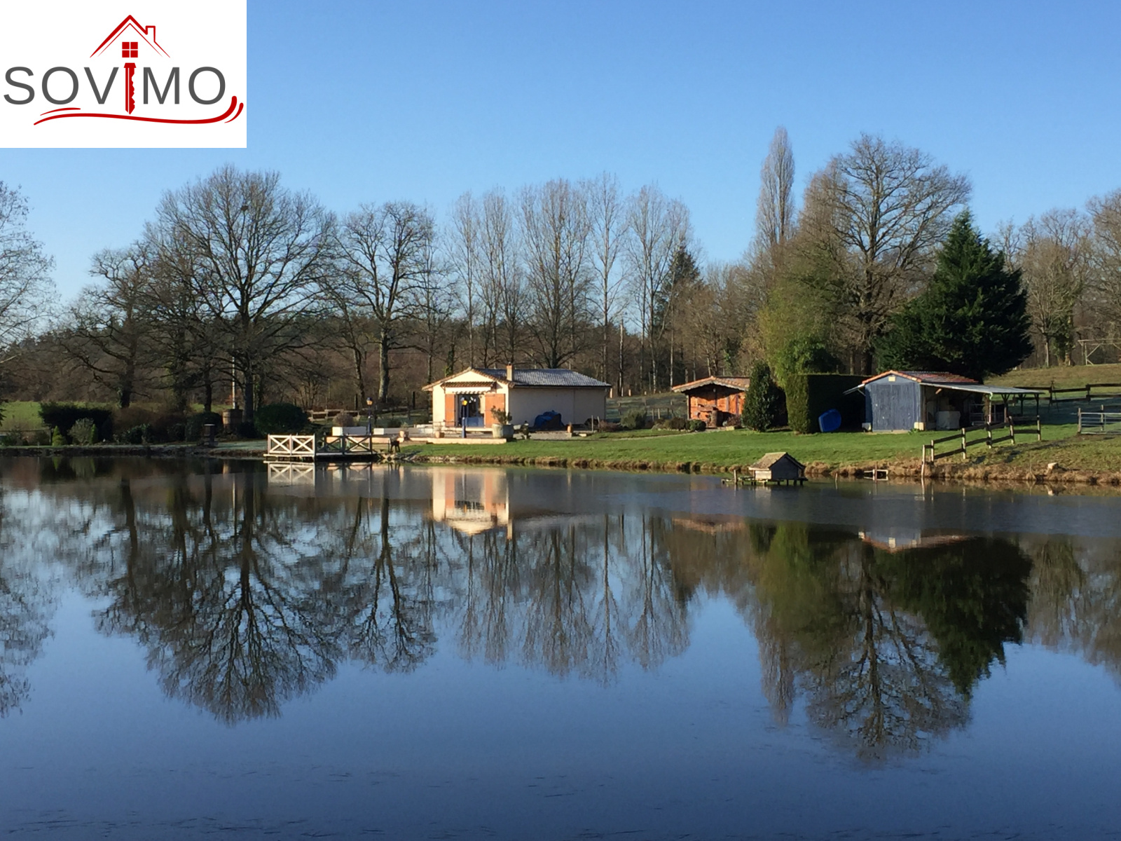 REF.33990 : 140 400 euros H.A.I, Esse, à 4.6 km Confolens (16), en campagne, rare, havre de paix, amoureux de la nature et de la pêche, sur 4 ha env. dans un cadre exceptionnel, étang de loisirs de 1 ha env. avec pied à terre tout confort avec terrasse à usage d'habitation, 57 m2 env.utilisables : cuisine aménagée équipée/séjour (cheminée avec insert), 1 chambre, salle d'eau/wc, chauf. électrique, fosse toutes eaux, alimentée en eau par fontaine avec pompe, garage de 19 m2, petit chalet en bois de 19 m2 avec terrasse, ponton, étang empoissonné (statut eau close), 2 ânes et 1 cygne font partis de la vente, terrain attenant en nature de terre, bois/taillis.