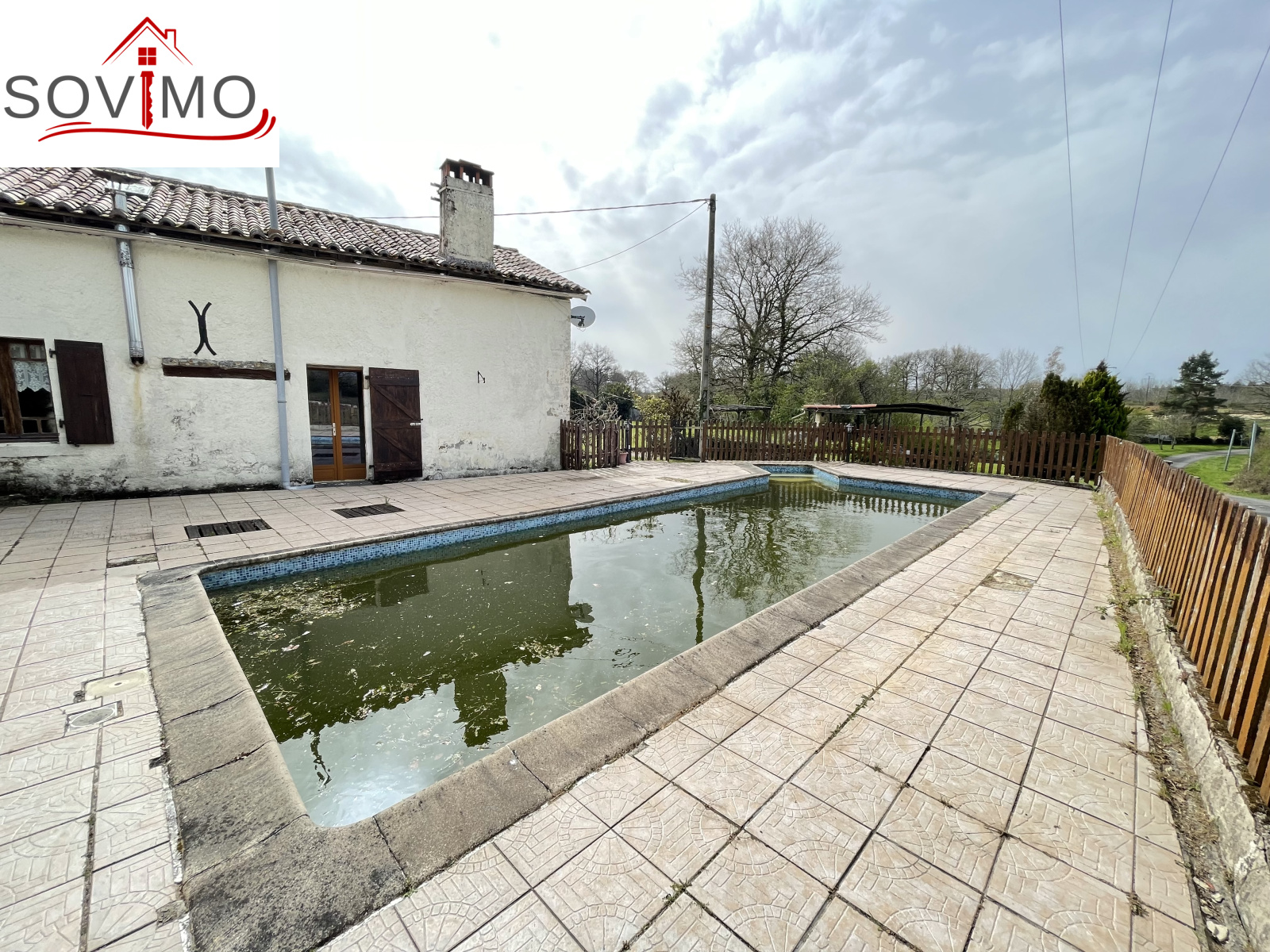RÉF. 34370 : 104 500 euros H.A.I, ALLOUE (16), 10 kms de tous commerces, dans un hameau, maison de campagne indépendante, à usage d'habitation, 96 m2 env. utilisables : cuisine aménagée/séjour/salon (poele et cuisinière bois), salle d'eau, cellier, à l'étage : 3 chambres mansardées dont 2 avec dressing, fosse toutes eaux, piscine avec terrasse et jardin attenant sur 354 m2. En face : terrasse couverte de 19 m2 env., grange mitoyenne de 74 m2, terrain attenant avec point d'eau sur 757 m2, le tout sur 1111 m2.