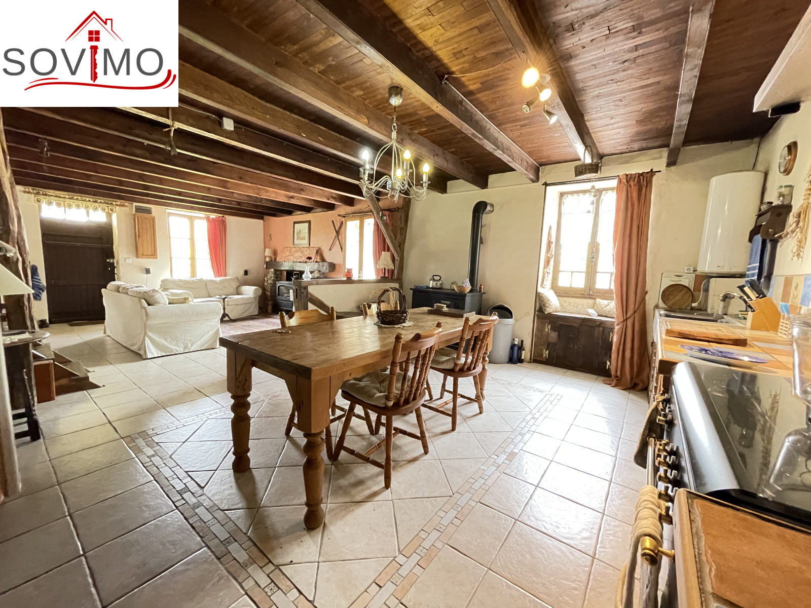 INFORMATIONS COMPLEMENTAIRES : Chauffage : poele + cuisinière bois, double et simple vitrage bois,cumulus électrique de 50 L, construction en pierre avant 1949, toiture tuile revue en 2009 (isolation sous le toit, 5 cm), fosse toutes eaux de 3000 L, tous les meubles sont inclus dans la vente. bon état général.