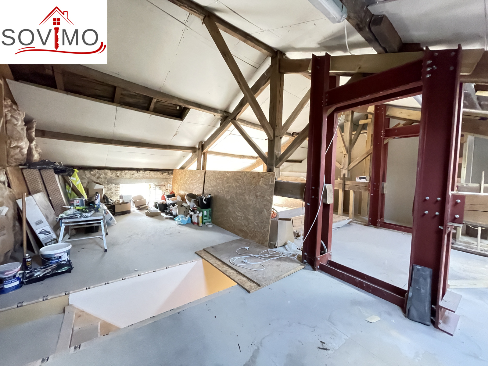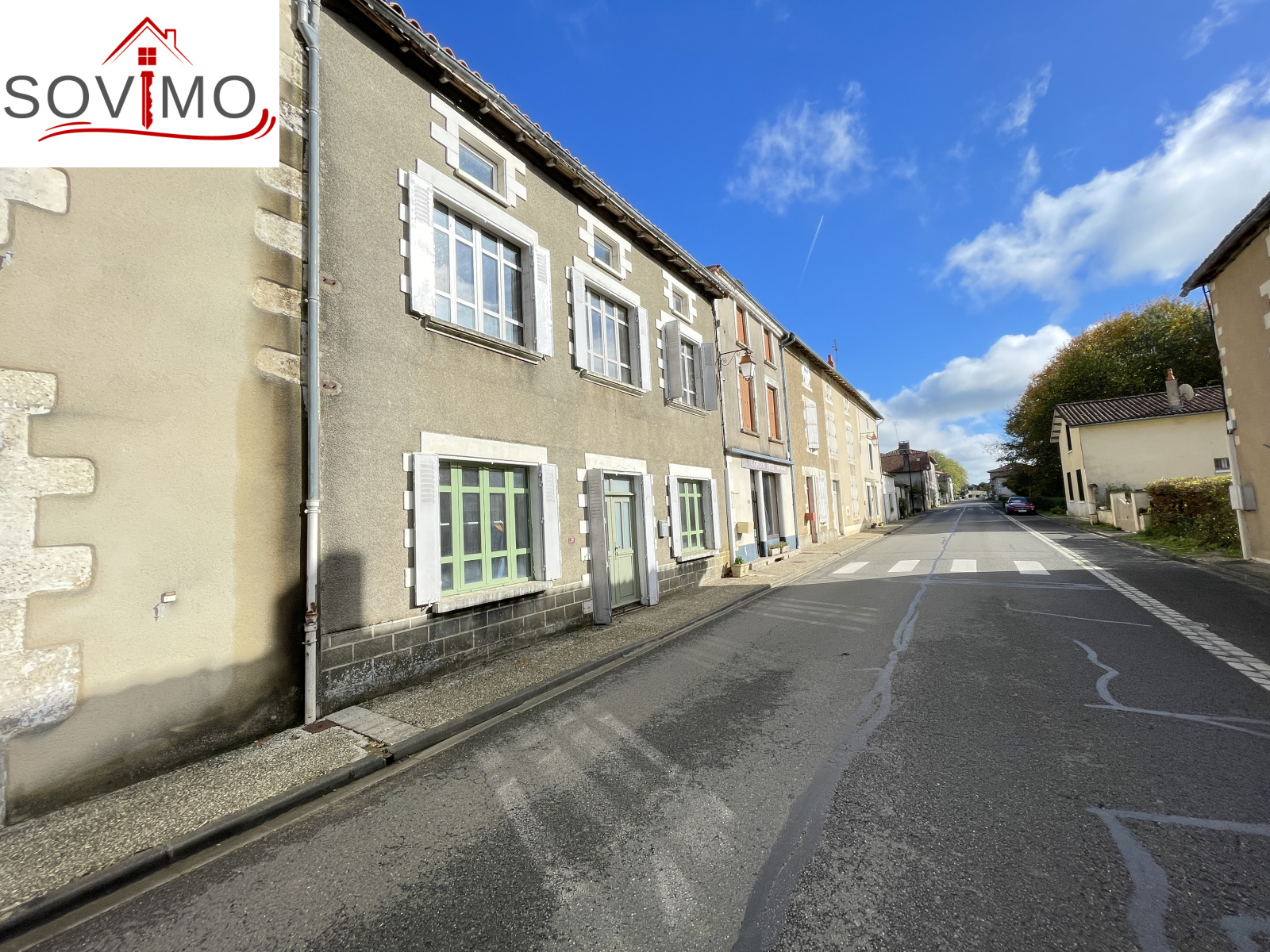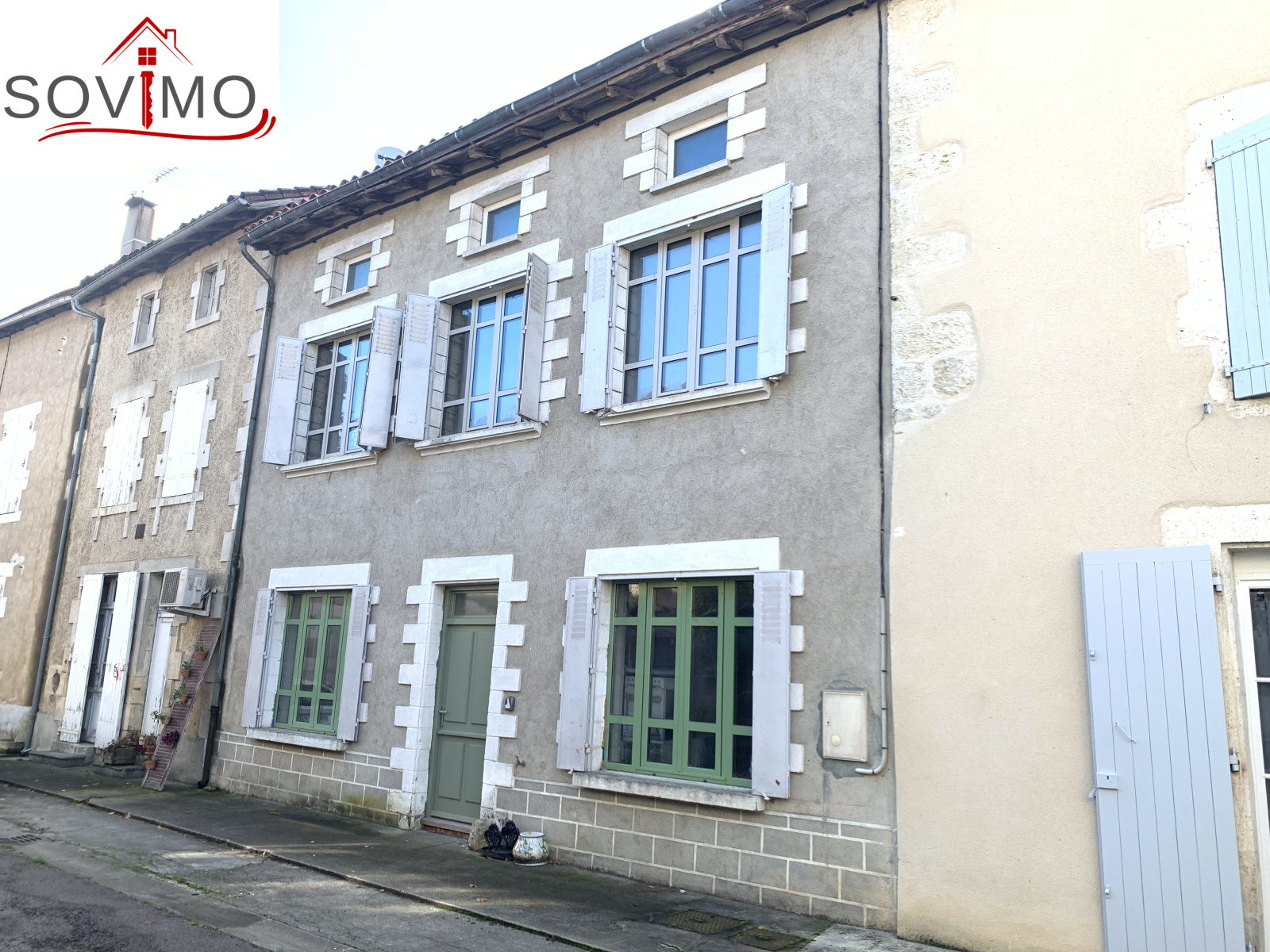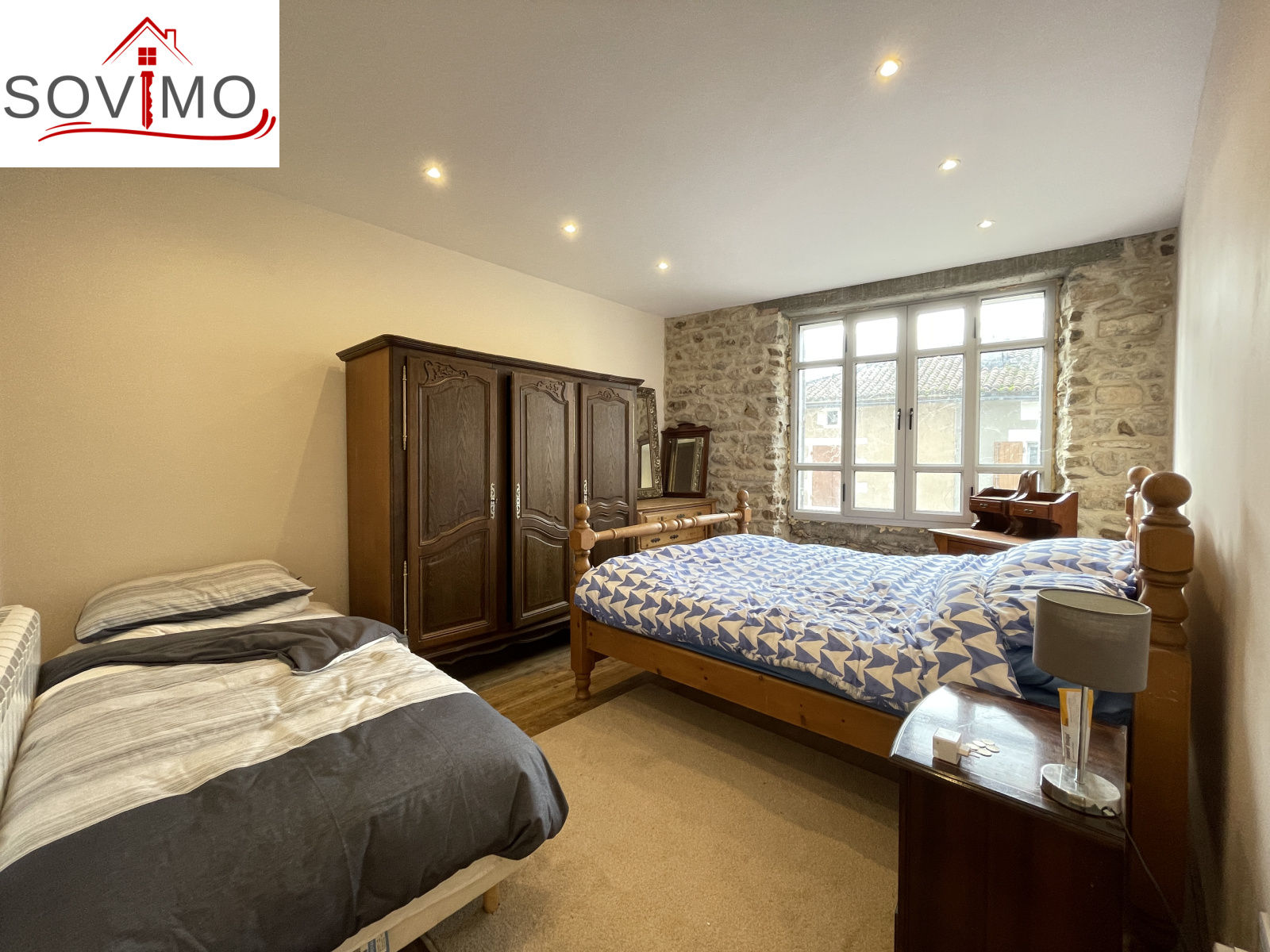 RÉF.34438 : 129 600 euros H.A.I, Alloue (16), au coeur du village, belle bâtisse en pierre rénovée (finition à terminer), mitoyenne, à usage d'habitation, 174 m2 env. utilisables composée au rez de chaussée : entrée, une grande pièce de vie avec coin cuisine aménagée, buanderie, remise, 1 chambre avec salle d'eau/wc, au 1er étage : palier, 3 chambres dont 1 salle d'eau/wc, bureau, salle de bain avec douche et wc, au 2nd étage : grenier aménageable mansardé de 48 m2 env. avec salle d'eau/wc de 3 m2. Chauf. électrique récent, assainissement collectif, pas de jardin.