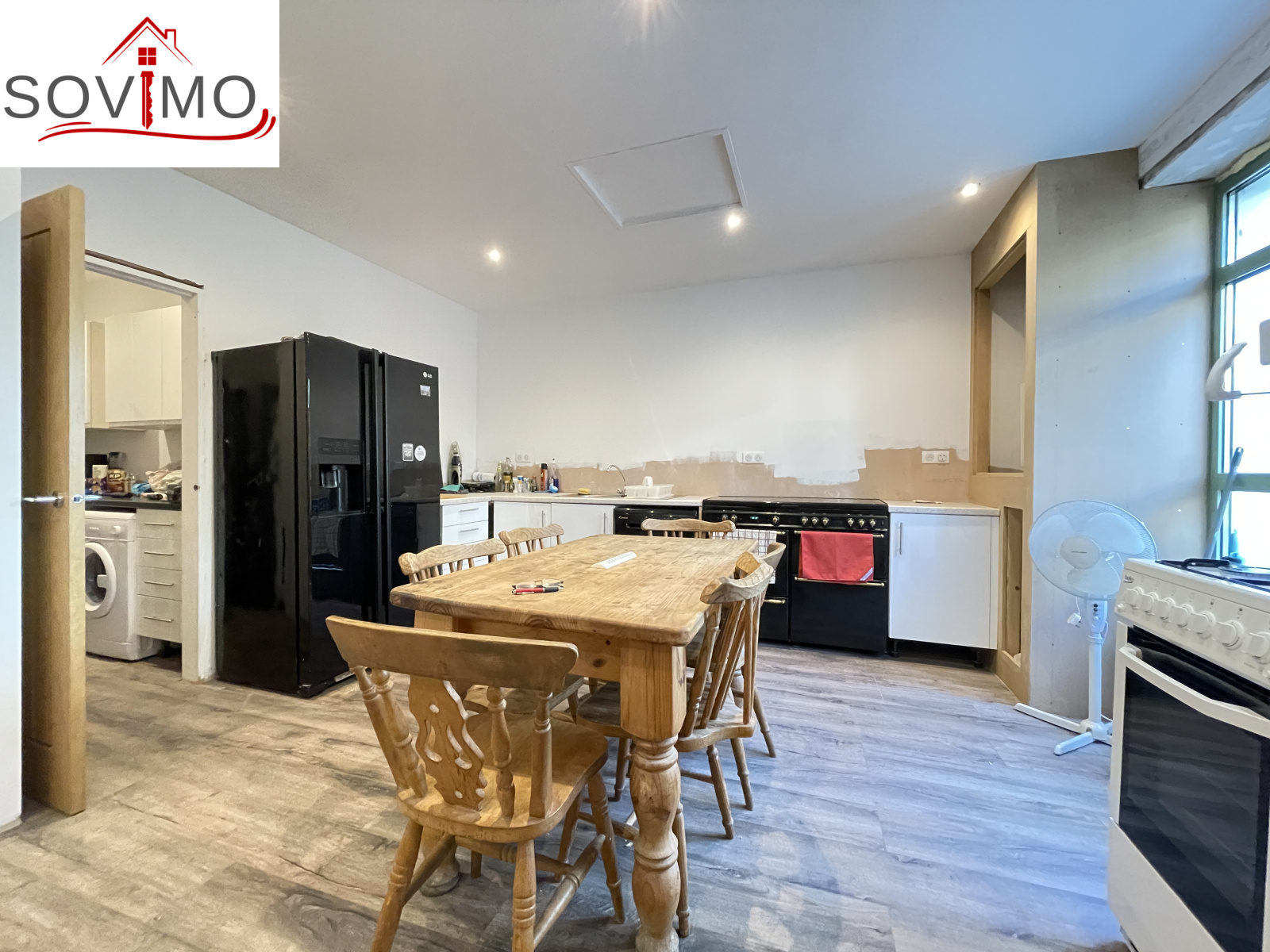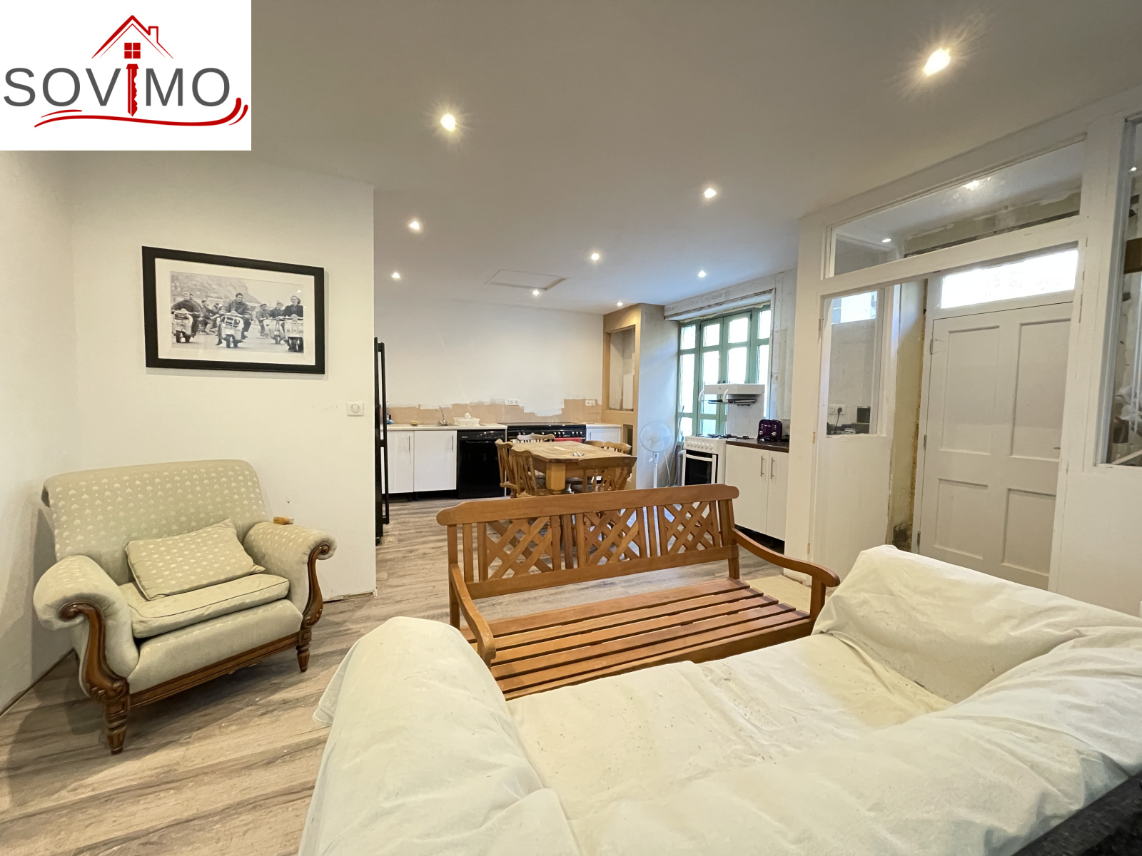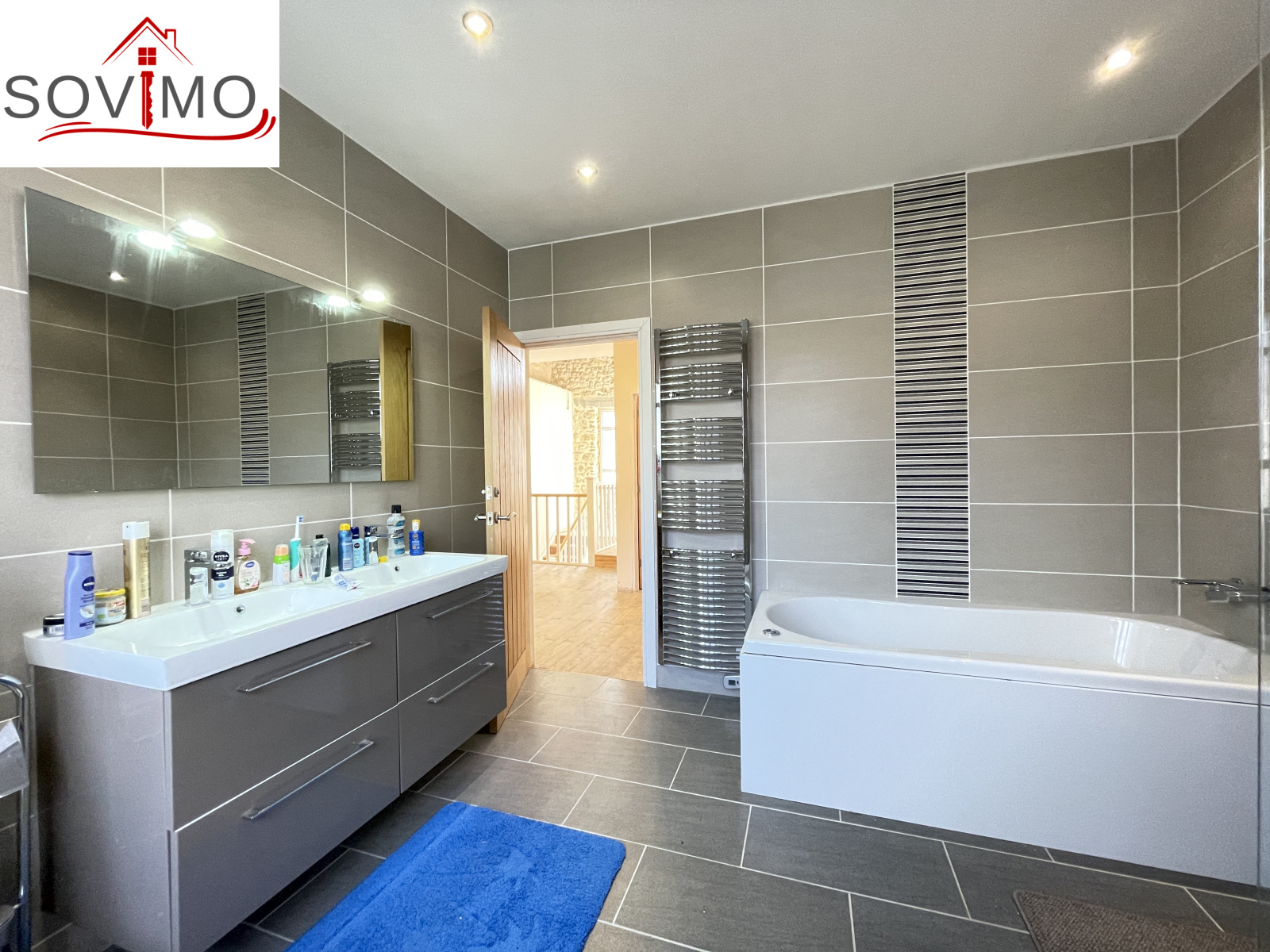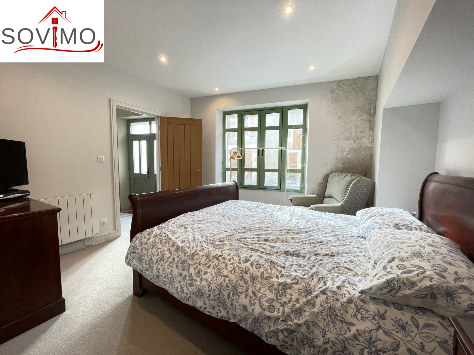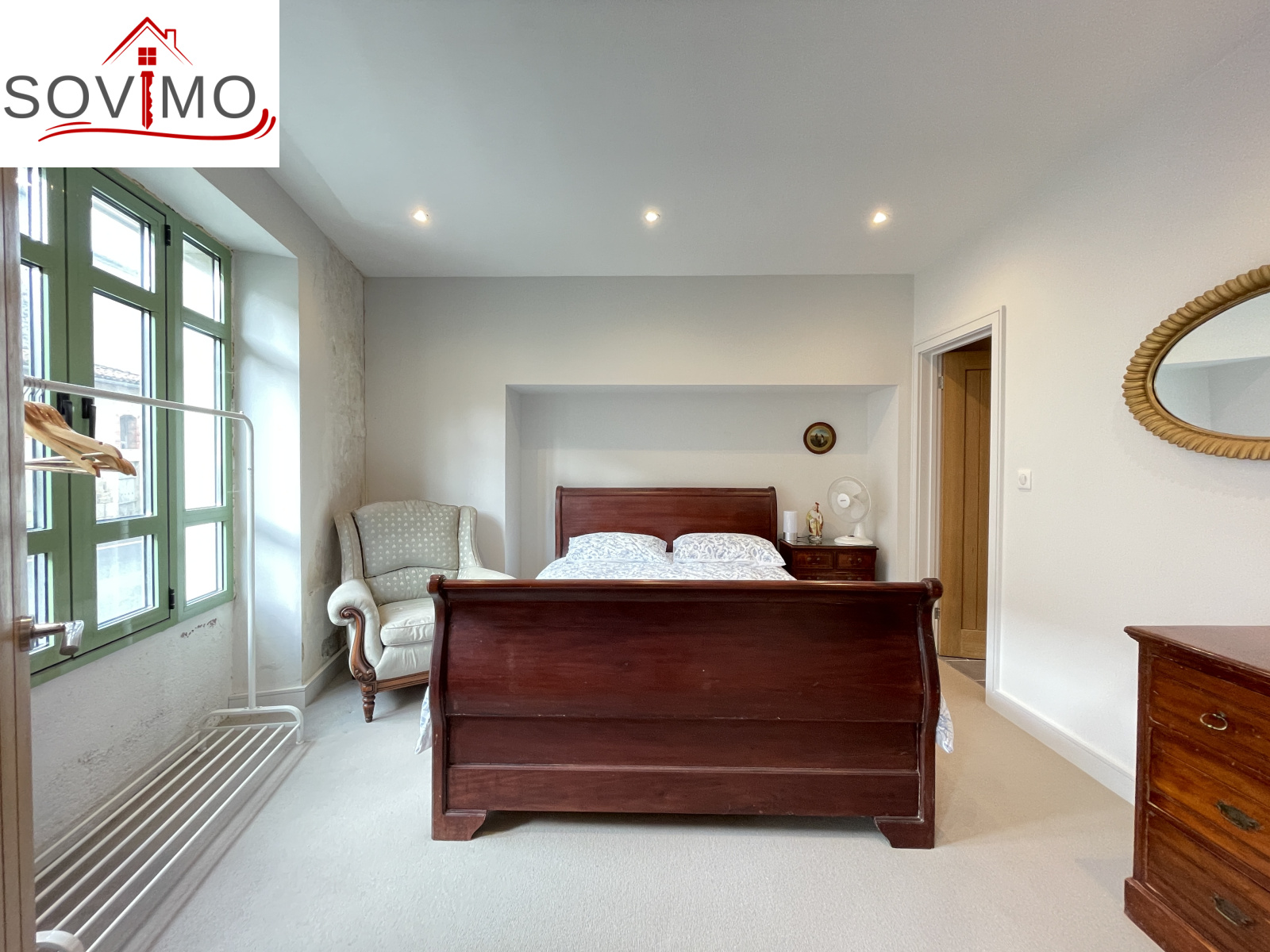 RÉF.34438 : 129 600 euros H.A.I, Alloue (16), au coeur du village, belle bâtisse en pierre rénovée (finition à terminer), mitoyenne, à usage d'habitation, 174 m2 env. utilisables composée au rez de chaussée : entrée, une grande pièce de vie avec coin cuisine aménagée, buanderie, remise, 1 chambre avec salle d'eau/wc, au 1er étage : palier, 3 chambres dont 1 salle d'eau/wc, bureau, salle de bain avec douche et wc, au 2nd étage : grenier aménageable mansardé de 48 m2 env. avec salle d'eau/wc de 3 m2. Chauf. électrique récent, assainissement collectif, pas de jardin.