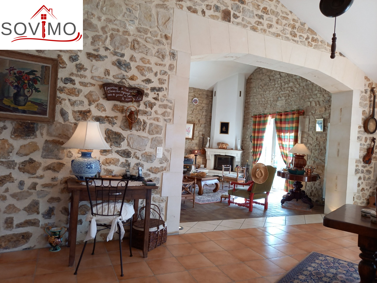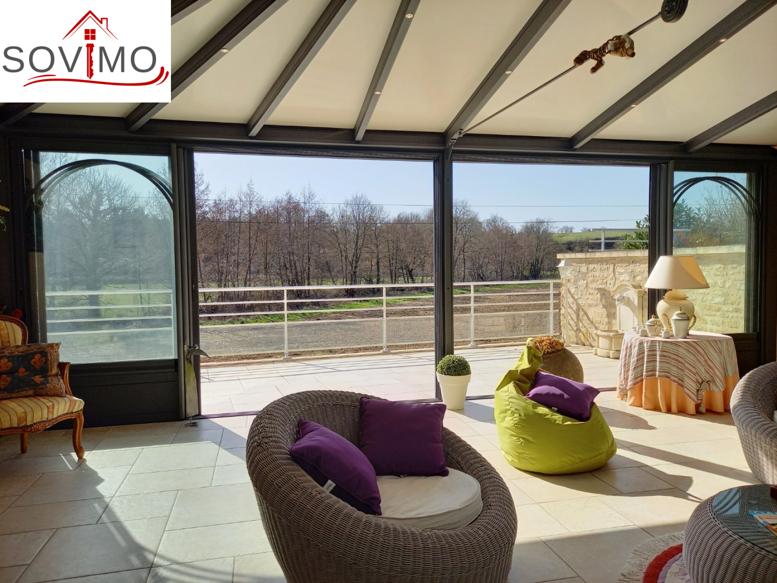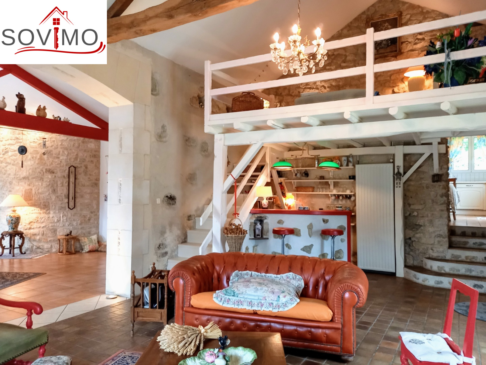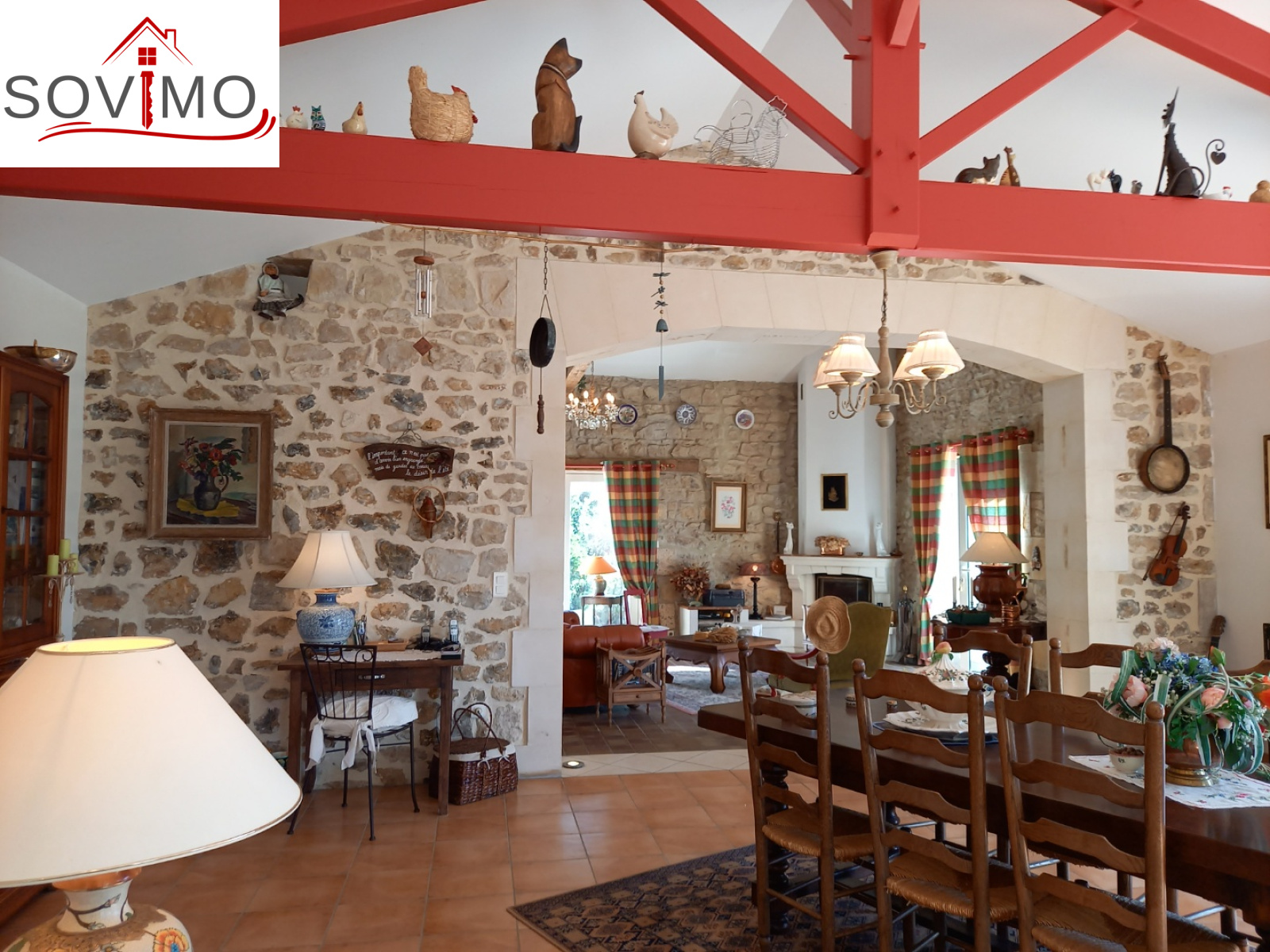 REF. 33746 : A SAISIR !! 265 000 euros H.Ag.Incl., Alloue (16) village très actif avec maison des comédiens de Maria Cassarès (théatre, chants, cinéma projections à thèmes, sorties désouvertes, conteurs, etc..) , cette très belle propriété est située à 80M de la Charente, et à 4kms de l'élevage de Chevaux de Rivelrand !!, très belle propriété plein sud, au calme alliant rusticité modernité avec grands espace de vie lumineux, charme et confort avec vue imprenable sur la vallée de la Charente à 80 M (pêche à la ligne), 264 m2 env. utilisables : belle véranda (PAC air/air), cuisine amé.équipée, salon (chemine avec insert), salle à manger, bureau, salle de bain, wc, 2 chambres, dressing, lingerie, dégagement, salle d’eau, cabinet de toilette, auvent, chaufferie, à l’étage : mezzanine, 1 chambre mansardée, chauf.gaz, cave, terrasse plein sud, bâtiment indépendant à usage d’abri de jardin, tout à l 'égout, terrain attenant boisé en partie, le tout sur 3075 m2 env.