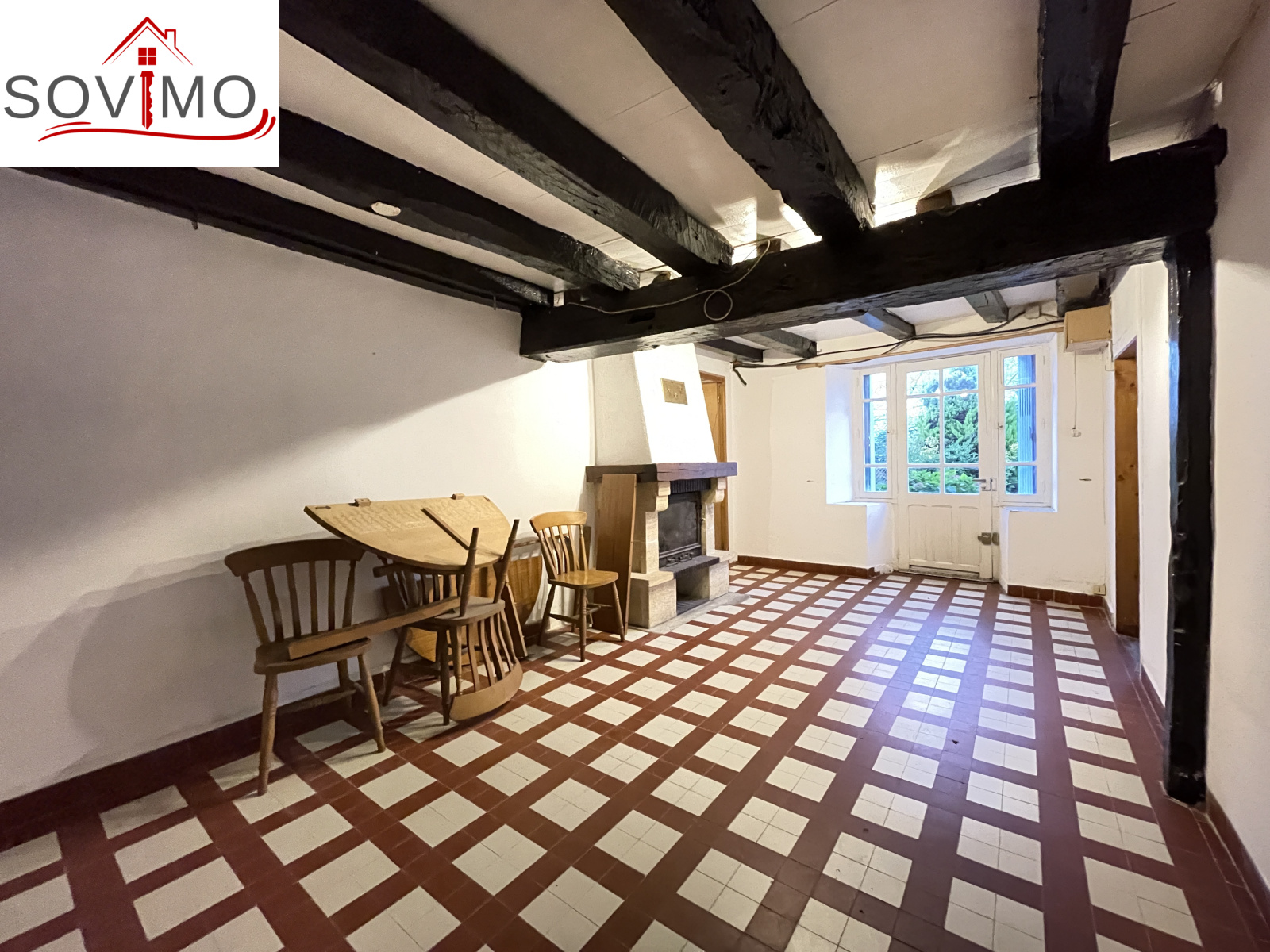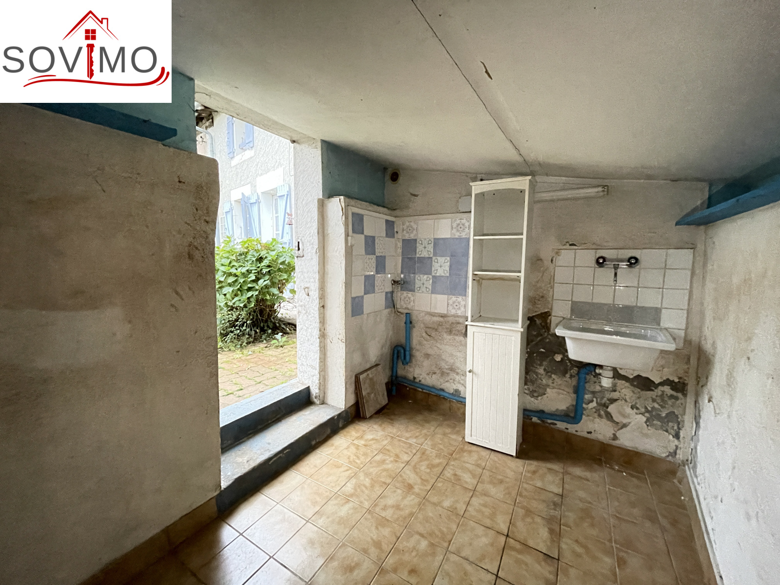 RÉF. 34435 : 55 000 euros H.A.I, Exideuil/Vienne (16), bourg avec commerces de proximités, EXCLUSIVITÉ !, maison de village mitoyenne, 99 m2 env. utilisables : cuisine, salle à manger, salon (cheminée avec insert), salle d'eau/wc, à l'étage : palier, 2 chambres, salle de bain, wc. Assainissement collectif, abri de jardin + buanderie extérieure de 4 m2 env, terrain attenant, le tout sur 652 m2.