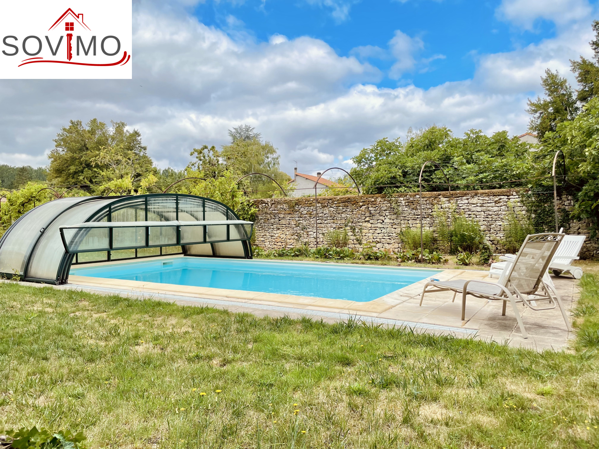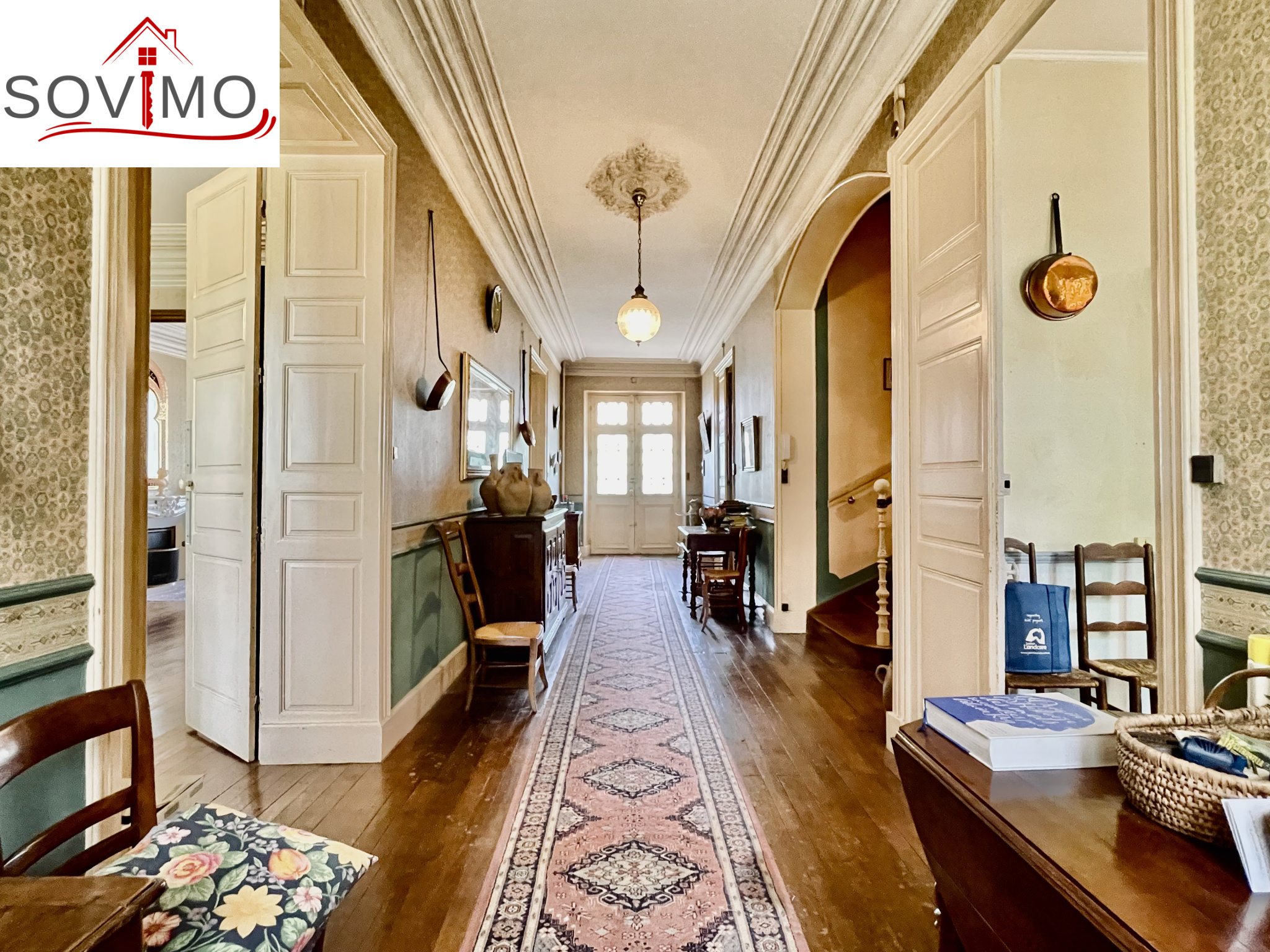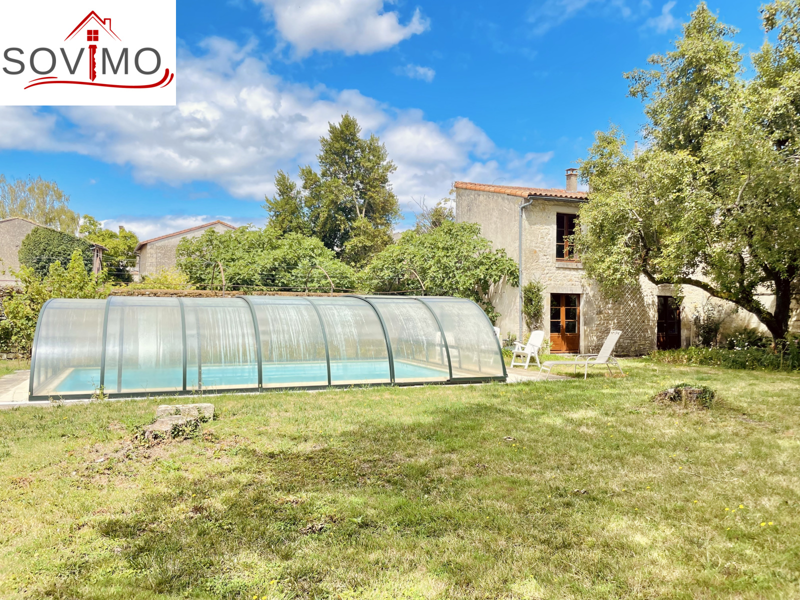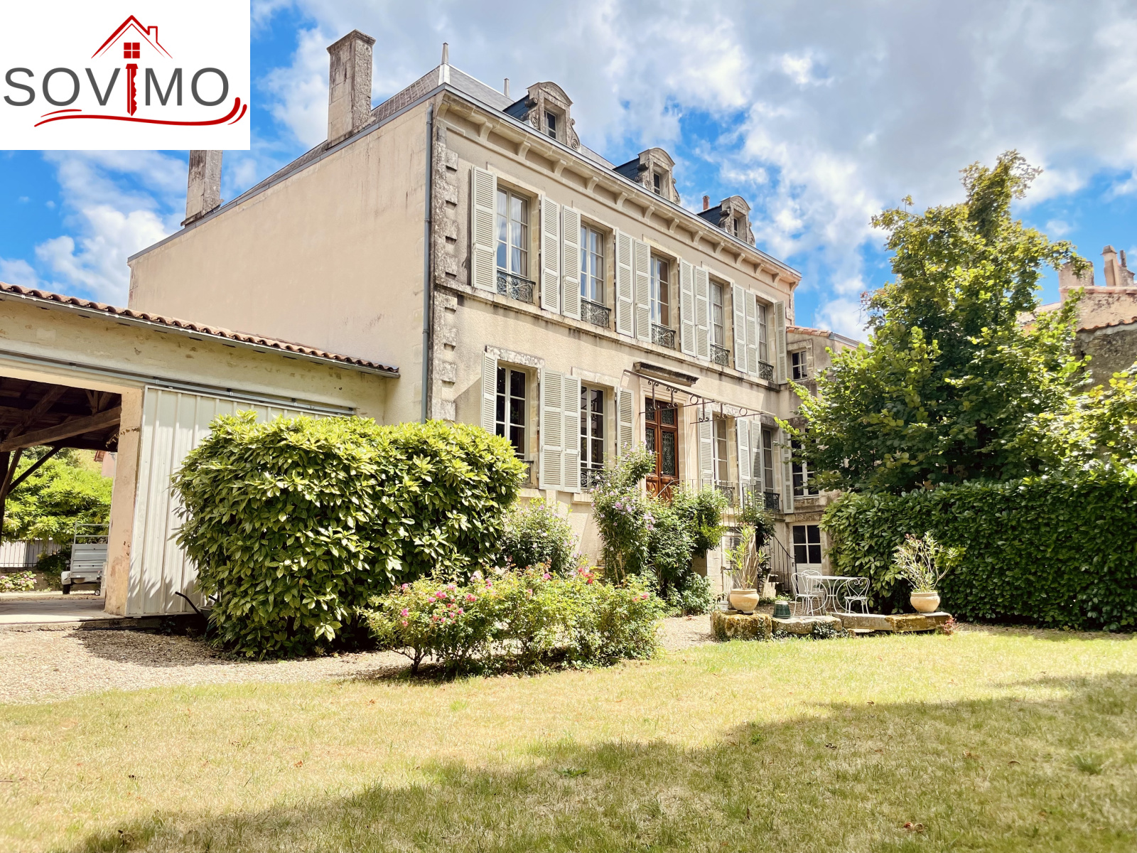 RÉF. 34876 : 349 800 euros HAI, La Mothe St Heray (79), centre ville, belle maison de Maître de 1882, caractère et authenticité, parc agrémenté d'une piscine et annexe, maison à usage d'habitation, 311 m2 env. utilisables, composée au rez de chaussée surélevé : hall d'entrée, cuisine aménagée équipée, salle à manger (cheminée), salon (cheminée), bureau, cabinet de toilette, boudoir, atelier de 13 m2, souillarde de 11 m2, au 1er étage : palier, 2 chambres, salle d'eau, wc, 2nd palier, dressing, 2 chambres avec salle d'eau, 1 chambre avec cabinet de toilette, au 2nd étage : grenier aménageable avec 2 anciennes chambres de bonne de 13 m2 et 8 m2, au sous sol semi enterré : 3 caves 55 m2, 25 m2 et 50 m2 et une chaufferie de 30 m2. Chauf. central granulés, assainissement collectif. Hangar attenant à usage de garage de 50 m2, annexe mitoyenne en pierre avec une pièce au rez de chaussée de 33 m2 et un pièce avec lavabo au 1er étage de 31 m2. Cour attenante, abri de jardin, de 25 m2, piscine enterrée couverte 8x5 avec PAC air/eau, parc arboré attenant avec verger, potager et puits, le tout sur 3925 m2.