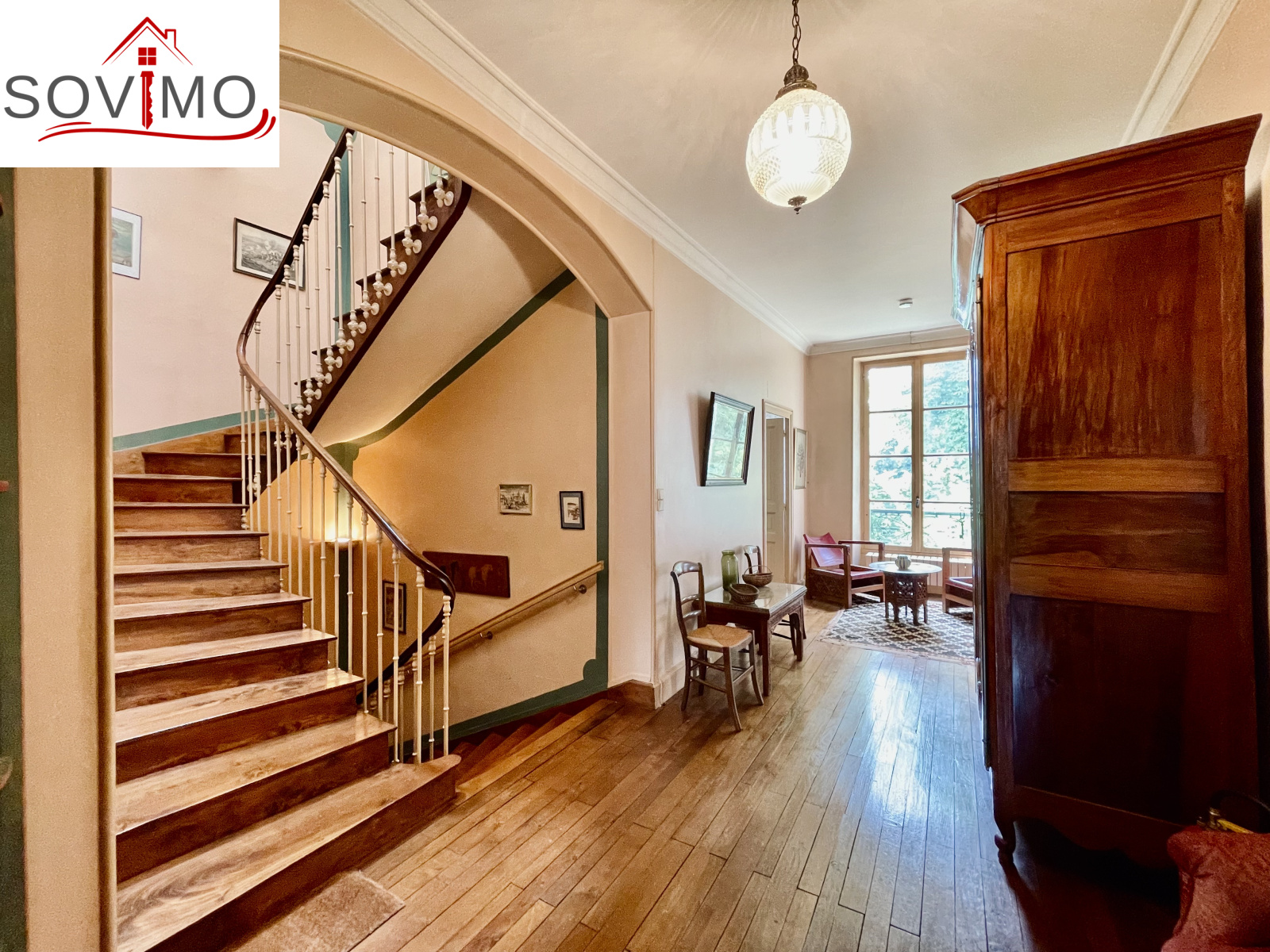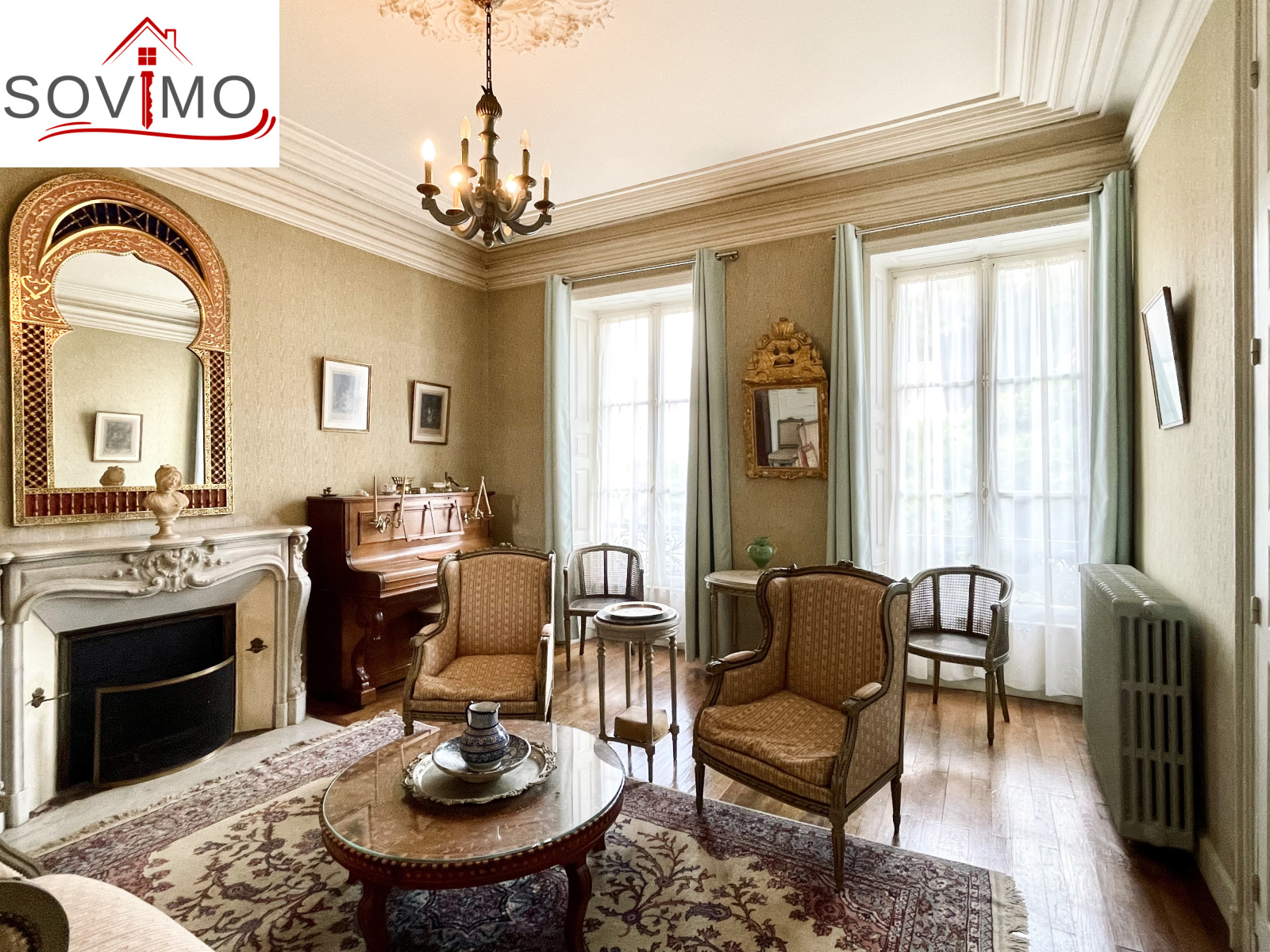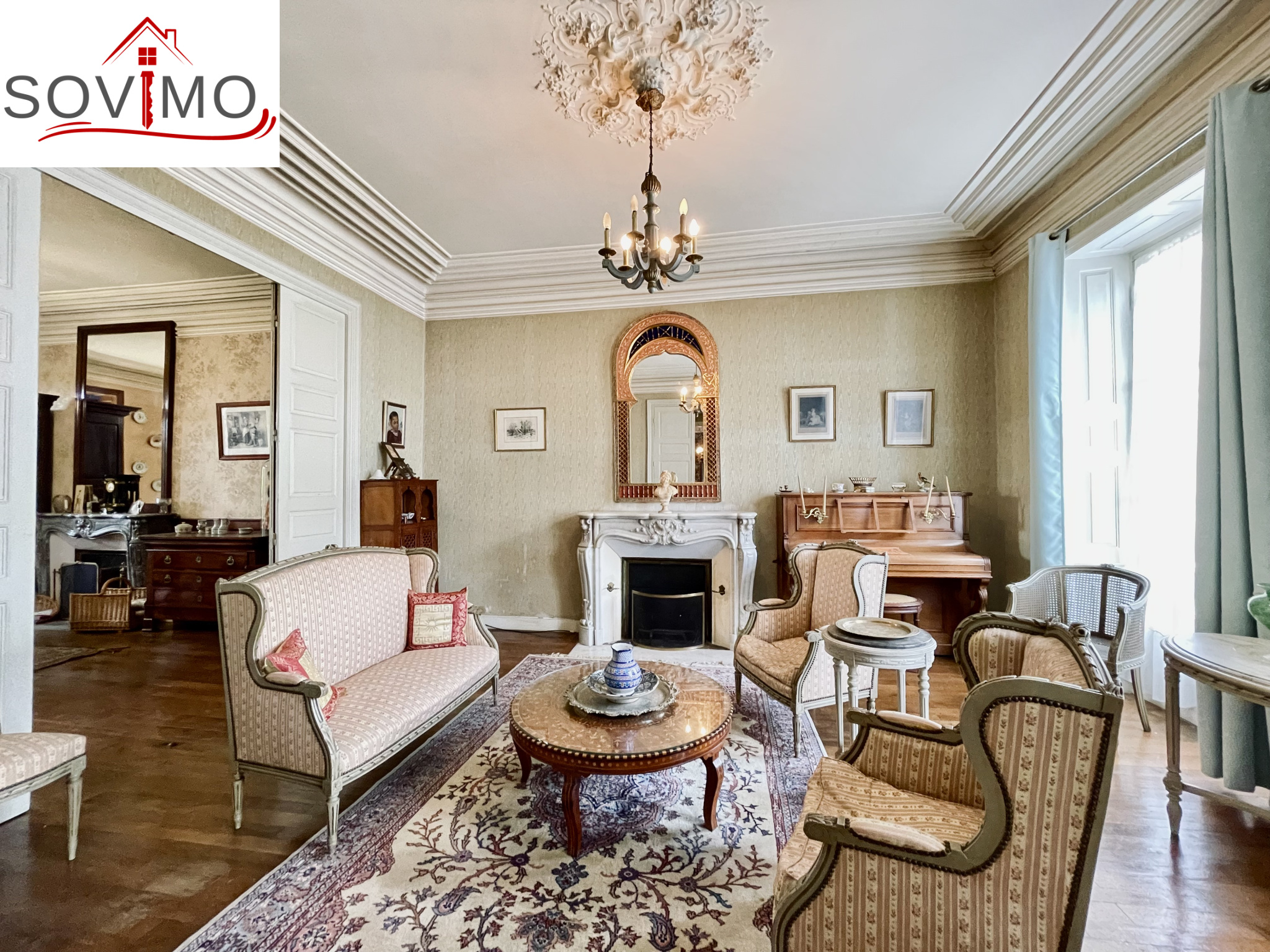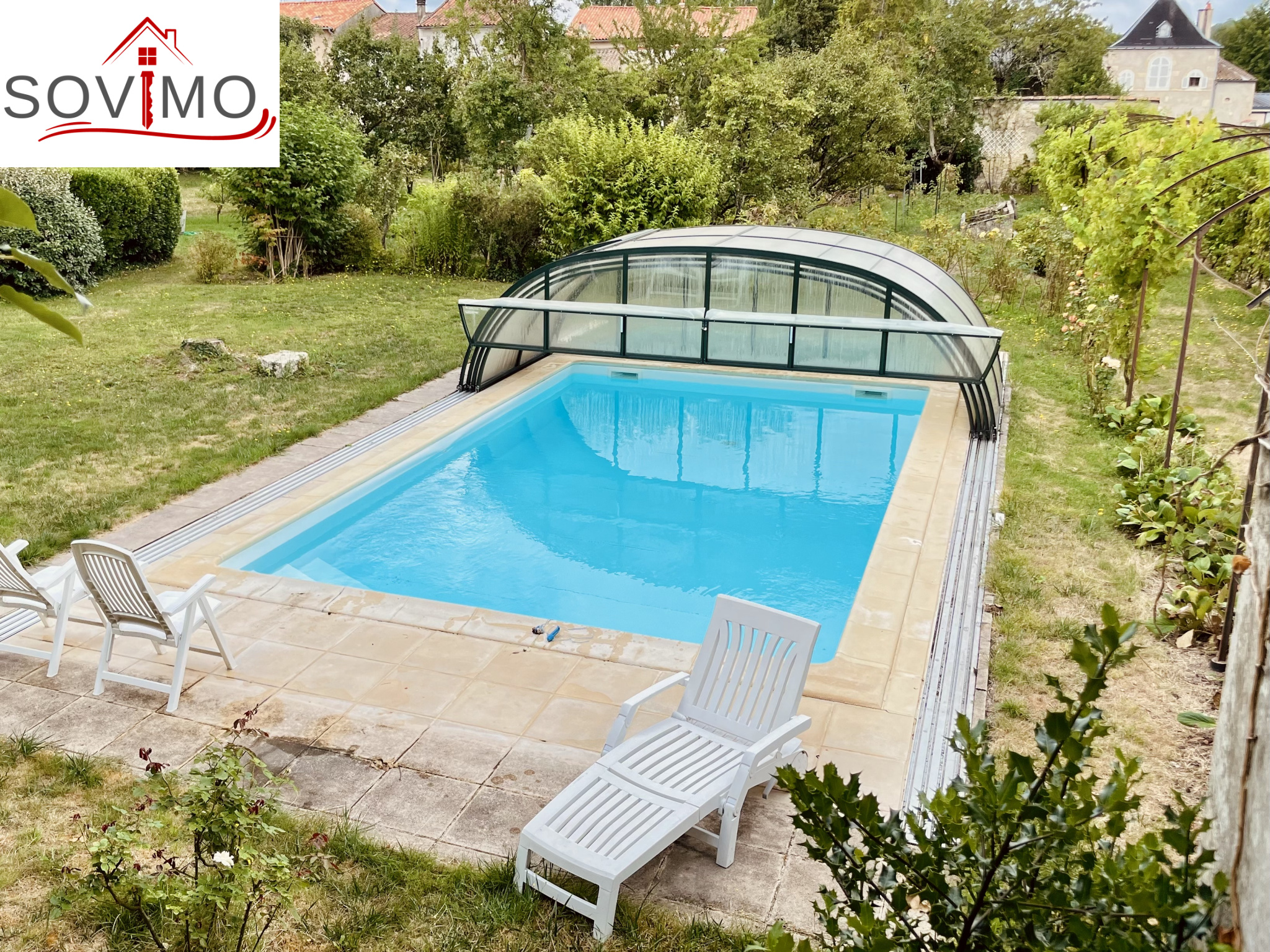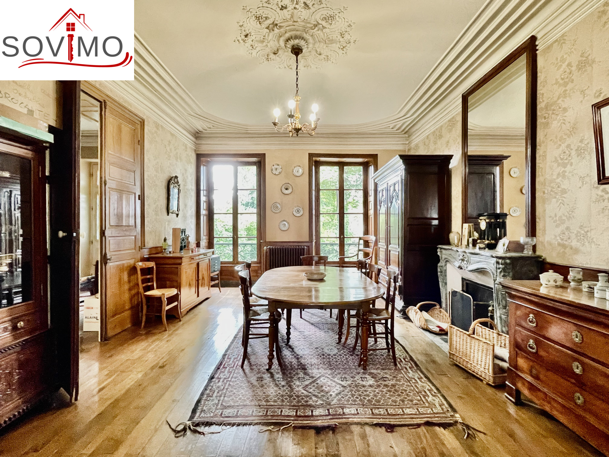 RÉF. 34876 : 349 800 euros HAI, La Mothe St Heray (79), centre ville, belle maison de Maître de 1882, caractère et authenticité, parc agrémenté d'une piscine et annexe, maison à usage d'habitation, 311 m2 env. utilisables, composée au rez de chaussée surélevé : hall d'entrée, cuisine aménagée équipée, salle à manger (cheminée), salon (cheminée), bureau, cabinet de toilette, boudoir, atelier de 13 m2, souillarde de 11 m2, au 1er étage : palier, 2 chambres, salle d'eau, wc, 2nd palier, dressing, 2 chambres avec salle d'eau, 1 chambre avec cabinet de toilette, au 2nd étage : grenier aménageable avec 2 anciennes chambres de bonne de 13 m2 et 8 m2, au sous sol semi enterré : 3 caves 55 m2, 25 m2 et 50 m2 et une chaufferie de 30 m2. Chauf. central granulés, assainissement collectif. Hangar attenant à usage de garage de 50 m2, annexe mitoyenne en pierre avec une pièce au rez de chaussée de 33 m2 et un pièce avec lavabo au 1er étage de 31 m2. Cour attenante, abri de jardin, de 25 m2, piscine enterrée couverte 8x5 avec PAC air/eau, parc arboré attenant avec verger, potager et puits, le tout sur 3925 m2.