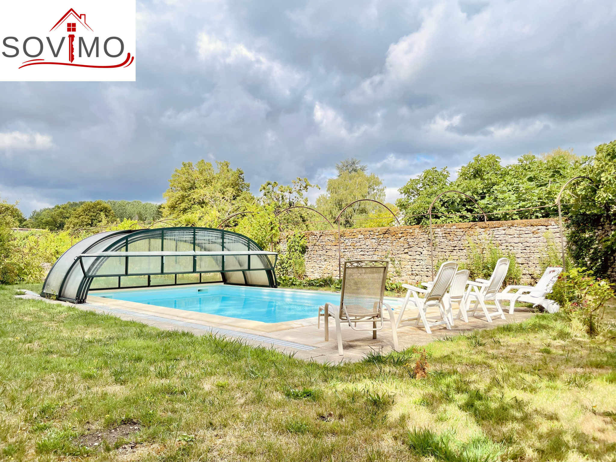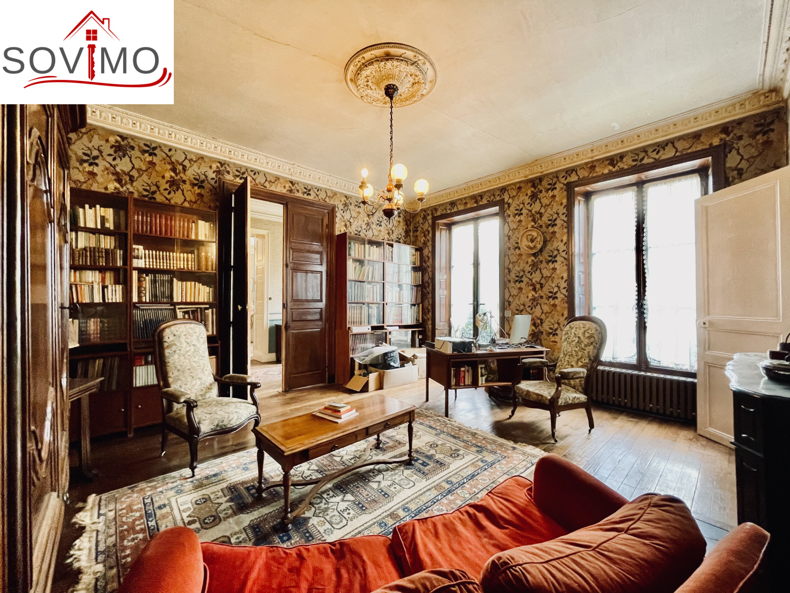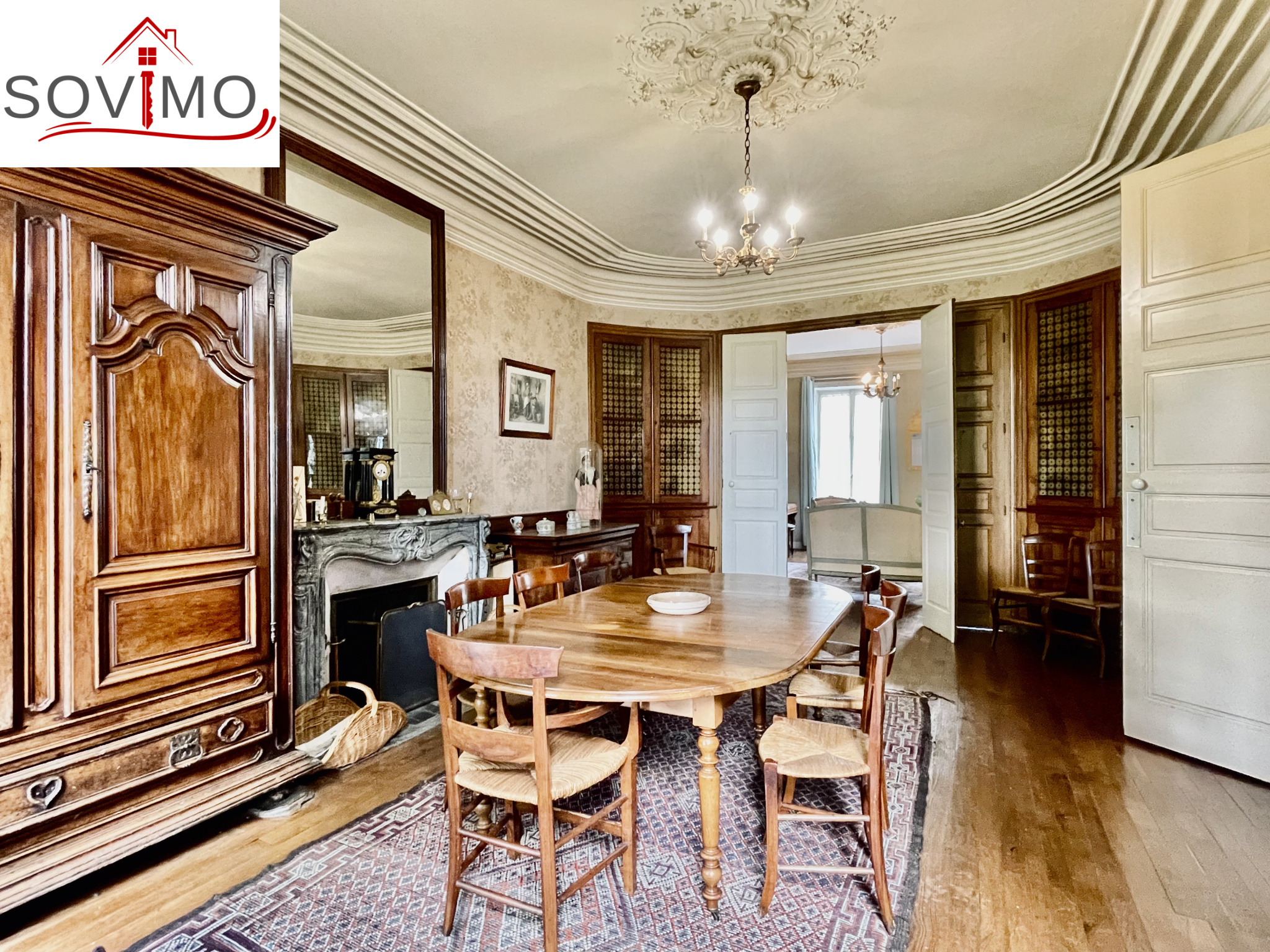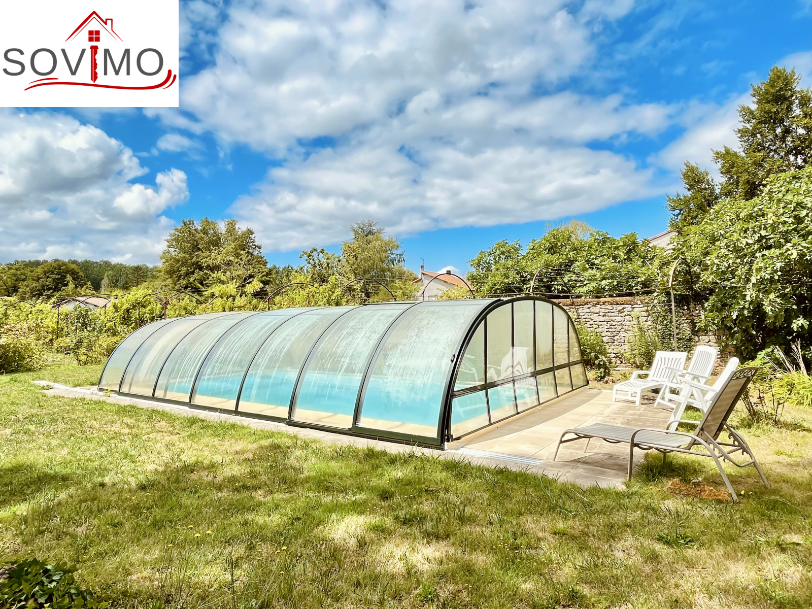 RÉF. 34876 : 349 800 euros HAI, La Mothe St Heray (79), centre ville, belle maison de Maître de 1882, caractère et authenticité, parc agrémenté d'une piscine et annexe, maison à usage d'habitation, 311 m2 env. utilisables, composée au rez de chaussée surélevé : hall d'entrée, cuisine aménagée équipée, salle à manger (cheminée), salon (cheminée), bureau, cabinet de toilette, boudoir, atelier de 13 m2, souillarde de 11 m2, au 1er étage : palier, 2 chambres, salle d'eau, wc, 2nd palier, dressing, 2 chambres avec salle d'eau, 1 chambre avec cabinet de toilette, au 2nd étage : grenier aménageable avec 2 anciennes chambres de bonne de 13 m2 et 8 m2, au sous sol semi enterré : 3 caves 55 m2, 25 m2 et 50 m2 et une chaufferie de 30 m2. Chauf. central granulés, assainissement collectif. Hangar attenant à usage de garage de 50 m2, annexe mitoyenne en pierre avec une pièce au rez de chaussée de 33 m2 et un pièce avec lavabo au 1er étage de 31 m2. Cour attenante, abri de jardin, de 25 m2, piscine enterrée couverte 8x5 avec PAC air/eau, parc arboré attenant avec verger, potager et puits, le tout sur 3925 m2.