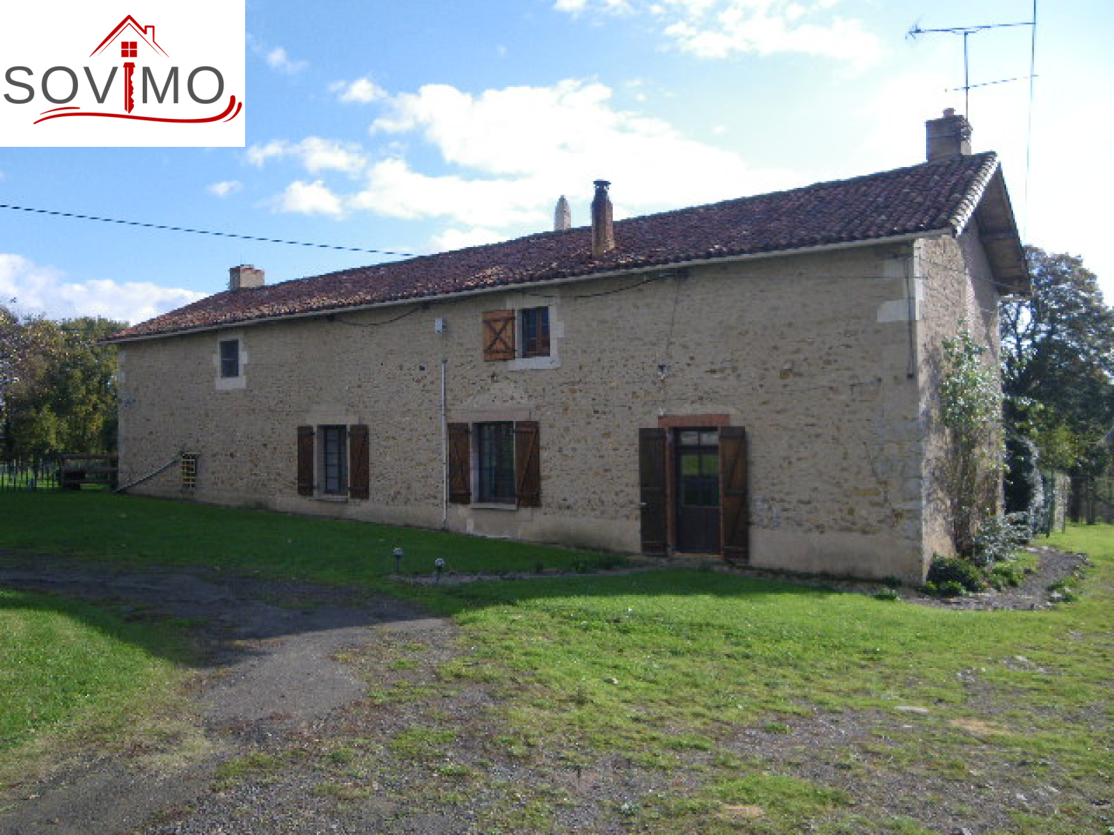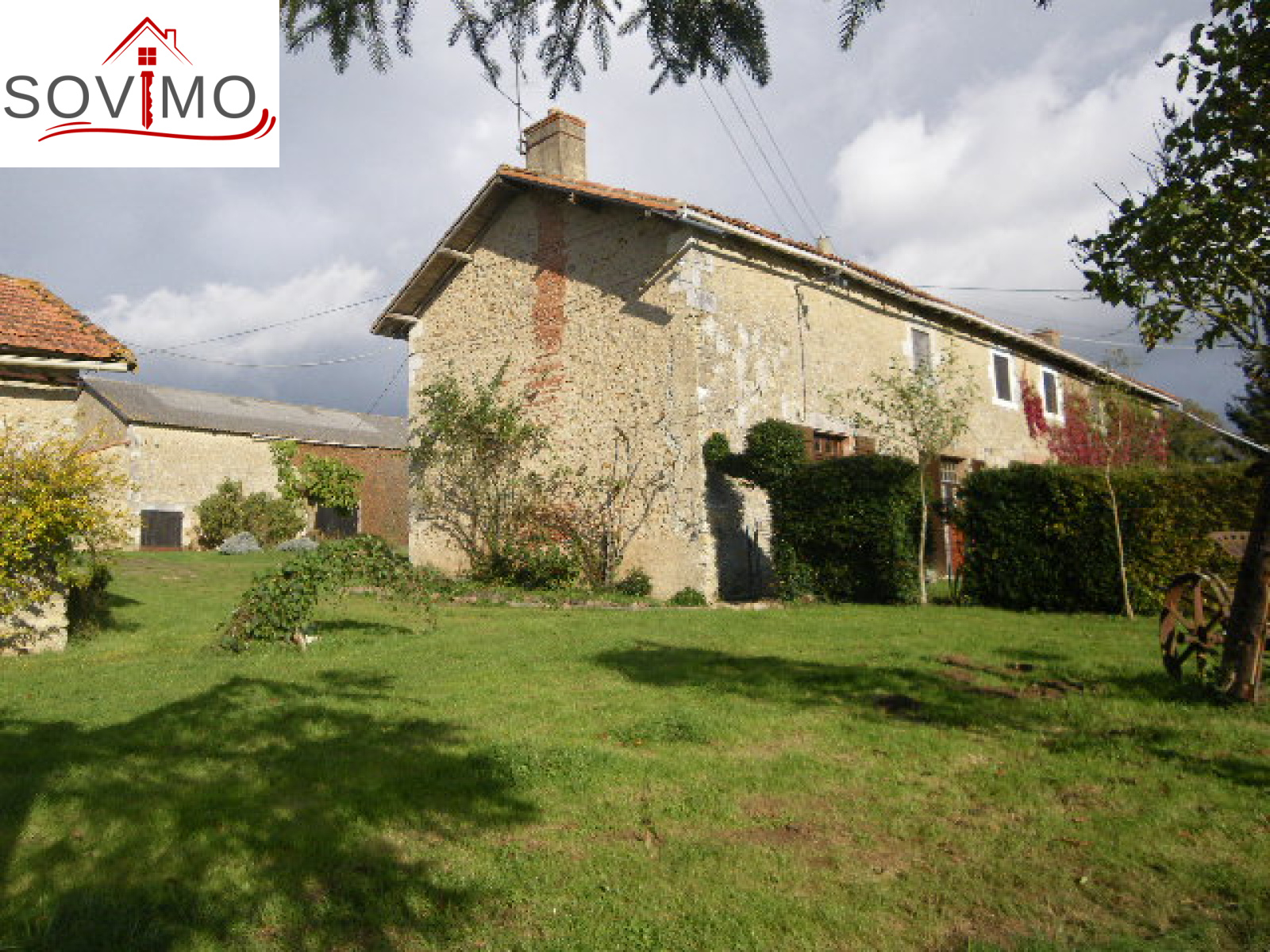 REF. 33599 : 207 900 euros Ag. Incl., Commune du Vigeant (86), dans un cadre idyllique, jolie propriété agricole sur 11 ha env., maison de ferme en pierres, 225 m2 env. utilisables : cuisine/séjour, salon, bureau, sd'eau, cabinet toilette, 1 chambre, étage : palier, 5 chambres, sdb, toilettes sèches, 1 pièce à aménager 40 m2, chauf. fuel, buanderie/cellier 38 m2, bergerie 60 m2, grange avec étable 300 m2, hangar 180 m2, divers petits toits, four à pain, puits, source, parcelles attenantes traversées par un ruisseau avec pièce d'eau.