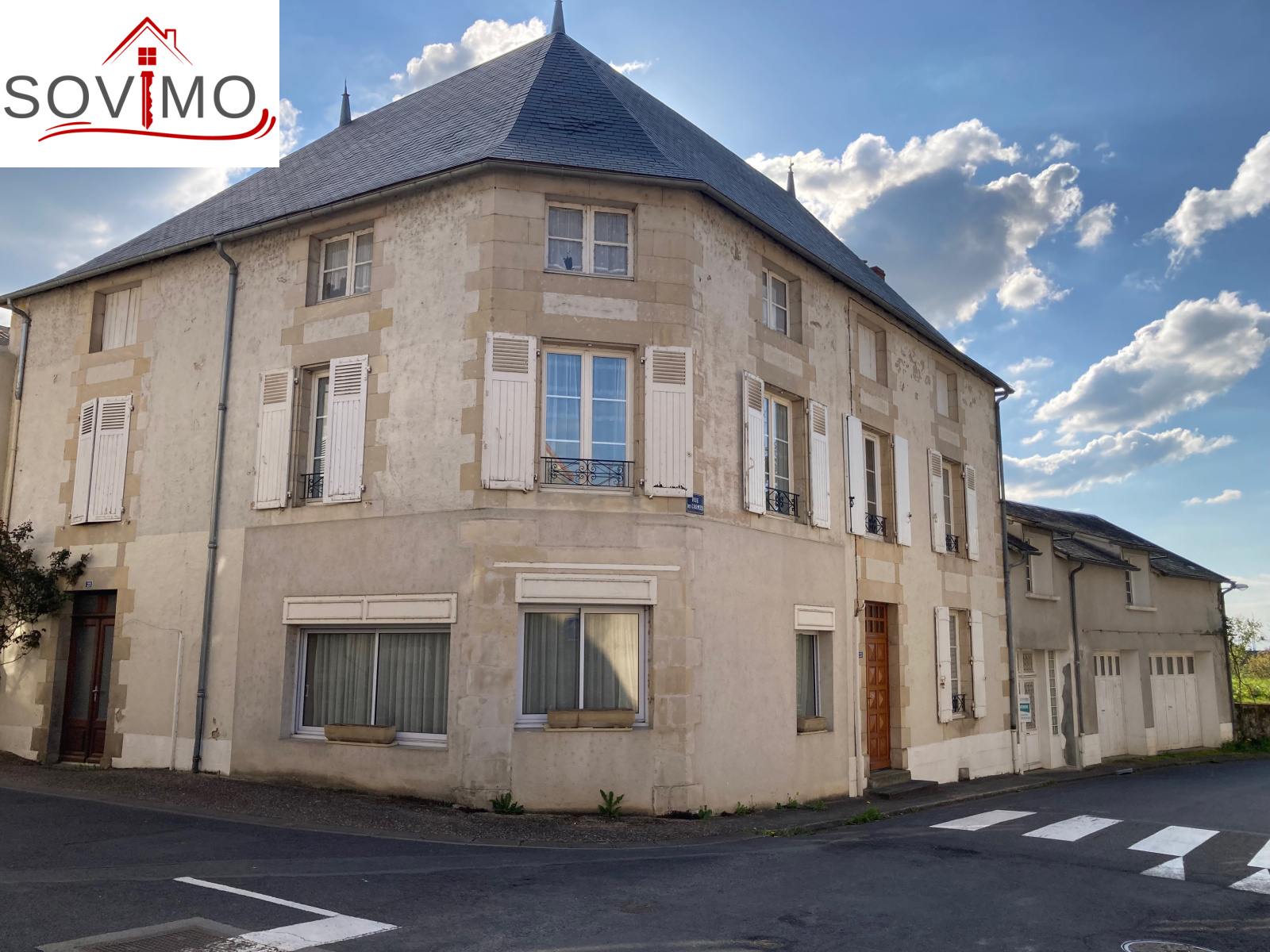 RÉF. 34480 : 124 200 euros H.A.I, (A Débattre), L'Isle Jourdain (86), ville avec tous commerces, au centre, belle propriété du XIXe avec potentiel, à usage d'habitation, idéale pour artisan grande surface de stockage, Maison habitable, 136 m2 env. utilisables composée au rez de chaussée : entrée, cuisine/séjour, salon, salle d'eau/wc, au 1er étage : palier, 4 chambres, salle de bain, wc, au 2nd étage : grenier aménageable, chauf. fuel, assainissement collectif, cave, chaufferie de 27 m2 et garage attenant de 52 m2 avec grenier de 85 m2, appentis. Maison attenante à moderniser, qui pourrait faire office de bureau ou ouverture d'un commerce, ou parfait pour faire un investissement locatif de type Airbnb ou longue durée : 67 m2 env. composée au rez de chaussée : cuisine, séjour, wc, au 1er étage : 2 chambres, au 2nd étage : grenier aménageable. Terrain attenant, le tout sur 1208 m2.