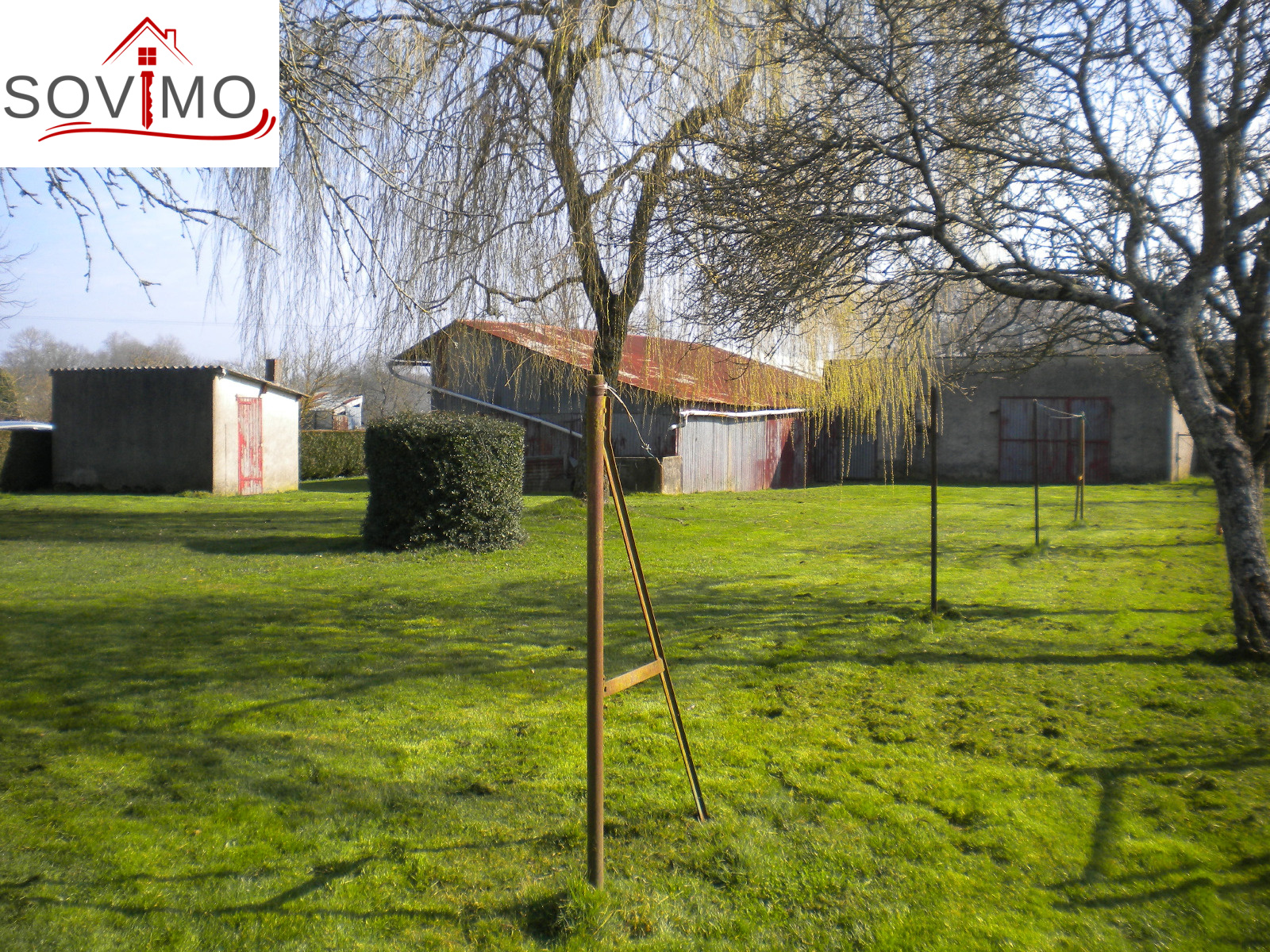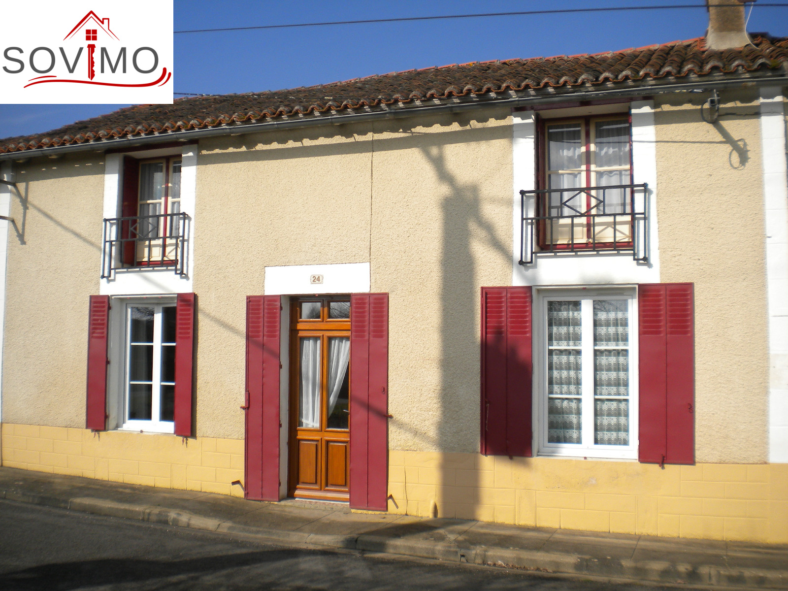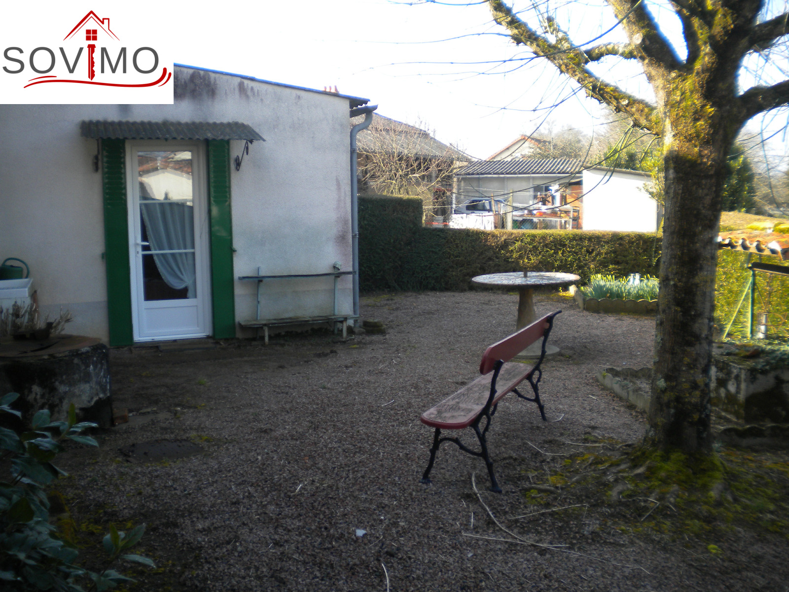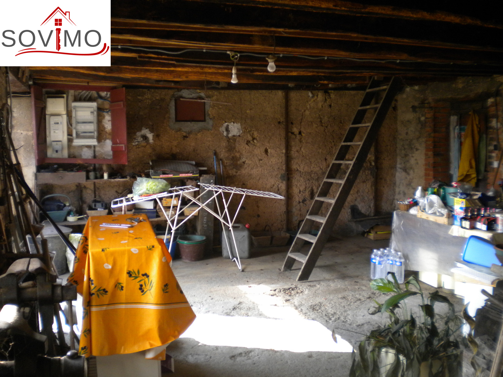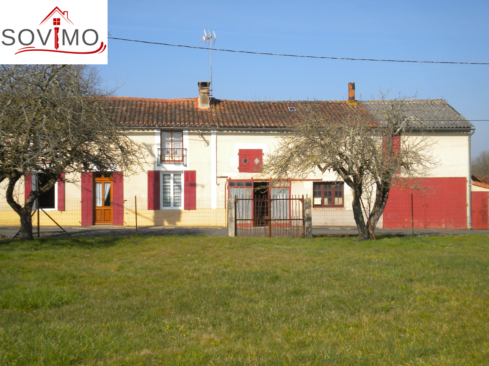 REF. 33502 : 65 700 euros Ag.Incl., Sud Vienne (86), Secteur Isle Jourdain, maison de bourg, mitoyenne sur un côté, 100 m2 env. habitables : cuisine aménagée, salon, séjour, 1 chambre, sd'eau, wc, étage : 3 chambres, wc, chauf. électrique, atelier 36 m2 avec grenier, garage 22 m2 avec grenier, cave, cour attenante, terrain en face constructible avec hangar 75 m2 et divers petits toits sur 1055 m2, tout à l'égout, le tout sur 1340 m2.