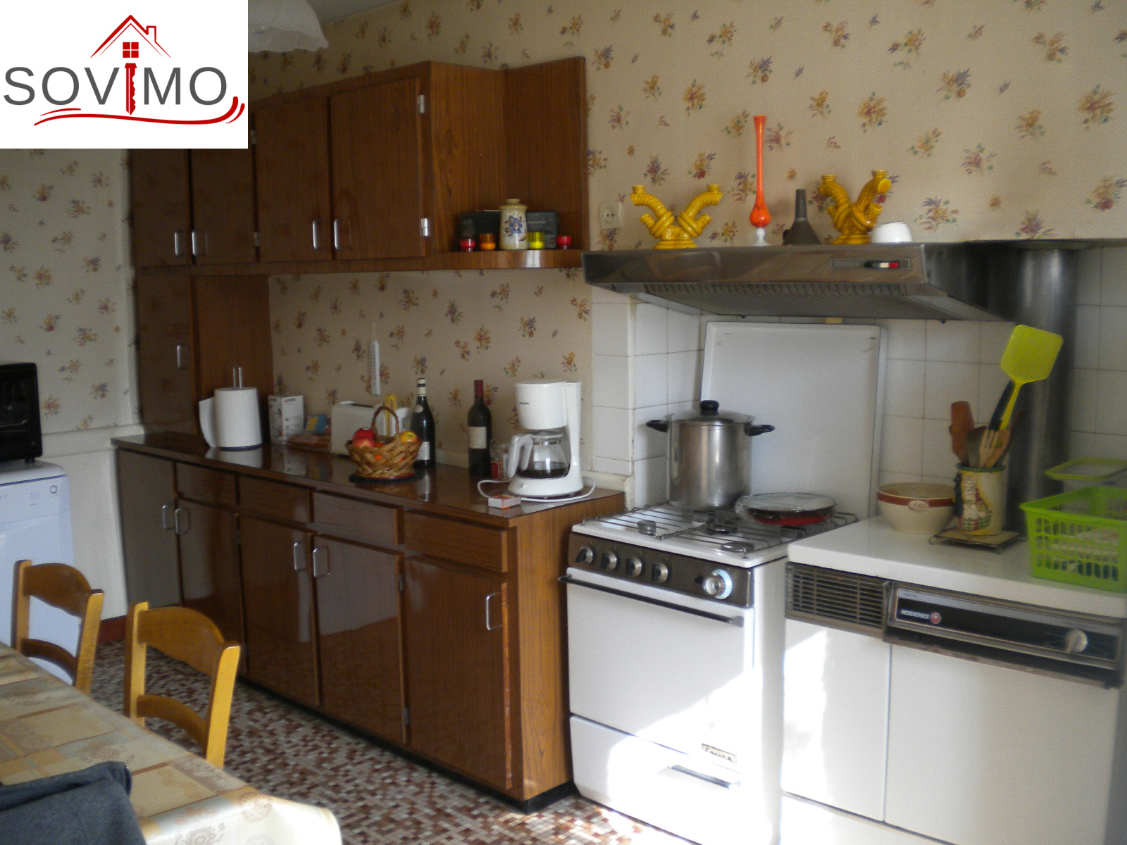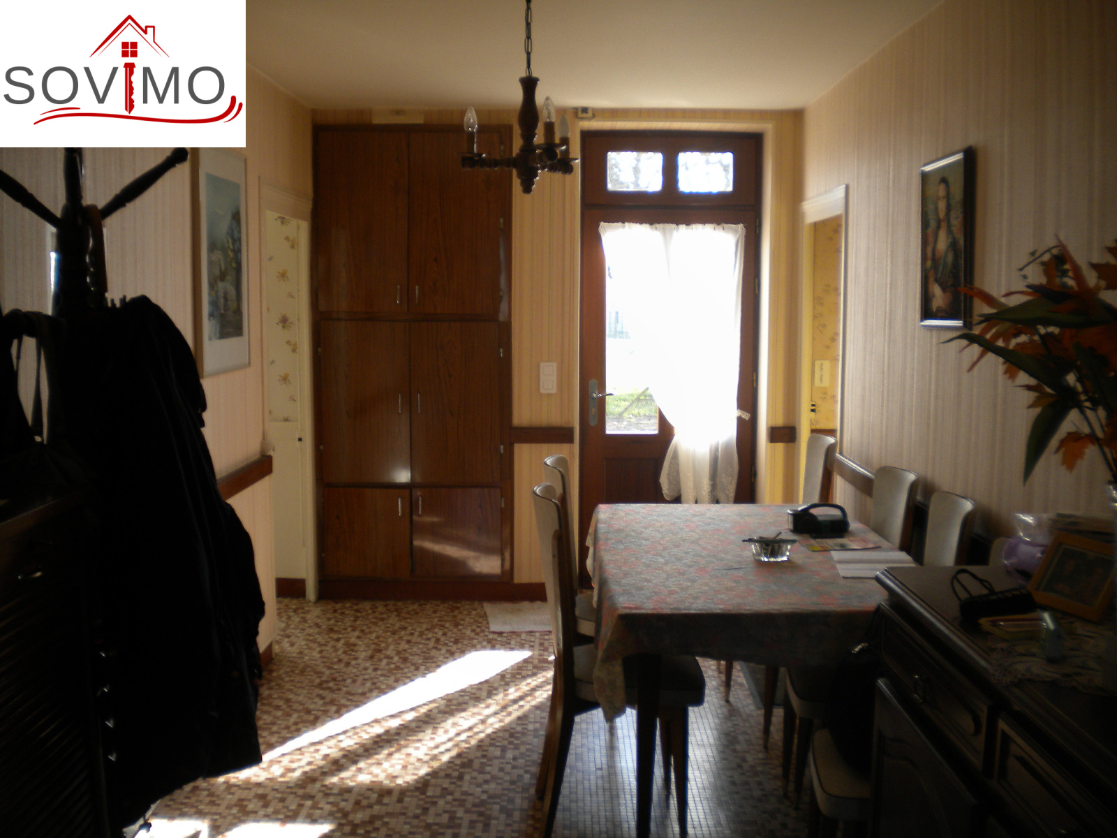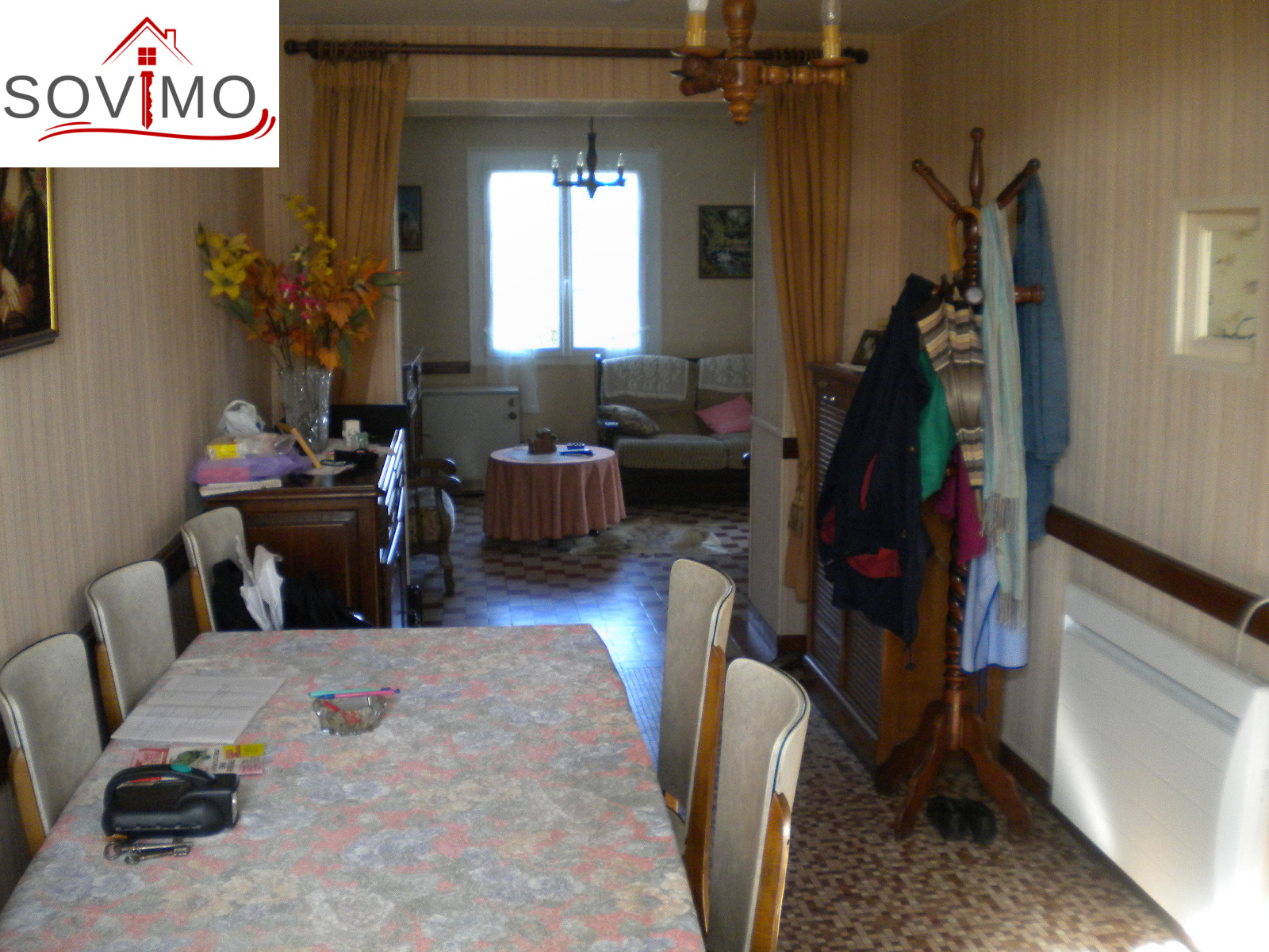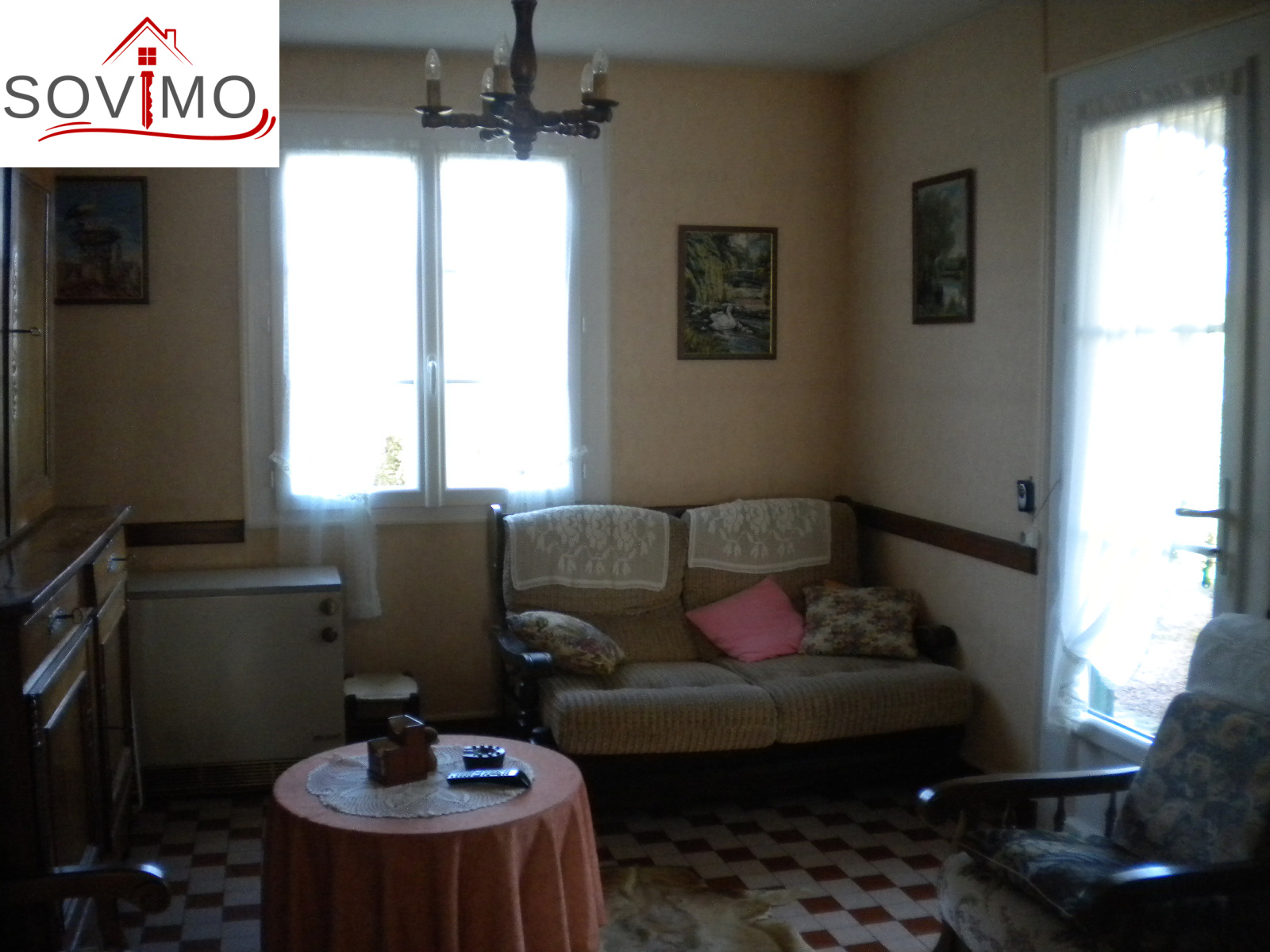 REF. 33502 : 65 700 euros Ag.Incl., Sud Vienne (86), Secteur Isle Jourdain, maison de bourg, mitoyenne sur un côté, 100 m2 env. habitables : cuisine aménagée, salon, séjour, 1 chambre, sd'eau, wc, étage : 3 chambres, wc, chauf. électrique, atelier 36 m2 avec grenier, garage 22 m2 avec grenier, cave, cour attenante, terrain en face constructible avec hangar 75 m2 et divers petits toits sur 1055 m2, tout à l'égout, le tout sur 1340 m2.